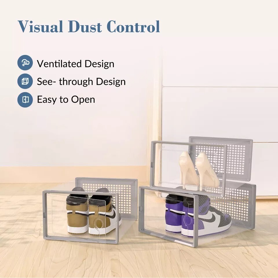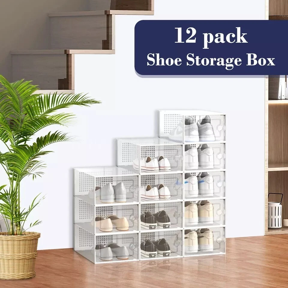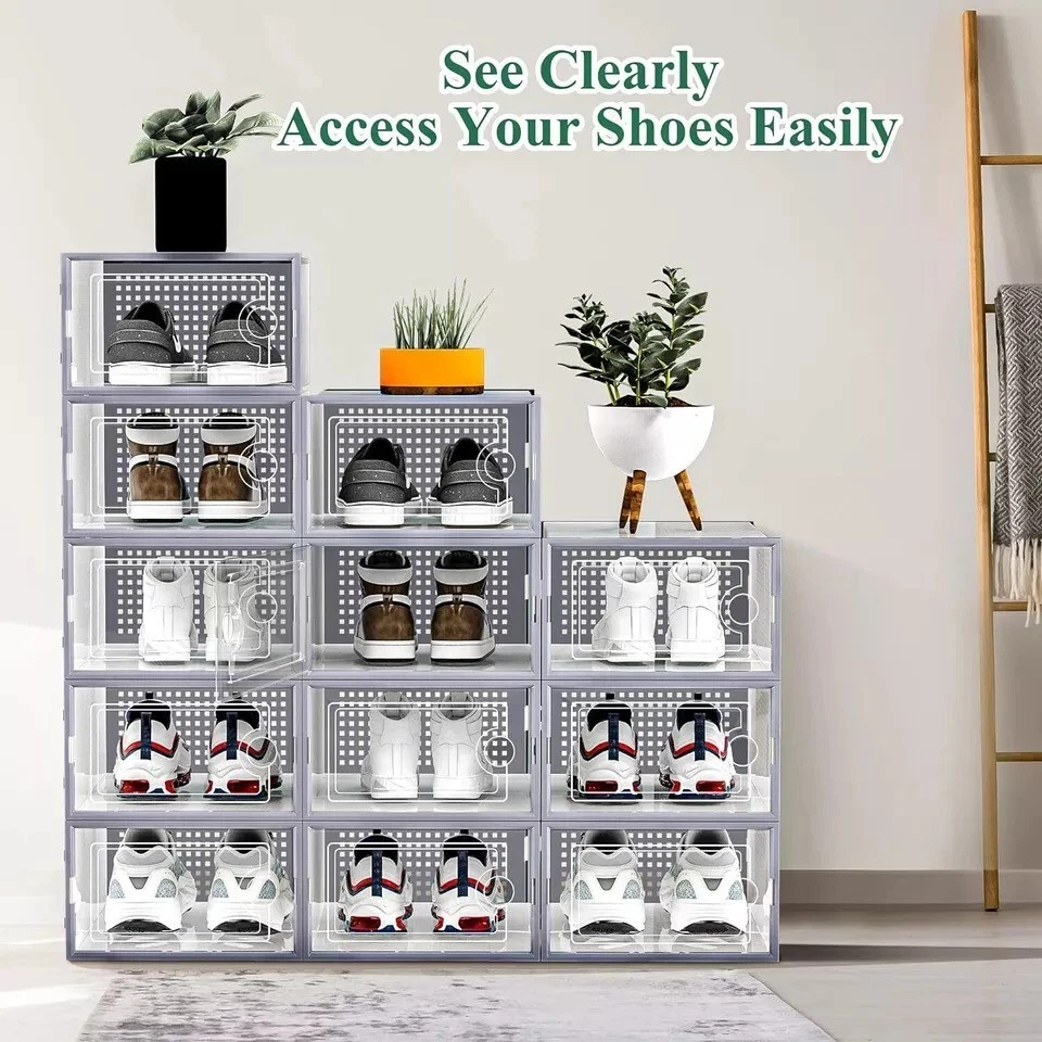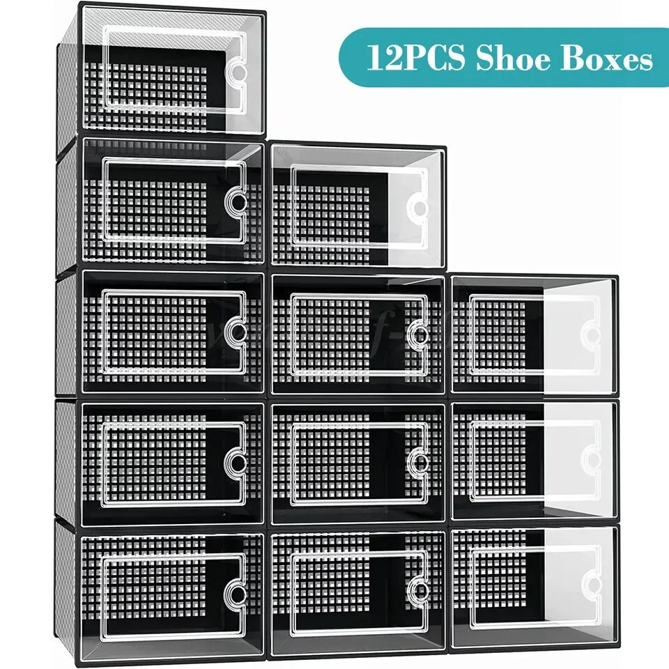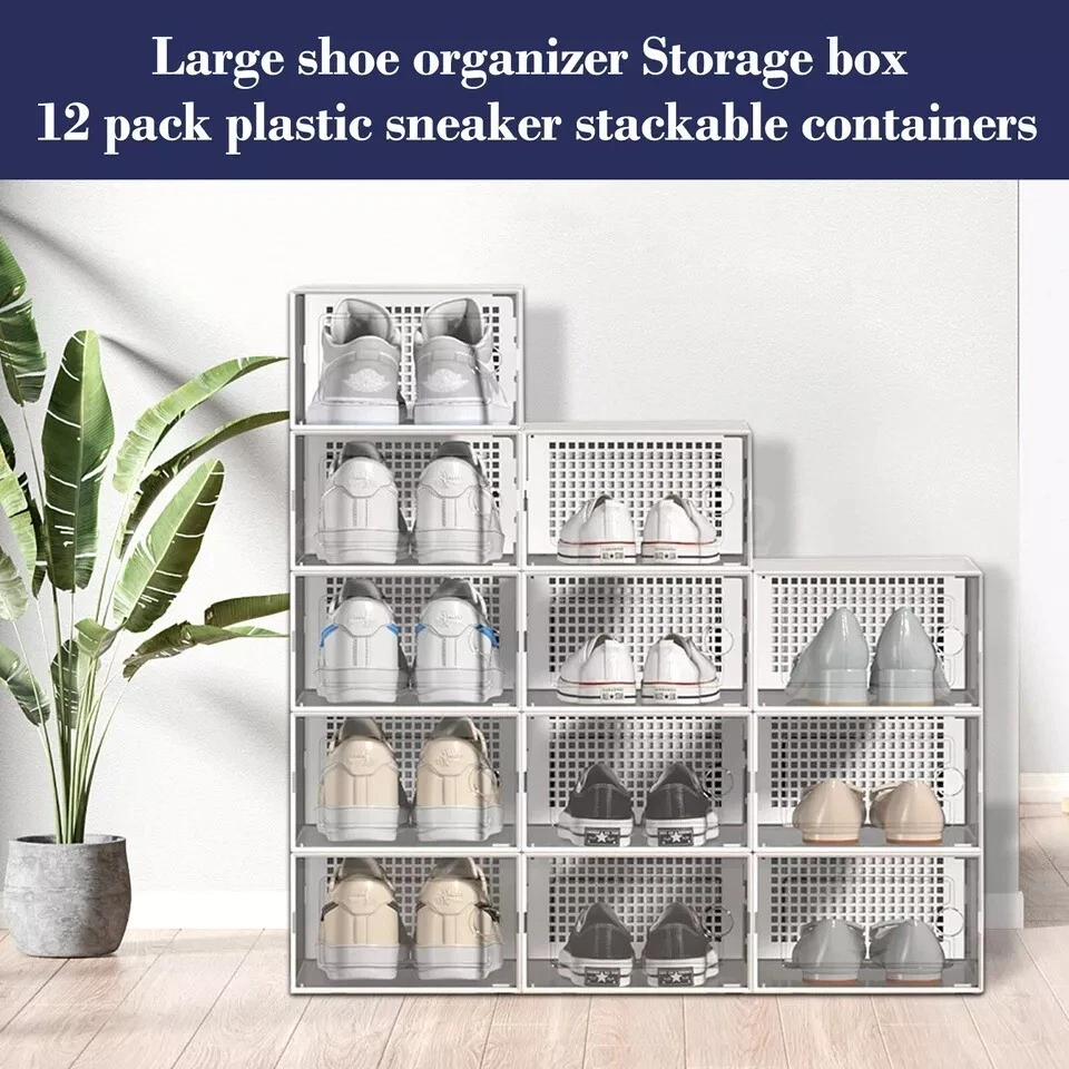 12/24 PCS Shoe Storage Box Clear Stackable Shoe Container Sneaker Organizer XL