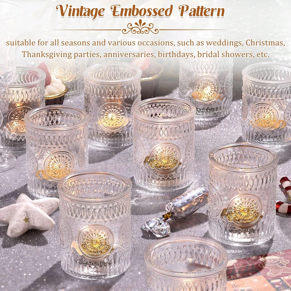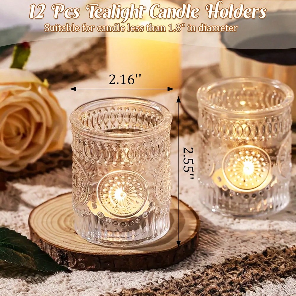 12/24PCS Clear Glass Votive Candle Holders, Tealight Candle Holder In Bulk, Vintage Candle Holder For Table Centerpiece, Wedding, Birthday Party, Bridal Shower, , Home Table Decoration