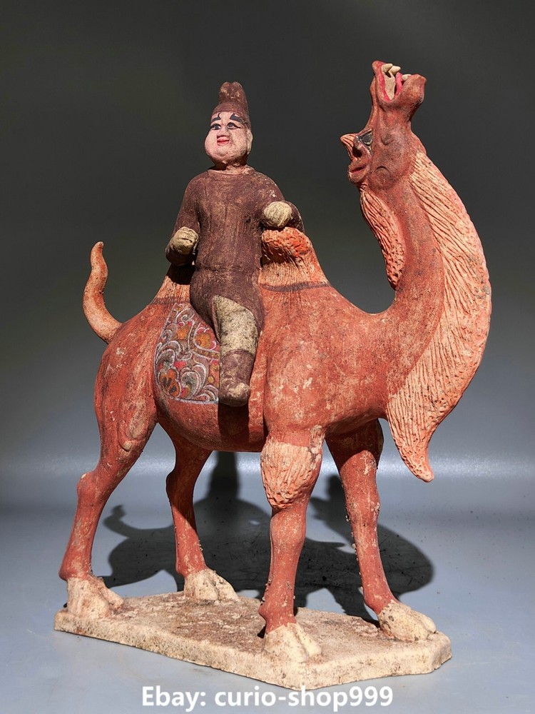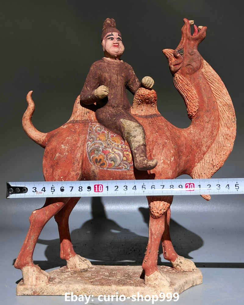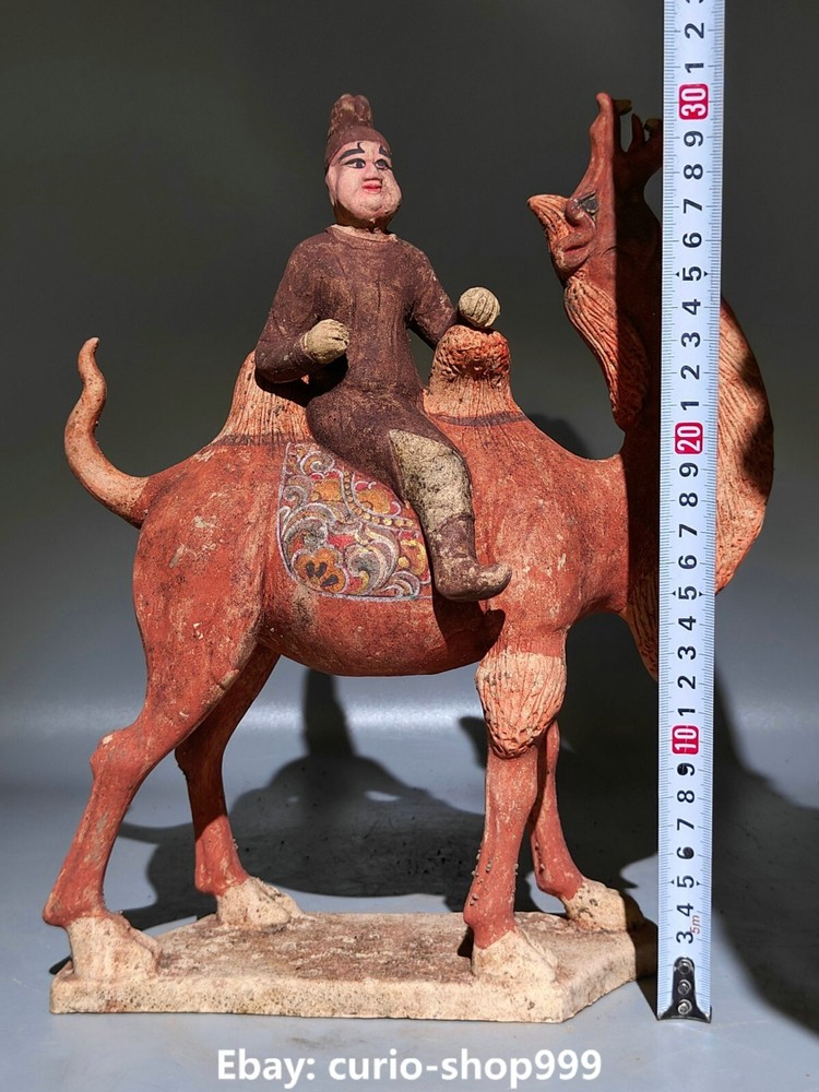 Primary Material: Tangsancai Porcelain Region of Origin: China Maker: Size: Height 12.2 Long 9.4 breadth (inch) Seller Notes: “12.2" Curio Old Dynasty Tangsancai Porcelain People Man Ride Camel Animal Statue”