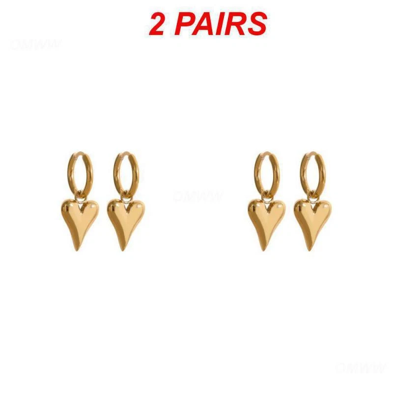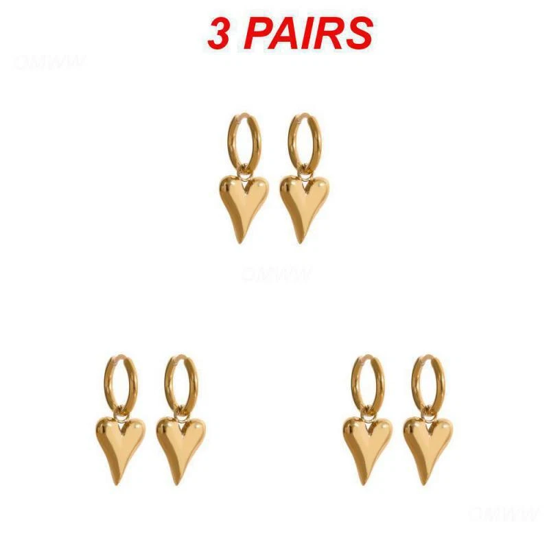 1/2/3PAIRS Titanium Steel Earrings Stylish 18k Gold Finish Exquisite Craftsmanship Fashion Multi-function Earrings Description: Product Name: Earrings Material: Titanium Steel Item No.: Heart Earrings Style: Snap-on Shape: Heart Shape Treatment Process: Electroplating Color: Gold Popular Elements: heart Shape Style: Fashion OL Style Classification: Fashion Commuting Applicable People; Womens Classification Of Popular Elements: Shape/pattern Specifications: 1. Introducing Our French Metal Heart Earrings, A Stylish Vintage Accessory That Will Add A Touch Of Sophistication To Any Outfit. 2. Made Of Durable Titanium Steel Material, These Earrings Are Not Only Fashionable But Also Durable. 3. The Easy-to-use Buckle Ensures A Safe And Comfortable Fit. 4. The Unique Peach Heart Shape Adds A Glamorous Charm To The Design, Making These Earrings Stand Out From The Crowd. 5. With Exquisite Workmanship And Versatile Design, They Are Perfect For Both Casual And Formal Occasions. 6. These Earrings Are Also A Great Gift Choice For Your Loved Ones. 7. Don’t Miss Out On These Stylish Yet Affordable Luxury Earrings That Have Quickly Become The Top Trending Fashion Accessory. 8. ORDER NOW And Elevate Your Style With These Sophisticated And Stylish French Metal Heart Earrings. Package Included: 1 Pair* Earrings