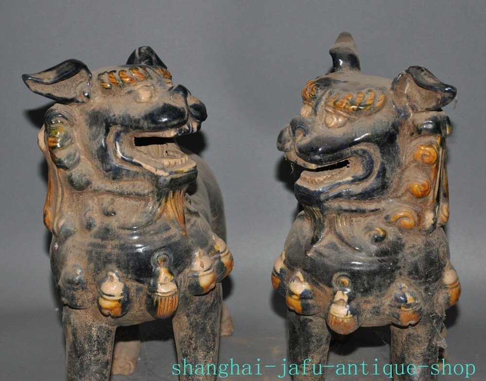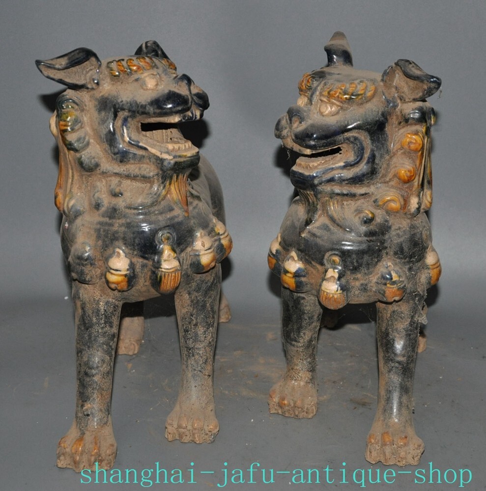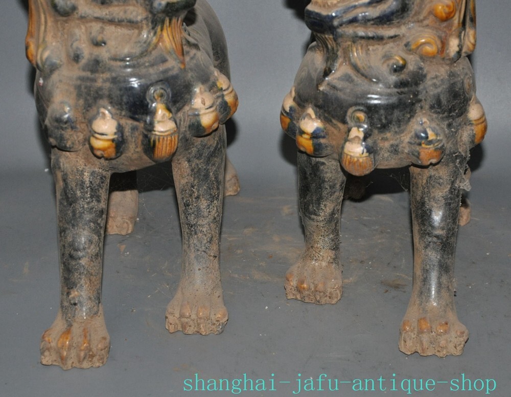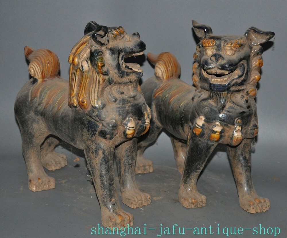 Here is an 12.4" Old dynasty tangsancai porcelain beast animal Lion foo dog statue A pair , As you can see the image, It is in good condition, and was created by skilled craftsmen in traditional style with fine handcrafts . This is a great piece of valuable collection, a valuable personal alter or a very good present. the handwork is very fine with incredible detailing. Don't miss out this chance to get it .Wish you good luck! Size: Height: 12.4 inch .Long: 11.2 inch . breadth: 5.6 inch Size: Height: 31 cm .Long: 28 cm . breadth:14 cm Weight: 5.8 KG----included the weight of packing materials Materials: Tangsancai porcelain Condition: Good condition Origin: China Shipping cost by EMS Express Mail ( 7------15 days ) : $Free 999