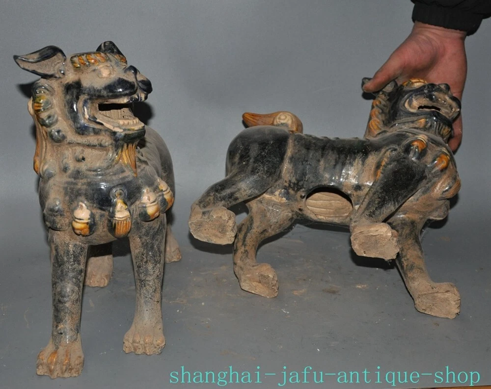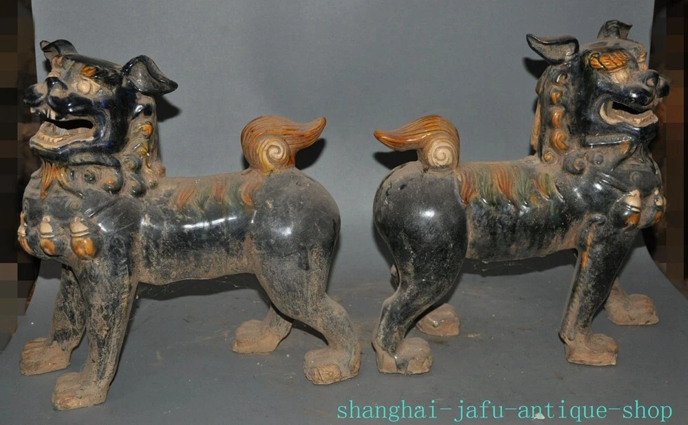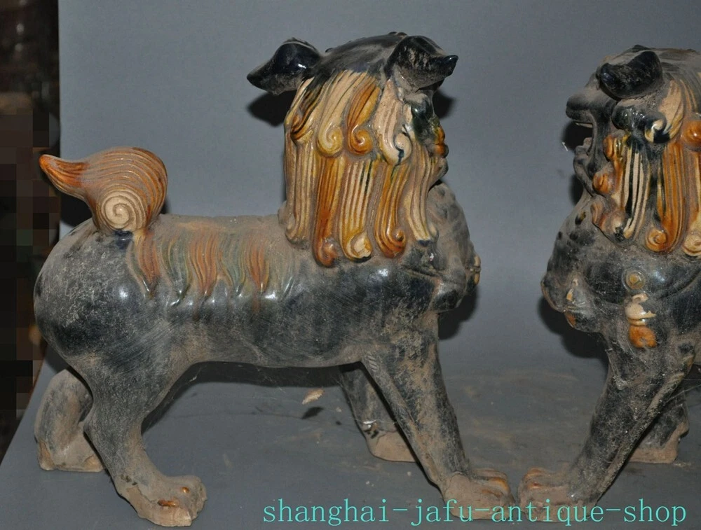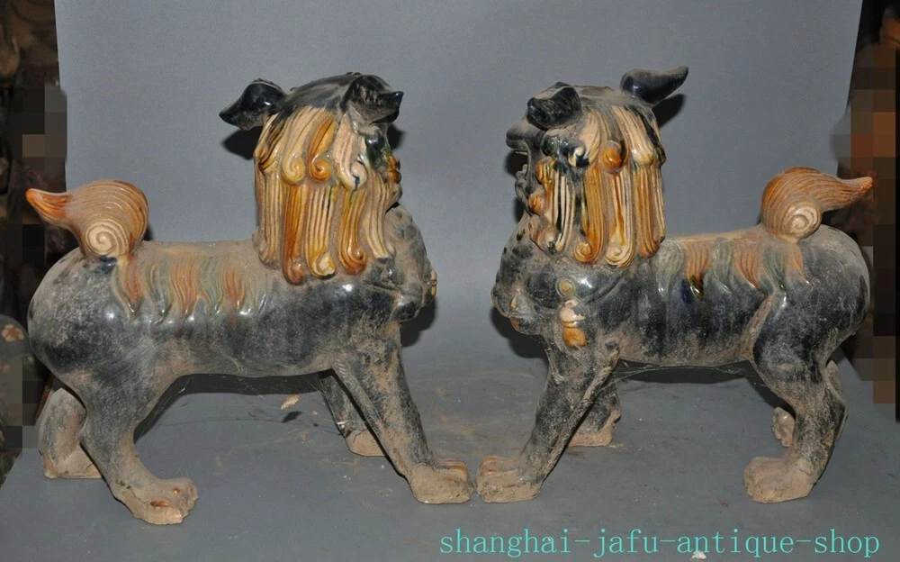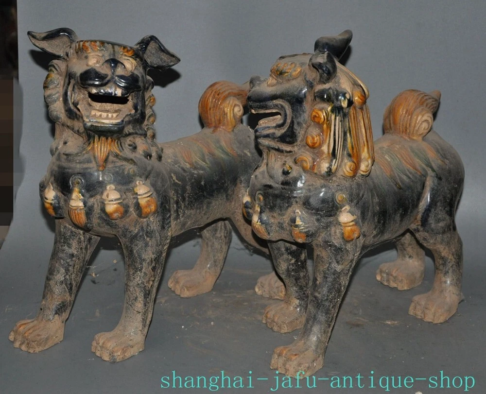 Here is an 12.4" Old dynasty tangsancai porcelain beast animal Lion foo dog statue A pair , As you can see the image, It is in good condition, and was created by skilled craftsmen in traditional style with fine handcrafts . This is a great piece of valuable collection, a valuable personal alter or a very good present. the handwork is very fine with incredible detailing. Don't miss out this chance to get it .Wish you good luck! Size: Height: 12.4 inch .Long: 11.2 inch . breadth: 5.6 inch Size: Height: 31 cm .Long: 28 cm . breadth:14 cm Weight: 5.8 KG----included the weight of packing materials Materials: Tangsancai porcelain Condition: Good condition Origin: China Shipping cost by EMS Express Mail ( 7------15 days ) : $Free 999