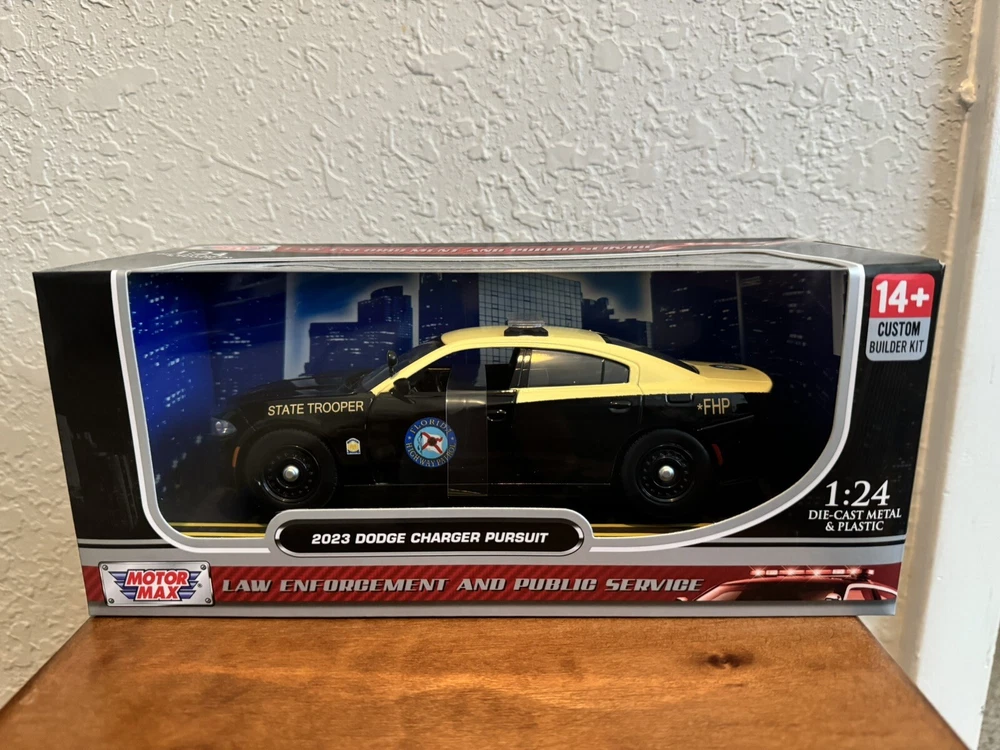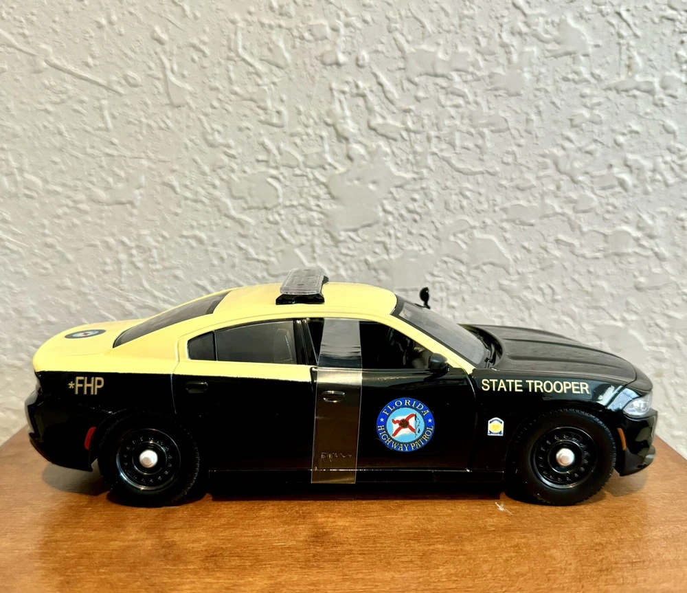 Update: 12/10/24 - Due to high volume of custom request and holidays, turnaround time may be longer than usual. Also to compensate the fees and price of material needed, price has gone back up to $129.99. Holiday sale offers maybe continue during December. IMPORTANT: these models are custom tailor made to per order request and custom build request of 3D parts and accessories added. Please note it could take up to 2 weeks time for turnaround and shipping depending on build request. Must send me a message after purchasing with details of how you want your build. Other year make and models may be available as well. I can do 2011 Dodge Charger, a challenger hellcat and the 2022 Ford Explorer as well. 1/24 - 1:24 scale Motormax brand 2023 Dodge Charger Pursuit custom Painted with FHP Florida Highway patrol decals. All decals are high quality made by PDS with high end laserjet printing, they are installed with two parts of micro solutions then clear coated by brush. This is a very detailed and accurate model input a lot of time and talent into. One of a kind unique handmade custom piece new in box. There are 3D resin printed accessories available for this model sold separately on eBay, the wraparound push bar FHP style and internal dash lights, I can purchase & install wraparound push bar upon request in agreement with a reasonable purchase offer. Priority shipping is an option upon request with appropriate shipping adjustments to your invoice if needed. Can make with or without light bar. Thanks