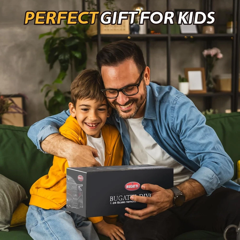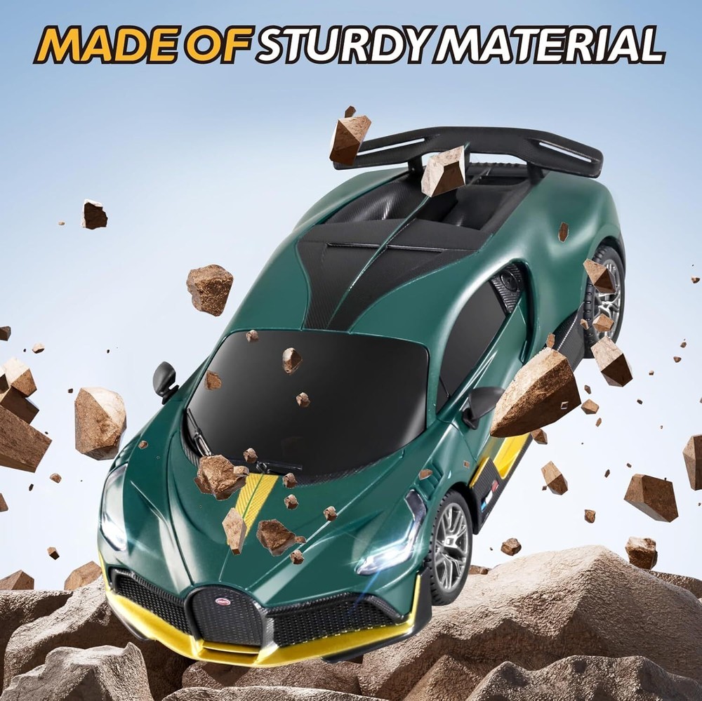 【 1/24 Authentic Licensed Design 】 This remote control car boasts a highly detailed replica of the iconic sports car. It's not just a car toy but a car model collectible item for car enthusiasts, featuring the exquisite design and unique color scheme that Bugatti Divo is known for. 【 Powerful and Sustainable Performance 】 Equipped with a robust 3.7V, 500mAh rechargeable battery, this remote control car for kids offers dynamic performance and extended playtime. The battery ensures that the fast rc car can race around for longer periods without the need for frequent recharging. 【 Intuitive Remote Control 】 The included remote control handle is designed for ease of use, allowing operators to maneuver the car with precision, simulating the experience of driving the actual Bugatti Divo. It's an engaging remote control car for adults that provides an authentic driving sensation. 【 Sturdy Construction 】 Made from high-quality ABS material, this RC race car is built to withstand the rigors of play. Its sturdy construction offers excellent resistance to collisions, making it suitable for both indoor and outdoor use across various terrains. 【 Ideal Gifts for Girls Boys 4-7 8-12 】 Perfect as a birthday or holiday gift, this Bugatti Divo RC car toy is suitable for a wide range of users, from kids to adults. It's an excellent choice for both young car enthusiasts and adult collectors, offering an enjoyable driving experience and a chance to own a miniature version of the esteemed Bugatti Divo.
