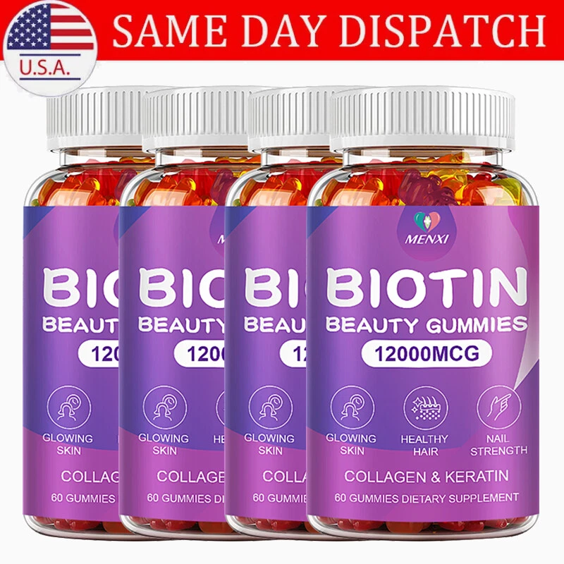 Store Categories Store Categories Other (1/2/4Pack) Collagen Gummies for Hair Skin and Nail, Premium Collagen Supplement Product Description Product Desc ription : 100% Natural and Brand New Brand: MENXI Item Type: Biotin Beauty Gummies Quantity: 60pcs per bottle Shelf life: 2 years Supplemen t Facts: Serving Size: 2 Gummies Servings Per Container: 30 Amount Per Serving % Daily Value Calories: 4 Total Carbohydrate: 3g Total Sugars: 1g Biotin: 12,000 mcg 600% Collagen: 20 mg 1000% Chlorophyl: 50 mg 2500% Vitamin A ( Retinyl Palmitate ): 1mg 50% Vitamin B-6 ( Pyridoxine Hydrochloride ): 5 mg 250% Vitamin B-12 ( Cyanocobalamin ): 10 mcg <1% Vitamin C ( Ascorbic Acid ): 50mg 25OO% Vitamin D ( Ergocalciferol): 50mcg 2.5% Vitamin E ( dl-Alpha Tocophery| Acetate ): 10mg 600o/6 Zinc: 5 mg 250% *Daily Value Not Established Others Ingredients: Organic Tapioca Syrup, Raw Cane Sugar, Water, Pectin,Oraanic Adipic Acid, Natural Fruit Juice. Featur es : Have a More Youthful Appearance and Feel Good with Alliwise collagen gummies for women and men with added Vitamin C, E, Zinc and Biotin. Our collagen supplements come in a convenient gummy form to help support anti aging, hair growth, skin, nails and bones. Collagen Is the M ost Abundant Protein in the Body Collagen Protein is the major component of connective tissues that make up several body parts, including tendons, ligaments, skin, and muscles. Collagen Supplements may help to improve skin elasticity and the overall vitality of your skin. Improve Bone & Joint Health Consuming collagen gummy vitamins daily may have a variety of health benefits, from relieving joint pain and strengthening your bones. Instructi ons It is recommended to use 2 gummies per day. What you c an get? 1 x / 2 x / 4 x 60pcs Biotin Beauty Gummies Payment Policy Shipping Policy Returns Policy Feedback & Customer Service Payment Policy 1. Payment is needed to receive within 5 days after deal.if not we will close the transaction. 2. We only accept PayPal. 3. PayPal is the only online payment method we accept. Please make sure you have a valid/confirmed PayPal account prior bidding. And please make sure that your PayPal registed address is the same with your eBay registed address. 4. Import duties, taxes and charges are not included in the item price or shipping and handling. These charges are the buyer’s responsibility. Shipping Policy 1.We ship to your eBay address only, please check your shipping address before the payment, it can not be changed once the order is completed. 2.We will arrange shipping for you within 24-48 Hours after payment cleared except the holidays. 3.Tax is buyer duty, it is not included in our buy it now price. Returns Policy 1. If you need return, please contact us with Email before open a case, let us know the detailed problem and send us some pictures for confirmation. 2. All returned items must be in the original packaging and provide us tracking number, specific reason for the returns. Feedback & Customer Service 1.If you are not satisfied, anyway, feel free to give us the second chance give it to correct it before deciding to leave neutral or negative feedback. 2.Please contact us before you contact eBay if you have any problems. We will reply you within 24 hours and do our best to solve your problems. Please check spam mails if no answer for 48 hours. Copyright © 2023 Dianxiaomi