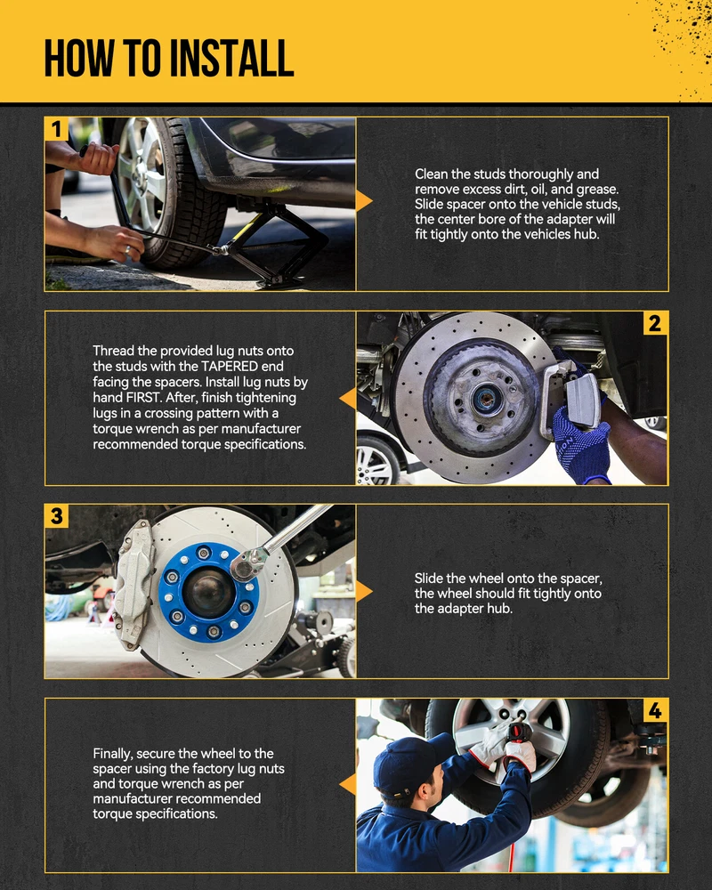 You may like 1.5‘' 5x4.5 to 5x4.5 Wheel Spacers 1/2 x20 82.5MM For Lincoln Town Car 91-11 2PC USD35.99 Pair 2" Wheel Spacers 6x135 14x2 M14x2 For Ford F-150 Expedition 2004-2014 USD52.99 Pair 1" 5x115mm Wheel Spacers M14x1.5 71.5mm For 2005-2022 Dodge Charger USD32.99 4pc 1.5"8x6.5 to 8x180 Wheel Spacers Adapters For 2002-06 Chevy Avalanche 2500 USD116.99 DURABLE & BRAND NEW US WAREHOUSE FAST & FREE SHIPPING LIFETIME WARRANTY Application: For buick LeSabre 1961-1985 For buick Riviera 1964-1978 For Cadillac DeVille 1959-1983 For Cadillac Eldorado 1967-1978 For Cadillac Fleetwood 1993-1996 For Cadillac Seville 1977-1979 For chevrolet Astro 1985-2002 For ford Thunderbird 1973-1976 For gmc Safari 1985-2002 For jeep Commander (XK) 2006-2010 For jeep Grand Cherokee (WJ) 1999-2004 For jeep Grand Cherokee (WK) 2005-2010 For jeep Wrangler (JK) 2007-2018 For lincoln Continental 1973-1979 For Mercury Marquis 1973-1978 Specifics and Benefits: Thickness: 1.25" (32mm) Vehicle Bolt Pattern: 5x5" (5x127mm) Wheel Bolt Pattern: 5x5.5" (5x139.7mm) Hub Bore Size: 78.3mm Thread Pitch: 1/2"x20 Package Includes: 4x Wheel Adapters How to choose the correct wheel spacers: STEP. Check 3 The following is the easy and simple way to check the bolt pattern/PCD, center/hub bore and thread pitch. If you donot sure, please just message us with the year, make and model of vehicle. 1). Check Vehicle Bolt Pattern/PCD For 4-lug, 6-lug, 8-lug, measure the segment from the CENTER of a bolt hole TO the CENTER of another hole. 5 lug is different, you need to measure the back of the hole to the center of the second bolt hole (not center point).(See Bolt Pattern Diagram below) 2). Check Vehicle Hub/Center Bore Size Measure the diam of the center bore on hub, make sure the spacer's diam is equal to or bigger than the axle diameter. 3). Check Vehicle Thread Pitch There are different types of studs, such as M12x1.25, M14x1.5, M12x1.5, 1/2"x20, 9/16"x18, please make sure the studs of wheel spacers is the same as the vehicle's, otherwise the spacer will not fit. How to install the wheel spacers: 1). IMPORTANT - ADAPTER OR SPACER MUST SIT FLUSH AGAINST VEHICLE HUB, AND WHEEL MUST SIT FLUSH AGAINST ADAPTER OR SPACER! Stock studs must be trimmed down (shortened) if they protrude past the surface of the adapter or spacer. If not, vibration or other problems can occur. Some wheels have pockets that may allow for no stud trimming. If not, studs MUST be trimmed. 2). Make sure the mounting surface (vehicle hub) is clean and For flat, and remove all retaining clips. 3). Install the adapter to the vehicle, with the proper lug nuts, and torque to manufacturer’s wheel torque specs. 4). Install the wheel to the adapter by torquing to the vehicle manufacturer’s wheel torque specifications (again, max 140 ft-lbs). Please assure the proper thread engagement (6 to 8 full turns) on lug nuts or bolts. 5). Drive the vehicle. If no problems (noise, vibration, anything out of the ordinary), drive about 5 miles, then re-torque the lug nuts attaching the spacer or adapter to the hub. Payment Shipping Return Policy Contact Us Important Points 1) we accepts all major credit cards via PayPal: MasterCard, Visa, American Express and Discover. 2) We will only ship to the confirmed PayPal shipping address given with the payment. Please make sure your PayPal and eBay address is correct. If not, please correct it before payment. Thank you. 3) If you want to ship to another address, please change your PayPal shipping address before you make payment. 4) To avoid initiating an unpaid item claim, please pay within 7 days. 5) Custom duties, taxes, or charges are not included in the cost you pay to us. We only ship this item to United States ! 1. We ship to your eBay address. Each package will be shipped by UPS or Fedex with tracking number. 2. Ship within 1 business day once payment completed. Orders placed on weekend will be shipped within 3 days. 4. Seriously promise: Refund or resend will be offered if item still not arrive in 7-10 business days. Just send us an email ,we will give you a satisfied solution as soon as possible. If you send us an e-mail, it will be answered within 48 hours during our working hours. Please feel free to contact us if you have any questions: Dear my friend,we appreciate your support.And our goal is service you well and give you a pleasant shopping time in our store. ✅Dear customer, when you want to return or exchange goods (Please contact us first, instead of directly initiating a dispute) 1: Contact the seller first 2: Send pictures: outer packaging&scanned labels&item itself&with complete accessories, etc necessary condition Rule A: The original packaging of the item is in an unused state. Rule B: The outer packaging must not have any damage. 3: Obtain return label 4: Delivered Projects - Payment Repayment ✅A 15% restocking and shelving fee will be charged for returns or exchanges that are not caused by the seller and are in good condition. Exchange will not charge restocking fees or shipping fees due to transportation errors ✅Priority In case of the following reasons, the freight will be borne by the buyer 1: Unexpected order 2: Find a better price 3: Change your mind 4: Buy more items/make mistakes/misread model information ✅Please note Missing accessories/quality issues/transportation damage, etc Please contact us first to obtain a good solution, rather than directly opening a return dispute. Thank you very much for your understanding. I hope we have a pleasant cooperation! Contact us if you have any question, Give us a chance to serve you, negative feedback could not solve anything, communication Please! ❎ (NO) Three stars is LOW star, NO 1,2,3 stars PLEASE! ✅(YES) Please give us Five-star! Have Question or Problem?? Step 1: Contact seller Step 2: Select the 1st topic: I have a question about using my item or I want to send the seller a message. NO others please! Step 3: Describe your question clearly; we will give y