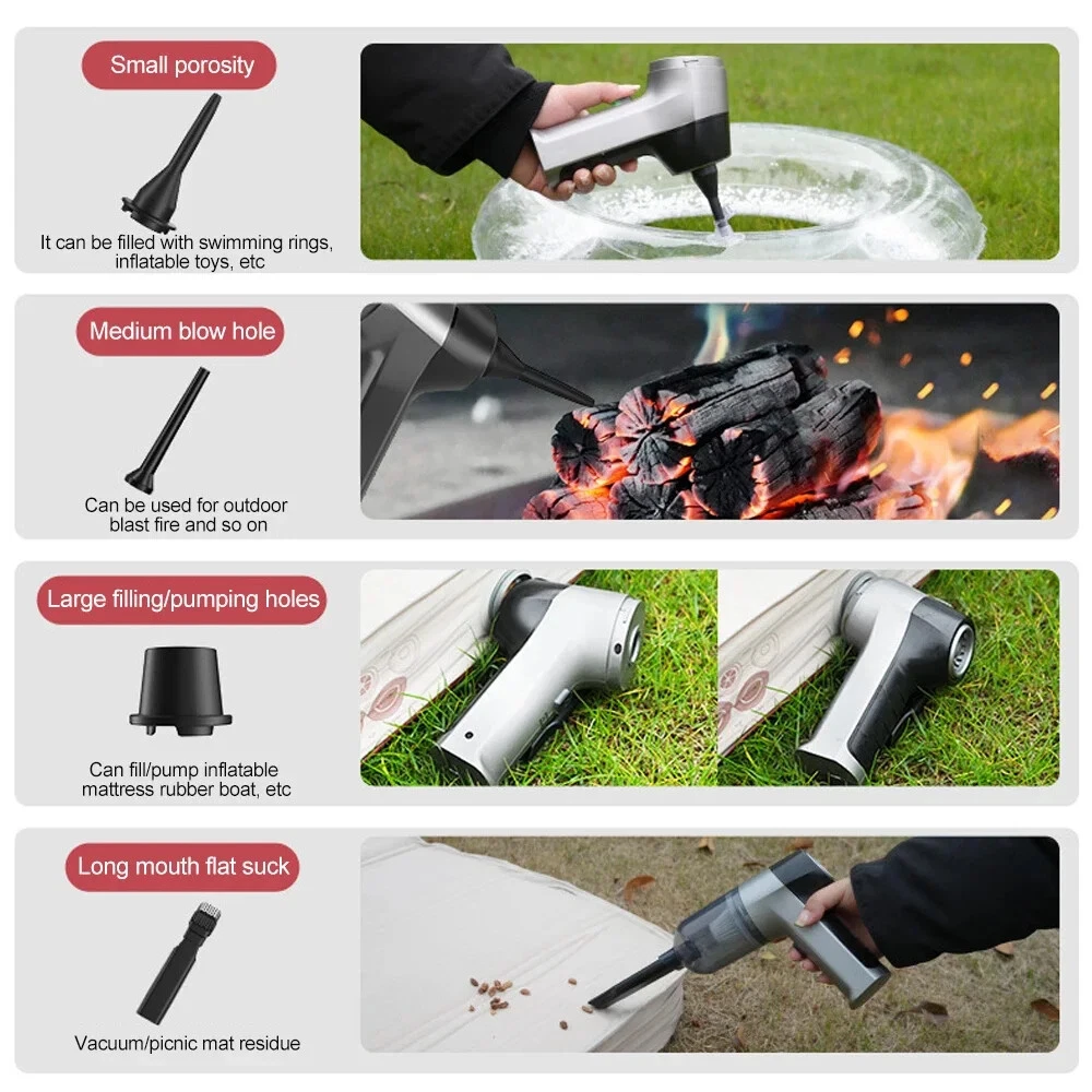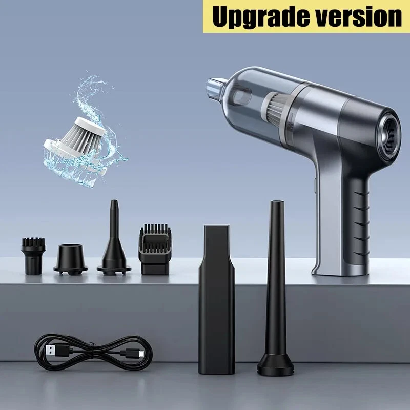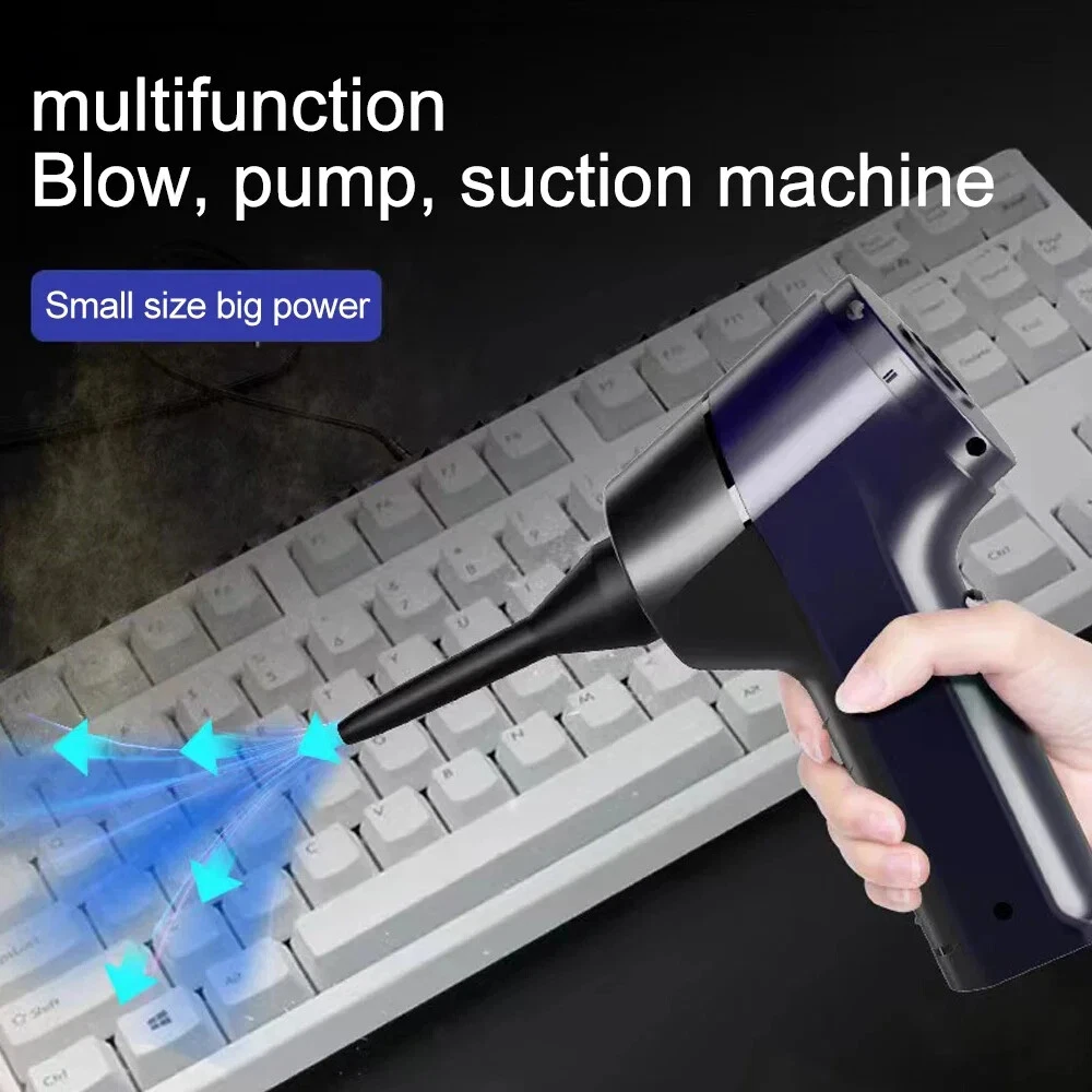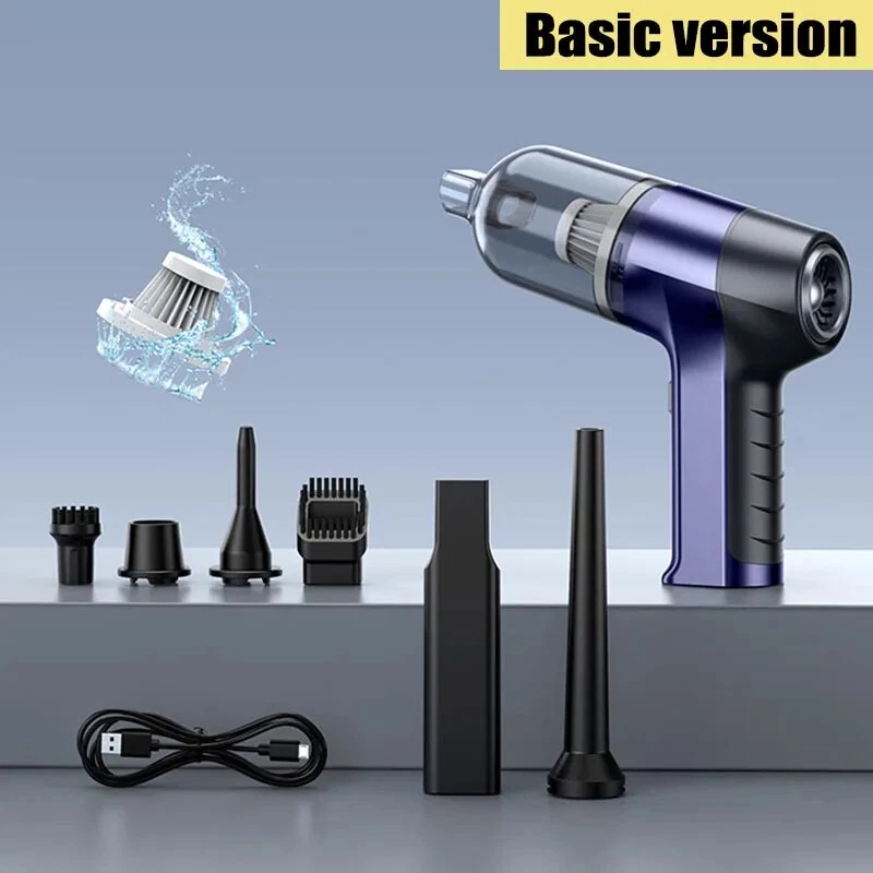 1250000PA Wireless Vacuum Cleaner 4 in1 Hand held Portable Cleaners for Home Appliance Powerful Clean Machine Car Introduction: [Product Name]: Handheld Vehicle Vacuum Cleaner [Product functions]:mainly cleaning cars, vacuuming, blowing dust, blowing balloons and so on [Color]: Sliver,blue [Product material]: ABS [Motor]: New upgrated Brushless motor [Vacuum degree]: 1250000PA [Rated speed]: 65500rpm [Capacity of lithium battery]: 2 * 2000mAh [Charging mode]: 5V USB boost charging line [Rated power]: 120W [Noise]: ≤ 52dB [Operating temperature]: - 20 ℃~+50 ℃ Package list: vacuum cleaner X1 Accessories X 6 Charging line X1 User manualX1 weight :580g Note: 1. This vacuum cleaner uses a smart chip with a child lock function, the switch will not open when tapped to prevent children from accidentally touching it. 2. Normal mode start method: long press the switch for 3 seconds and then start, at this time release the switch is normal mode, less noise, suitable for cleaning small area of dust. 3. Super mode start method: long press the switch for 3 seconds, then release the switch and press the switch again to enter the super mode. Clearly can feel the increase in suction, suitable for deep cleaning crevices of dust.(This mode only supports PRO version is vacuum cleaner)