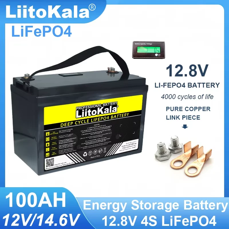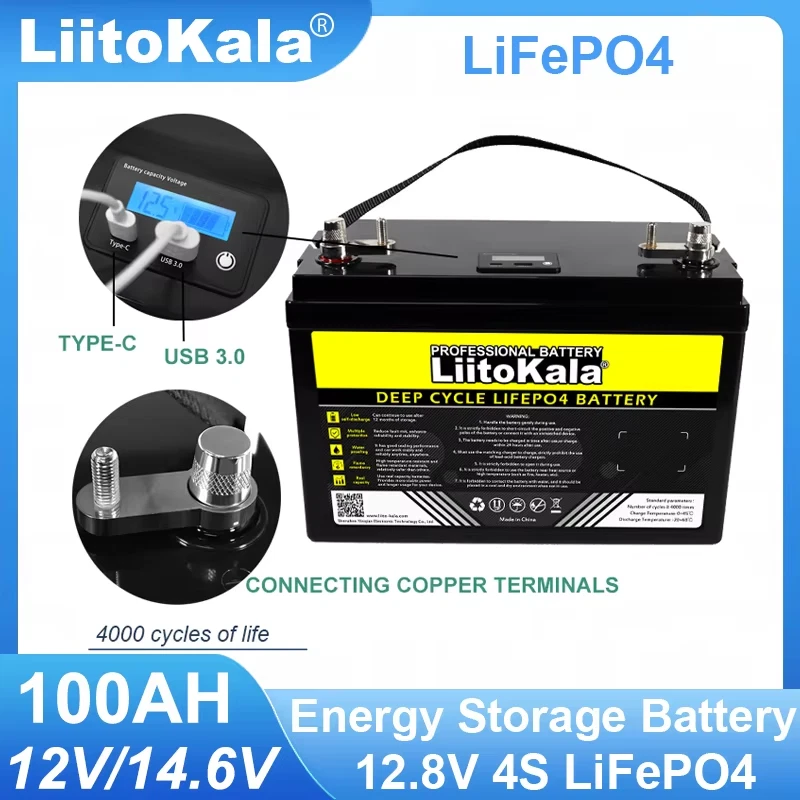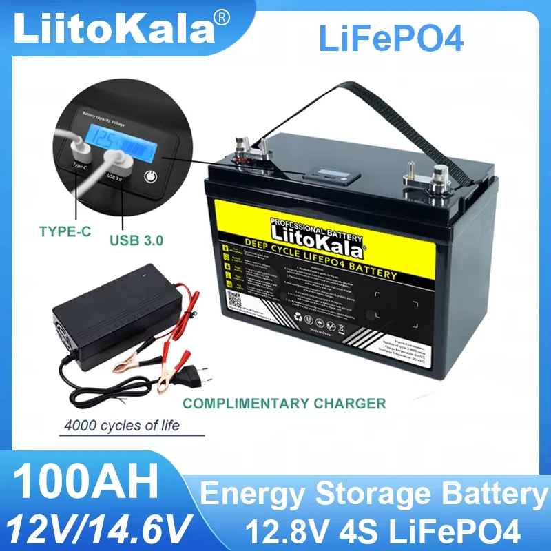 12V 100AH-LCD 12V 100AH-USB 3.0 12V 100AH-LCD-10A 12V 100AH-USB3.0-10A YOUR CHOICE, SAME PRICE Nominal Capacity 100Ah Weight 11kg Voltage 12V Size 330*175*216mm Application Laptop Model Number YQ-1-2 Type lifepo4 Brand Name liitokala Origin Mainland China Certification CE Description Report Item / Suspicious Activity Buyer precautions: EU Countries/UK/Japan/Canada/United States/Russian Federation/Thailand/Vietnam/Malaysia/ Philippines.Custom duties and custom clearance expenses are included.Other countries dos not include Customs duties & taxes. Brand: Liitokala Battery capacity: 100Ah Battery size: 330*175*216mm Weight: 11kg Battery type: Built-in: 3.2V LiFePO4 Battery Nominal voltage: 12.8V Built in BMS: 100Ah Maximum charging current: 50A Instantaneous discharge current: 200A Continuous discharge current: 100A Life: 4000 Cycles or more Charging temperature: 0~45°C Discharge temperature:-20~60°C Storage temperature:-20~65 °C Operating voltage range:8.0 V-14.6 V Overload protection voltage: 14.6 V 0.05 V Protection voltage against overlo:8.0 V 0.05 V Protect battery temperature:60°C plusmn 5°C Output and parameters: high current positive / negative connection column (red positive, black negative) Electric power application ●Start the battery motor ● Commercial buses and buses: Electric cars, electric buses, golf carts/electric bicycles, scooters, RVs, AGVs, Marines, coaches, caravans, wheelchairs, Electronic trucks, electronic sweepers, floor cleaners, electronic walkers, etc. ● Intelligent robot ● Power tools: electric drills, toys Energy storage ● Solar wind power system ● City grid (on/off) Backup system and UPS ● Telecom base, cable TV system, computer server center, medical equipment, military equipment other apps ● Safety and electronics, mobile point of sale, mining lighting / flashlight / LED lights / emergency lights Product advantages: Easy to carry, high capacity, high release platform, long working hours, long life, safety and environmental protection