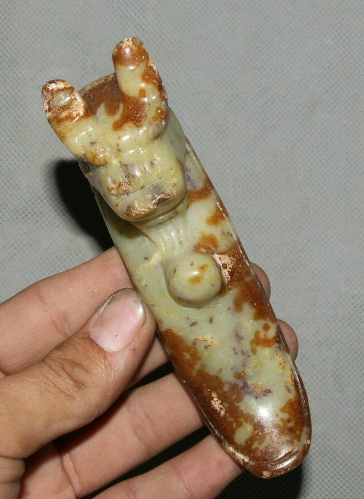 $ 31.164CM Hongshan Culture Jade Fengshui Beast Yu Cong Zong Amulet