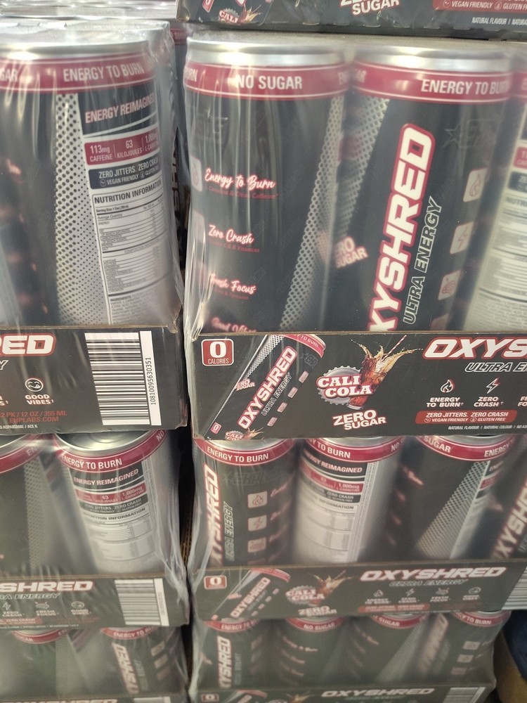 BB: 10/2025 The 12CT OxyShred Ultra Energy Drink in "Cali Cola" flavor is a zero-sugar green tea drink that promises an energy boost. The black color and energy drink theme make it a vibrant and invigorating choice for those looking for a quick pick-me-up. With the addition of L-Camitine, this drink is designed to enhance energy levels and focus. Perfect for those on the go or looking to add a burst of energy to their day.