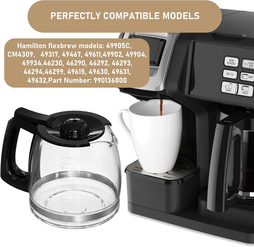 12-Cup Replacement Coffee Carafe Compatible with Hamilton Beach Coffee Maker Pot 49902, 49915, 49905C, CM4309, 49317, 49467, 49611, 49904, 49934, 46230, 46290, 46293, 46294, 46299 โCompatible models: The 12-cup Glass Coffee Carafe Pot is compatible with Hamilton Beach Flexbrew models: 49902, 49915, 49905C, CM4309, 49317, 49467, 49611, 49904, 49934, 46230, 46290, 46293, 46294, 46299, Part Number: 990136800. ๐๐ฅ๐๐๐ฌ๐ ๐ง๐จ๐ญ๐: ๐๐จ ๐๐จ๐ญ ๐๐ข๐ญ ๐๐ฅ๐๐ฑ๐๐ซ๐๐ฐ ๐ฆ๐จ๐๐๐ฅ๐ฌ# ๐๐๐๐๐๐ ๐๐๐๐๐๐ ๐๐๐๐๐ ๐๐๐๐๐ ๐๐๐๐๐ ๐๐๐๐๐ ๐๐๐๐๐ ๐๐๐๐๐ ๐๐๐๐๐ ๐๐๐๐๐ ๐๐๐๐๐ ๐๐๐๐๐ ๐๐๐๐๐ ๐๐๐ซ๐ญ# ๐๐๐๐๐๐๐๐๐. ๐๐ฅ๐๐๐ฌ๐ ๐๐ก๐๐๐ค ๐ฒ๐จ๐ฎ๐ซ ๐๐จ๐๐๐๐๐ฆ๐๐ค๐๐ซ ๐ฆ๐จ๐๐๐ฅ!! โPremium Material: The 49902 coffee maker glass is made of heat and cold-resistant high borosilicate hydrochloric acid glass, BPA-Free, which is free of phthalate plastics and other harmful substances. This coffee carafe pot also offers exceptional heat resistance and durability. Stronger and more durable than ordinary glass kettles. โEasy to Clean: With a wide mouth and detachable lid is easy to clean, your hand can reach the bottom, it is convenient to wash the carafe inside. It can be cleaned directly in the dishwasher, but it tends to leave marks on the glass that affects the taste of the brewed coffee. We recommend that you hand wash it to keep it lasting. โFunctional Design: The smart design of the handle allows for comfortable gripping and pouring, with smooth lines and a comfortable grip that feels good in your hand, ensures easy pouring without any spills or drips. Share the love for coffee with your loved ones. It retains the optimal coffee temperature, preserves the rich flavors and aromas.