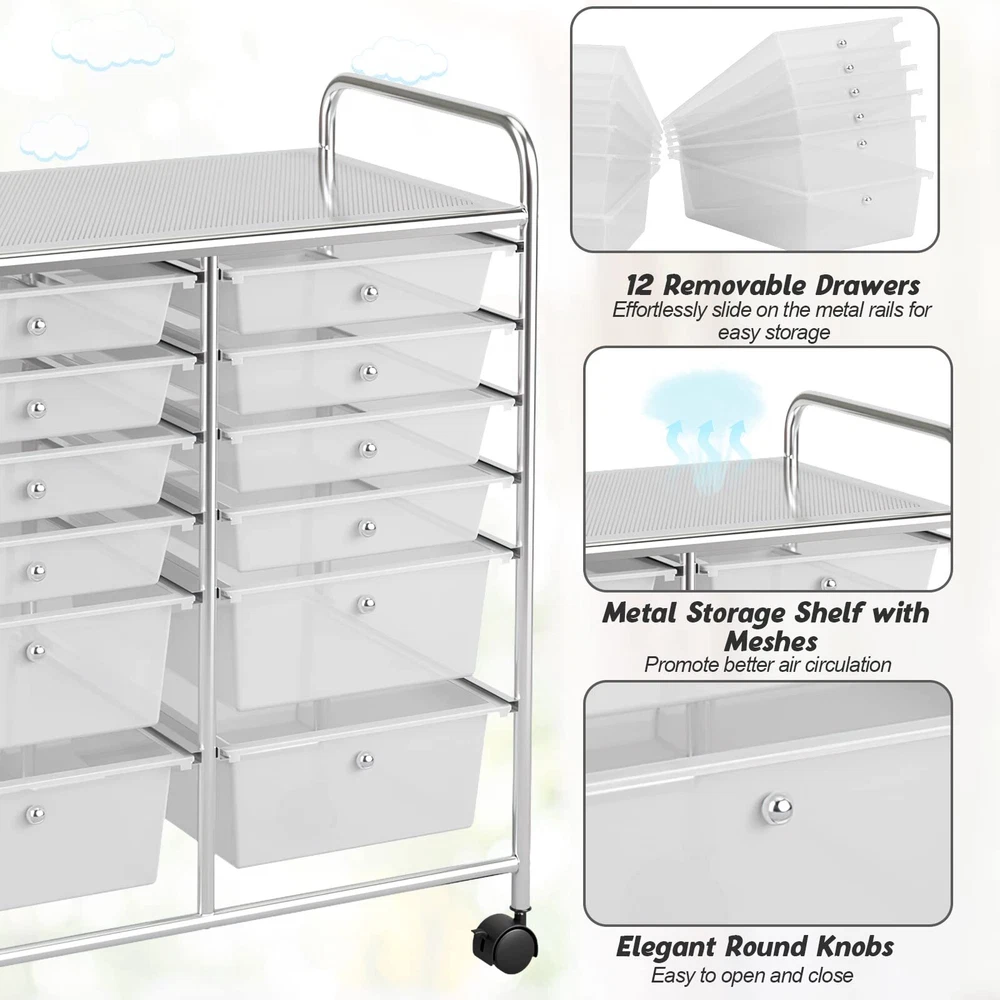 12-Drawer Rolling Storage Cart with Large Capacity and Wheels