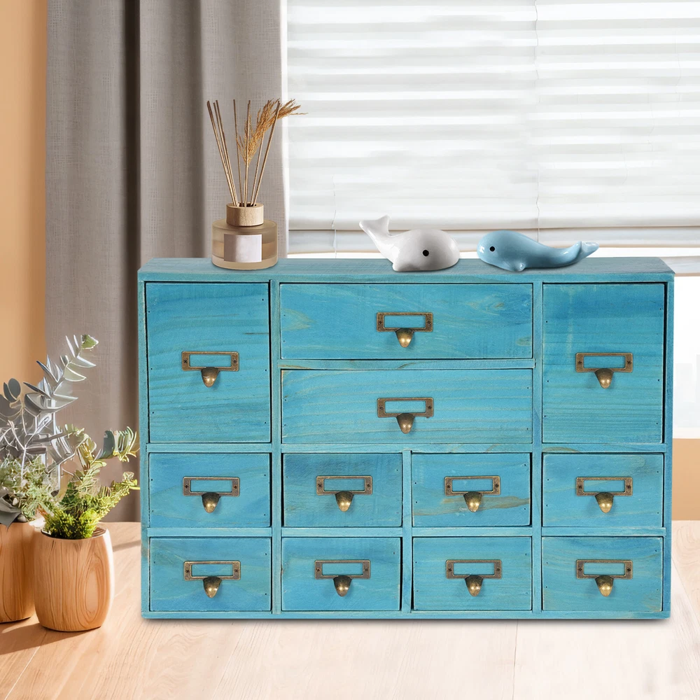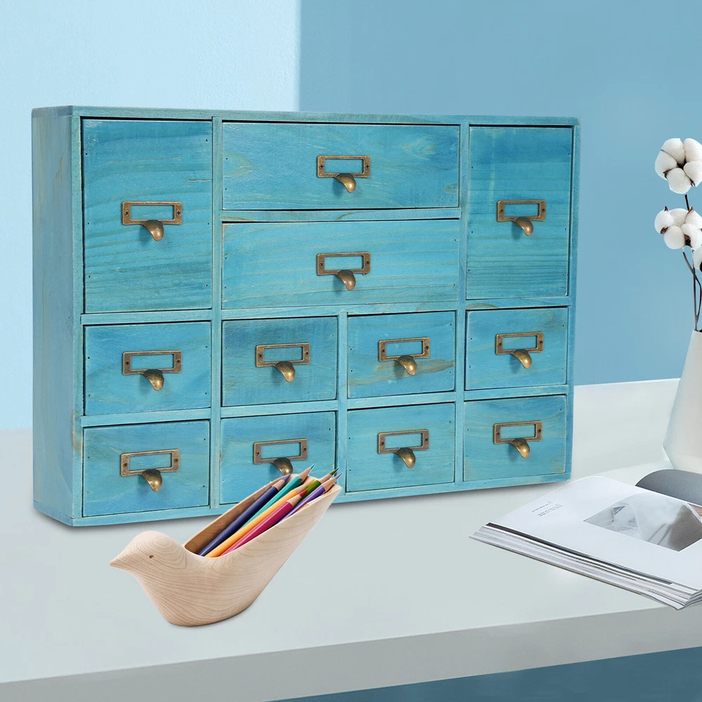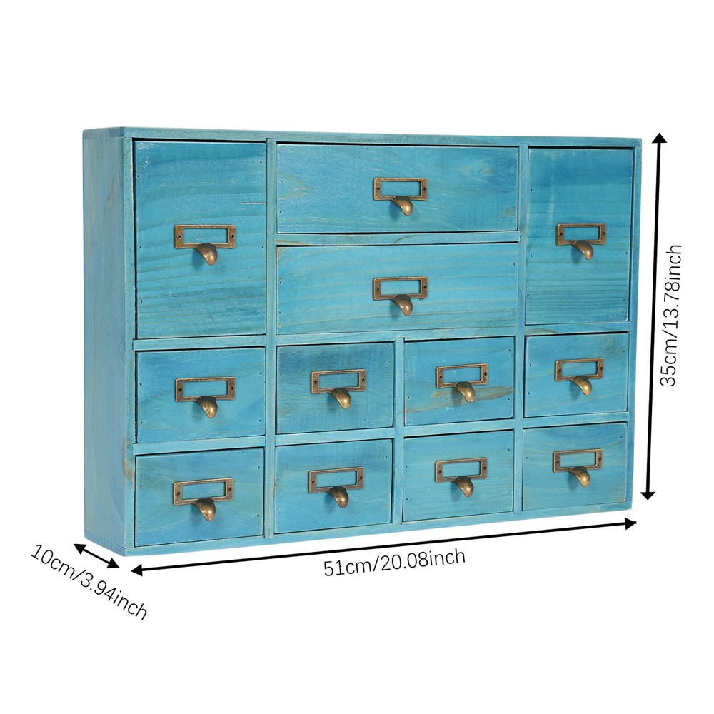 Product Size: 51*10*35cm/20.08*3.94*13.78in Number of Drawers: 12 Net Weight: 4.5kg/9.92lbs Tips: If you have any questions, please contact us! Shape: Rectangular Color: Blue Feature^: ❤Beautiful Appearance❤ Process: Spray Painting, Aging Mount Type: Tabletop Item Height: As Shown Item Width: As Shown Country/Region of Manufacture: Unknown Type: Storage Drawers Gross Weight: 5kg/11.02lbs Brand: Unbranded Note: Do not send to Brazil Feature!: Stable performance, durable gtin13: Does not apply Indoor/Outdoor Usage: Indoor Material: Plywood, Pine Wood, Zinc Alloy Load Capacity: 10kg/22.05lbs UPC: Does not apply Assembly Required: No Package Size: 54*38*14cm/21.26*14.96*5.51in Item Length: As Shown Feature 4: FAST SHIPPING FROM US LOCAL WAREHOUSE!