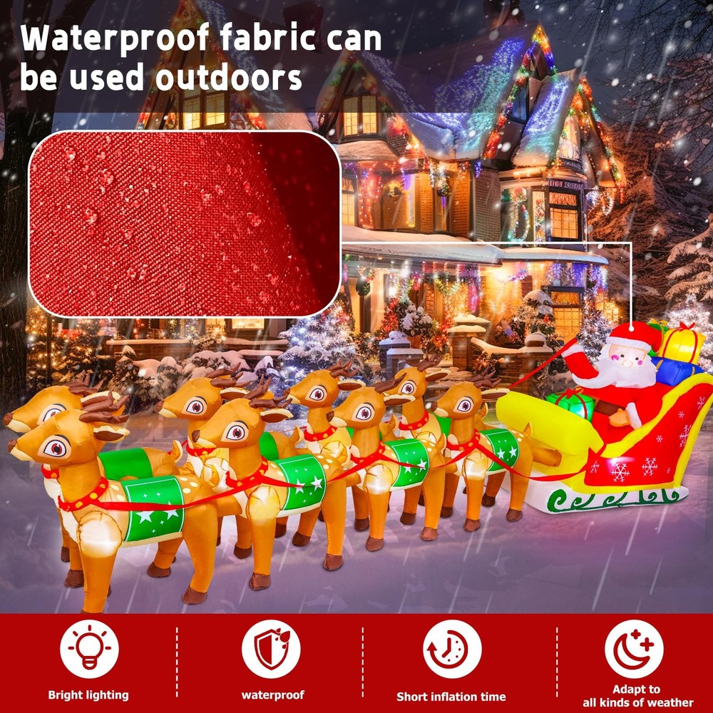 12FT Christmas Inflatables Santa Claus and Reindeer NEW LED Outdoor Decoration Long Christmas Inflatable: Standing at 12 feet length, this inflatable commands attention and transforms your outdoor area into a festive wonderland. Adorable Christmas Designs: Featuring a variety of festive themes, this 12 FT Christmas inflatable showcases Santa on a sleigh led by 8 reindeer, bringing the magic of the season to your home. Your kids and friends will fall in love with this enchanting Christmas decoration at first sight! Built-in LED Lights: This inflatable outdoor decoration features eye-catching, super-bright lights that create a sparkling effect, illuminating your yard or lawn even on the darkest nights. As night falls, Santa and his reindeer will light up your outdoor space, bringing joy and delightful surprises to all! Waterproof Material: The giant inflatable train is made of high-quality polyester Fabrics, waterproof, not easy to be pierced by sharp and hard things, the excellent stitching improves its durability. What's more, the vivid color won't discolor adopting spraying technology. Indoor and Outdoor Decoratiaons: The Christmas inflatables decorations are suitable for home, party, stage prop, classroom decorations, art decorations, Christmas event decorations, Christmas night event, New Year and more. A great addition to Christmas indoor-outdoor courtyard garden décor. Elevate your Christmas celebrations with our impressive 12 FT Christmas Inflatable, featuring Santa Claus, reindeer. This eye-catching decoration is designed to bring the joy of the holiday season to your outdoor space. With built-in LED lights, it creates a captivating and magical ambiance during both day and night. Shipping We offer FREE shipping on all orders! We ship within Three business days of payment, usually sooner. We use a selection of shipping services such as UPS, FedEx, USPS etc. We only ship to the lower 48 states, no APO/FPO addresses or PO Boxes allowed. Local pickups and combined shipping options are not provided at this time. Return You can return a product for up to 30 days from the date you purchased it. Any product you return must be in the same condition you received it and in the original packaging. Please keep the receipt. Payment We accept payment by any of the following methods: PayPal Please pay as soon as possible after winning an auction, as that will allow us to post your item to you sooner! Feedback Customer satisfaction is very important to us. If you have any problem with your order, please contact us and we will do our best to make you satisfied. Contact Us If you have any queries, please contact us via ebay. We usually respond within 24 hours on weekdays. Please visit our eBay store to check out other items for sale! Thank you for shopping at our store.