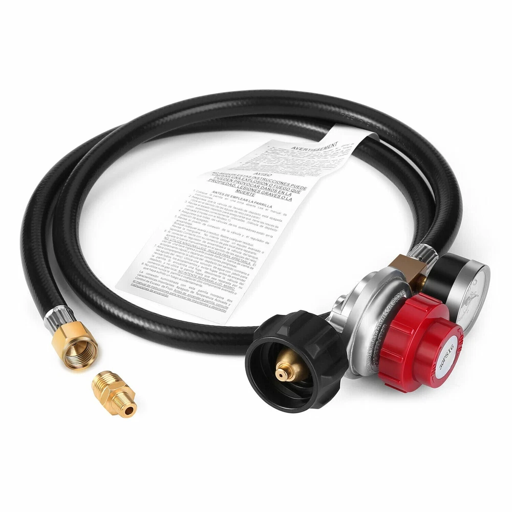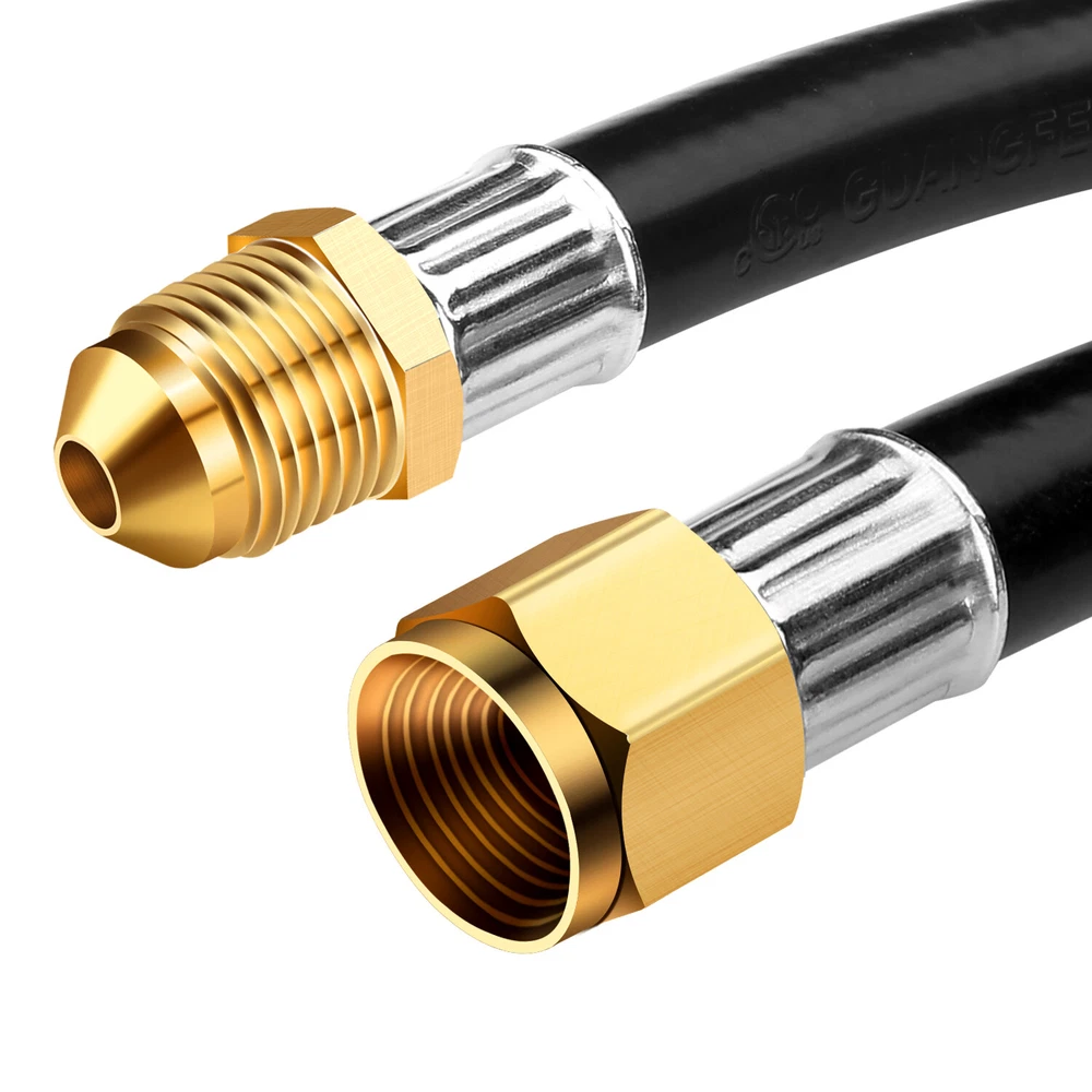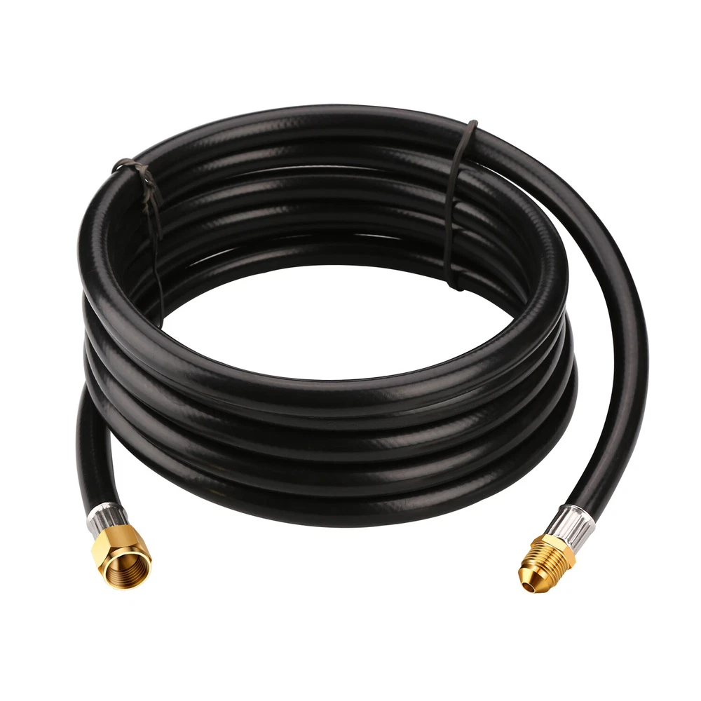 12FT Propane Extension Hose, 3/8 inch Female Flare Fitting x 3/8 inch Male Flare Fitting Propane Hose for Gas Grill, RV, Turkey Cooker, Propane Fire Pit, Heater, Generator, Gas Grill, and More Features and further details 12 Feet long propane hose, extended propane hose with 3/8'' Female Flare Fitting x 3/8'' Male Flare Fitting , can meet your BBQ needs. Convenience : 12FT propane appliance extension hose is convenient for you. You don't have to move your larger fuel tank. and it can be used in addition to the existing hose for more length between the propane tank and the gas appliances. Good Quality : Our propane extension hose is made of 100% solid brass end and high quality rubber hose construction withstands weather, scratching, denting and corroding, more flexible and durable. Application: WADEO propane extension hose can be used for BBQ Gas Grill, Turkey Cooker, Propane Fire Pit, Generator, BBQ Gas Grill, Heater and More. Attention: The propane hose is ONLY use for low pressure propane appliance. Please connect your low pressure regulator to a standard propane appliance. 12 FT Propane Extension Hose, 3/8 inch Female x Male Flare Fitting Propane Hose Specification Length: 12 Feet. 3/8'' Female Flare Fitting x 3/8'' Male Flare Fitting. Attention: ONLY use for low pressure propane appliance. Use for: Gas Grill, Turkey Cooker, Propane Fire Pit, Generator, BBQ Gas Grill, Heater and More.