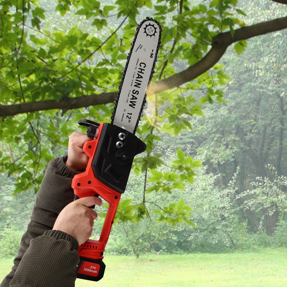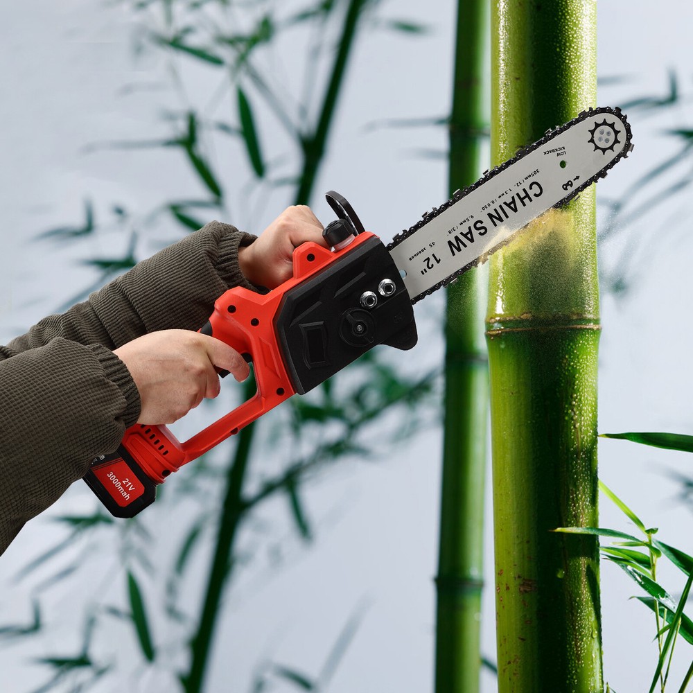Package Included 1* Chainsaw Mainframe 1* Guide Bar 1* Chain 1* Battery 1* Charger 1* Protective Baffle 1* Handel 1* Wrench 1* English Manual Specifications Style: Modern Model: 18D04 Color: Red, Black Battery Voltage: 21V Battery Capacity: 3000mAh Plug Standard: US Standard Power Source: Battery Powered Motor Type: Brushless Motor Assembly Required: Yes Guide Bar Length: 30.48cm/12 in Adapter Model: SRJ210100 Adapter Input: AC 100-240V, 50/60HZ, 0.8A Adapter Output: 21V 1.0A Gross Weight: 3.5kg/7.72 lbs Total Height(Battery Included): 65cm/25.59in Battery Size(L*H): 20*14cm/7.87*5.51in Package Size: 16*20.5*36cm/6.3*8.07*14.17 in Welcome to worldwide888-shopping! Description Description Using traditional axes to cut wood is inefficient and very tiring, so you can choose our mini cordless chainsaw for improving efficiency in pruning, wood cutting, and gardening. It boasts a high quality and provides a great cutting effect, all while featuring a lightweight and compact design. With a battery-powered power source, it can be conveniently used for outdoor operations, emergencies, and in locations without access to sockets. Having it will make your work easier and simpler! Key Features Sturdy and Durable: The product is made of high-quality materials, using exquisite craftsmanship, with high strength, wear resistance, and long service life. High Efficiency: Thanks to its premium motor, strong power, sharp chain, long guide plate (12 in), and fast chain speed, this item can achieve a large cutting diameter with less power consumption, allowing you to prune, saw, and log with less time and effort. Environment-friendly: Adopting rechargeable lithium batteries as the power source without plugging in wires, this chainsaw is more environmentally friendly compared to other gasoline-powered chain saws because it does not generate gas and emissions. Long-lasting Battery : The large-capacity (3000mAh) lithium battery can make the product work for long hours, so do not have to worry about frequent charging and power emergencies affecting the work. The equipped charger ensures timely charging for the battery. Thoughtful Design: The oil level window allows you to monitor changes in the oil level in real-time to facilitate timely refilling. Good Heat Dissipation Performance: The heat-sink holes on the machine ensure a good heat dissipation effect, which can effectively avoid excessive body temperature, thereby extending the service life of the machine. High Safety: The safety lock and on/off trigger provide a double safeguard against accidental activation and protect your use. Easy to Use: Easy to Use : With the lightweight (gross weight: 7.72 lbs), compact design(25.59in total length), and a detailed English manual, you can easily operate the cordless chainsaw. Even the elderly and women can easily operate and control it, making cutting and trimming a pleasure. Customer Service: We aim to provide high-quality products and services. If you have any questions, please feel free to contact us. We will reply as soon as possible and solve the problem for you. Details Protective Baffle: It reduces workpiece debris splashing and protects you from injury during cutting. Ergonomic Handles: The ergonomic handle has textured skin, gives you a comfortable grip without slipping, absorbs shock, and reduces hand fatigue even in long-term use. The auxiliary handle is easy to control to achieve a good balance and high-cutting performance. Application It is widely used in gardens, parks, farms, ranches, pastures, orchards, greenhouses, forests, camping, etc., and can be used for forest harvesting, wood cutting, small branch pruning, bush pruning, gardening, home woodworking, bamboo sawing, logging, DIY crafts, and so on. Specifications Style: Modern Model: 18D04 Color: Red, Black Battery Voltage: 21V Battery Capacity: 3000mAh Plug Standard: US Standard Power Source: Battery Powered Motor Type: Brushless Motor Assembly Required: Yes Guide Bar Length: 30.48cm/12 in Adapter Model: SRJ210100 Adapter Input: AC 100-240V, 50/60HZ, 0.8A Adapter Output: 21V 1.0A Gross Weight: 3.5kg/7.72 lbs Total Height(Battery Included): 65cm/25.59in Battery Size(L*H): 20*14cm/7.87*5.51in Package Size: 16*20.5*36cm/6.3*8.07*14.17 in Package Included 1* Chainsaw Mainframe 1* Guide Bar 1* Chain 1* Battery 1* Charger 1* Protective Baffle 1* Handel 1* Wrench 1* English Manual Notes Please note that gloves (not included) should be worn if necessary. Please keep the product out of reach of children to avoid injury. Please use this product to cut wood within the applicable size range. Please note that this product does not come with lubrication oil. Please read the English manual completely before use, and pay particular attention to the safety instructions included. Please fully charge it before your first use. Please confirm the direction and tightness of the chain before use. If it is not used for a long time, please remember to fully charge the battery first for a better experience the next time you use it. Please allow the slight color difference caused by the shooting light and 1-3cm error due to manual measurement, and make sure you do not mind before you order. Payment Delivery details Terms of sales About us Contact us Payment We accept ebay payment 。 Fees such as import duties, taxes are not included in the item price or shipping costs. These charges are the buyer's responsibility. Delivery details Shipping: 2-9 working days to: USA Terms of sales We maintain high standards of excellence and strive for hundred percent customer satisfaction. Feedback is very important to us. We hope that you contact us immediately before you give neutral or negative feedback, so that we can address your concerns. It is impossible to address issues if we do not know about them! About us Your satis faction is our ultimate goal. We work hard to earn your trust and future business. Our certified technicians have tested each item before shipping. The unit comes with