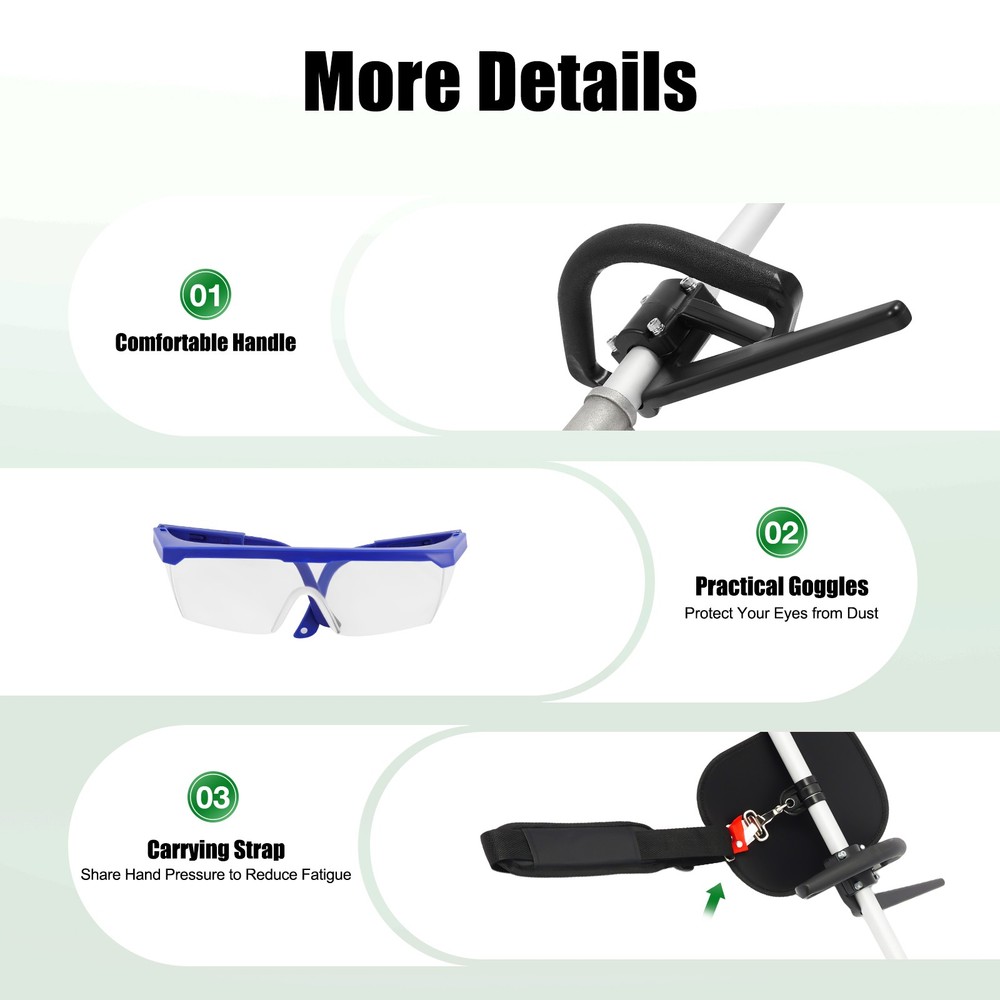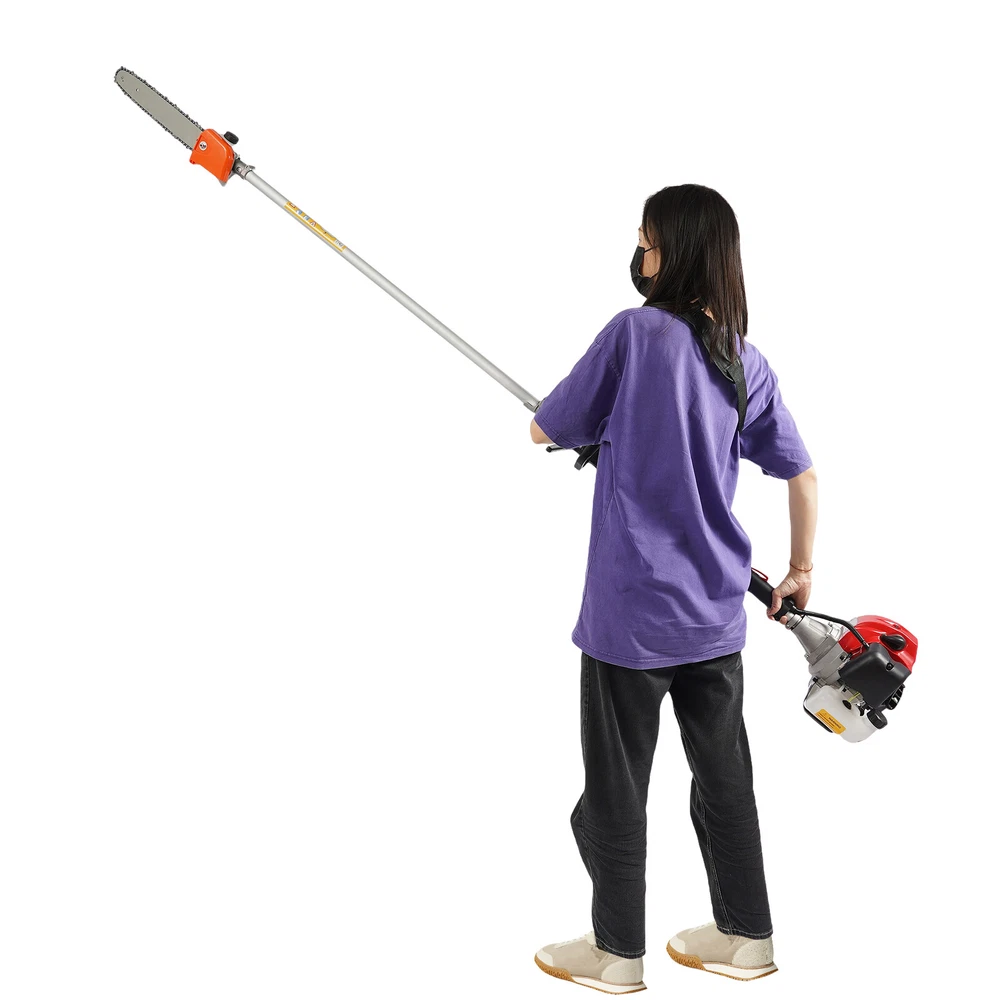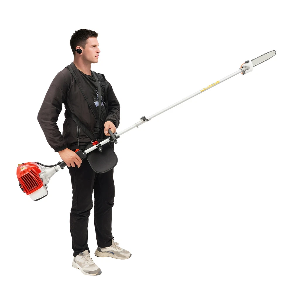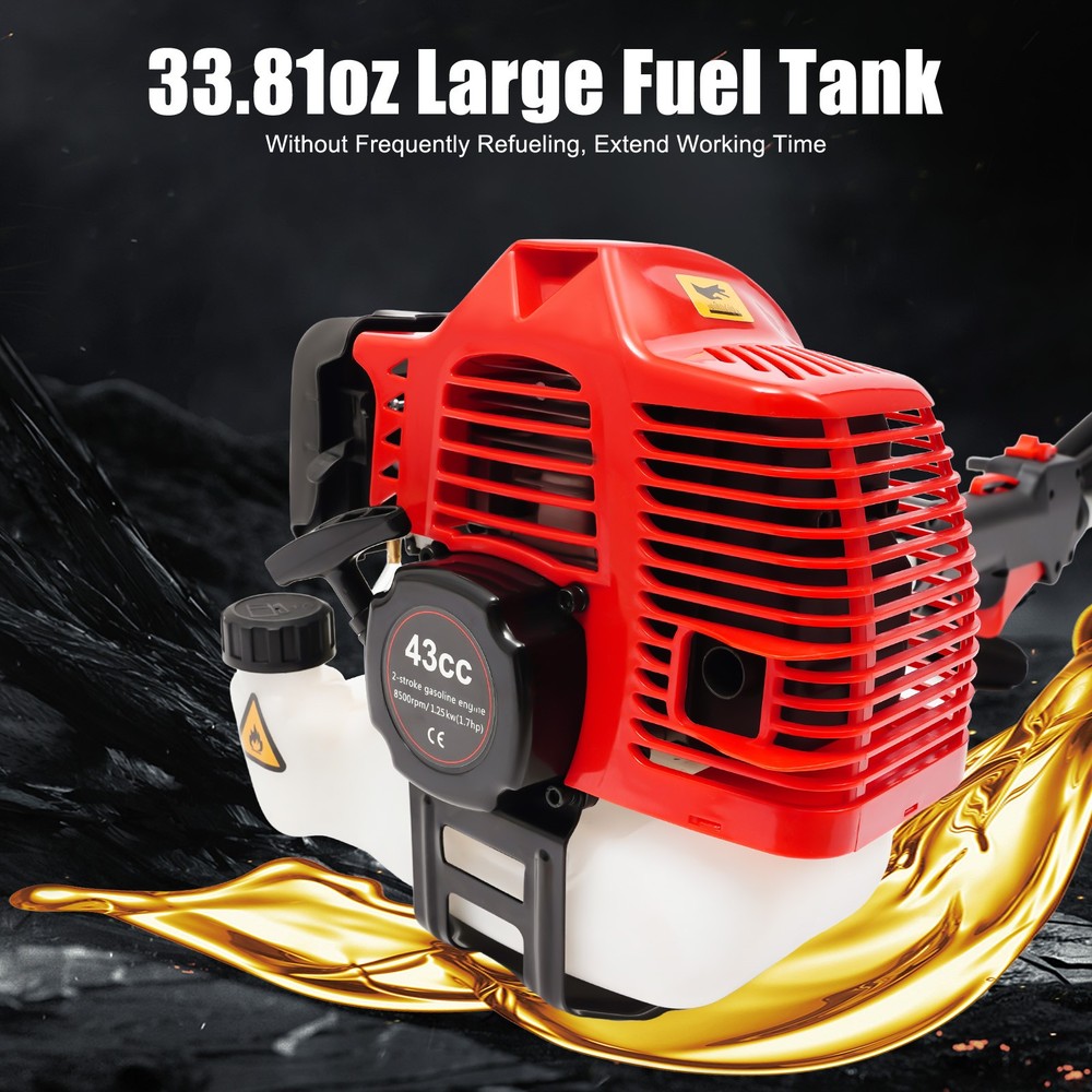 This gas-powered pole saw is a beast! The lightweight aluminum alloy body makes it easy to handle, while the powerful 43cc engine slices through branches effortlessly. The 12-inch manganese steel blade stays sharp, and the adjustable length (up to 11.5ft!) lets you reach high branches safely. Starts up quick with the manual pull, and the side-attached design balances nicely. Perfect for heavy-duty pruning—no more struggling with thick branches! The fuel mix is simple, and the 1L tank means less refilling. A total game-changer for yard work!