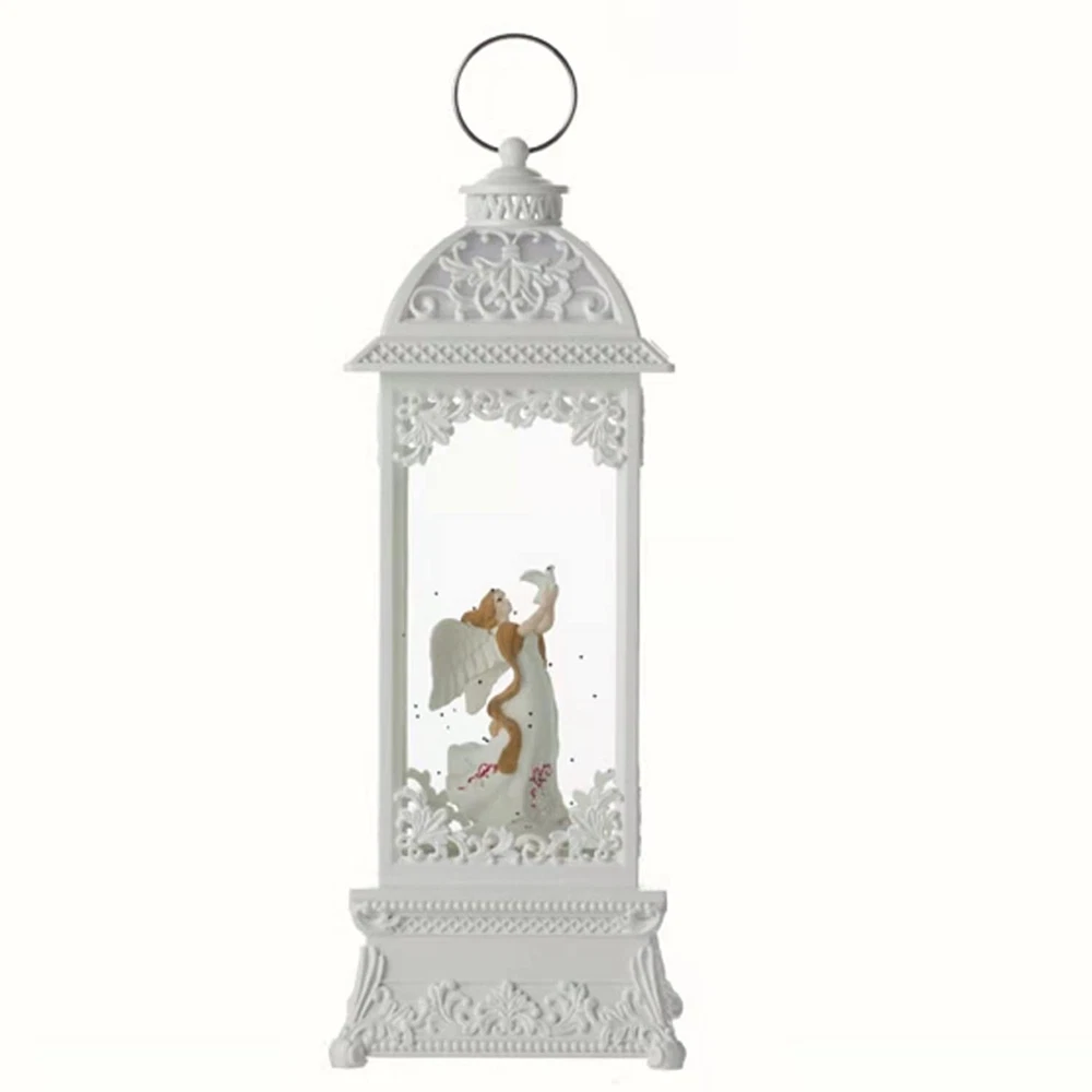 12” White Angel with The Pearl Snow Globe Lantern Lighted Box Night Light Battery Or USB Operated Led Lighted Water Glittering Music Playing for Home Decoration Product Details Style: White Angel With Dove Brand: DANVON MPN: Music box lantern UPC: 788431443619 EAN: 0788431443619 Brand: DANVON Material: Resin, ABS Plastic Color: White Product Dimensions: 4"L x 4"W x 12"H Style: White Angel With Dove Brand: DANVON Material: Resin, ABS Plastic Color: White Product Dimensions: 4"L x 4"W x 12"H Style: White Angel With Dove Item Weight: 3.4 Pounds Base Material: Resin, ABS Plastic UPC: 788431443619 Item Weight: 3.4 pounds Manufacturer: DANVON Country of Origin: China Item model number: Music box lantern Batteries required: Yes Measurements & Music Playing: 3.4 pounds, dimensions of the lantern: 4" x 4" x 12". The music is Castle in the Sky. USB / Battery Operated:Included USB to DC cable allows you power on the snow globe lantern without batteries. You can also operate it with 3 AA batteries, so that you can place it in any place that you like. Decoration & Gift Choice:The sculpture is a spiritual representation of purity, innocence, peace, and the Holy Spirit .A fantastic lighted snow globe lanten decorations for the home. With gift wrapped, also a best gift choice for your family and friends in Christmas, Valentine's Day or Birthday. Well Designed & Well Constructed: Unique pavilion frame snow globe with white angel holding dove of peace figurine inside, high quality resin and ABS plastic promising long-time durability. A centerpiece which can keep company with you for a long time. Easy To Use:The LED light is turned ON/OFF by a two-way switch on the bottom. Flicks the switch to one end will illuminants holy angel and dove, simulates shimmering effect by the silver glitter flakes. Flicks the switch to another end will turn on LED light and music will play.