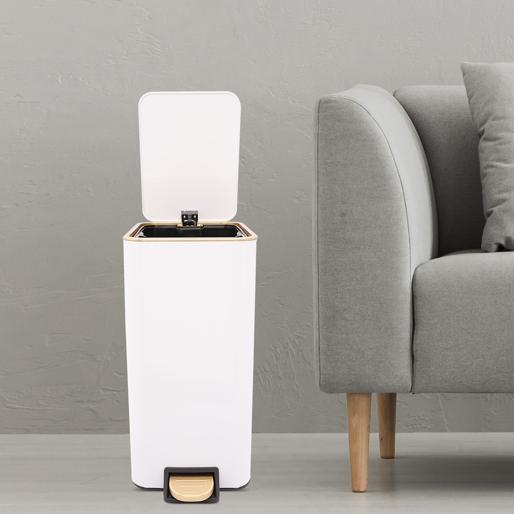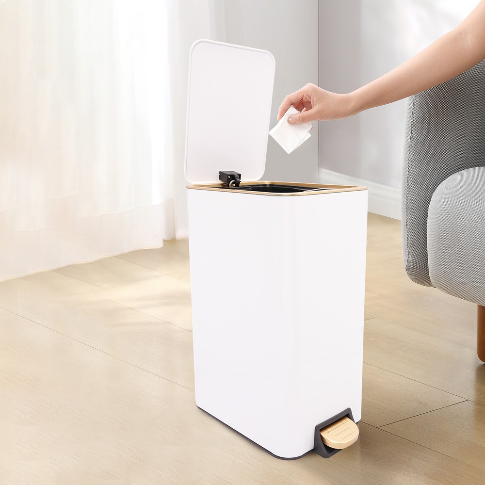 Specifications Color: White Material: Carbon Steel, PP, ABS Process: Spraying Paint Capacity: 12L/3.17Gal Mount Type: Free Standing Assembly Required: No Product Size: 24*18*37cm/9.45*7.09*14.57in Packaging Size: 39.5*30.5*22cm/15.55*12*8.66in Gross Weight: 2.3kg/5lbs Net Weight: 1.8kg/3.97lbs Package Included 1*Step Trash Bin 1*Inner Barrel 12L Step On Kitchen Garbage Bin Foot Pedal Trash Can Carbon Steel Step Trash Bin Description Boasting a streamlined shape and compact dimensions, this step trash bin can blend into different decoration styles of your home. The pedal effortlessly controls the lid's opening and closing without hand contact, thus safeguarding your health and keeping the house clean. Its compact size and 3.17gal inner barrel allow this product to fit in a variety of narrow places such as the kitchen, bathroom, and so on to easily dispose of daily garbage. Key Features High-quality Material: Built of premium carbon steel, PP, and ABS, the product is corrosion-resistant , anti-wear , hard to deform, and can keep high sturdiness and practical function for long-term use. Large Capacity: 3.17Gal large capacity can meet your daily trash storage needs and avoid dumping multiple times in a day. Quiet Closing: This product has a built-in hydraulic slow closing device, when your foot is off the pedal, the trash can will close slowly and quietly without making a loud noise, so you don't have to worry about affecting your family's rest. The lid design can effectively prevent pets from getting into the trash can and making a mess in the room. Healthy to Use: You can tap the pedal to open the top and throw the trash away, avoiding direct contact with the trash can and maintaining your personal hygiene and health. Easy to Clean: The smooth surface, simple structure, and removable inner barrel allow you to easily clean both its interior part and exterior part with a soft cloth. Modern Design: The simple shape, smooth lines, golden trim, and pure white color make the product easily blend into various types of rooms, and become an excellent home decoration complement to the room. Space Saving: The compact size(9.45*7.09*14.57 inches) allows you to place it in corners and narrow places in your room, saving you space for other furniture. Thoughtful Design: The inner bucket comes with a convenient handle that allows it to be easily removed and cleaned. It also comes with a trash bag hole for storing extra trash bags. Details Rounded Corners: They are smooth and comfortable to the touch, and can protect your hands from getting scratched during daily use. Non-slip Footrest: The convex texture texture on the footrest can increase friction and prevent your feet from sliding when you step on it. Application The product is suitable for the kitchen, bedroom, living room, study, activity room, children's room, office, classroom, and so on. Specifications Color: White Material: Carbon Steel, PP, ABS Process: Spraying Paint Capacity: 12L/3.17Gal Mount Type: Free Standing Assembly Required: No Product Size: 24*18*37cm/9.45*7.09*14.57in Packaging Size: 39.5*30.5*22cm/15.55*12*8.66in Gross Weight: 2.3kg/5lbs Net Weight: 1.8kg/3.97lbs Package Included 1*Step Trash Bin 1*Inner Barrel Notes 1. Please check the size carefully before ordering. 2. Please allow the slight color difference caused by the shooting light and 1-3cm error due to manual measurement, and make sure you do not mind before you order. Payment Delivery details Terms of sales About us Contact us Payment We accept ebay payment 。 Fees such as import duties, taxes are not included in the item price or shipping costs. These charges are the buyer's responsibility. Delivery details Shipping: 2-9 working days to: USA Terms of sales We maintain high standards of excellence and strive for hundred percent customer satisfaction. Feedback is very important to us. We hope that you contact us immediately before you give neutral or negative feedback, so that we can address your concerns. It is impossible to address issues if we do not know about them! About us Your satis faction is our ultimate goal. We work hard to earn your trust and future business. Our certified technicians have tested each item before shipping. The unit comes with 1 year limited warranty on all manufacturing defects. a) If you receive a defective item, you may return it or ask for a discount. Please contact us within 14 days after you receive the package. b) What you returned must be intact and in its original packaging as re? u. Customer is responsible for shipping costs of the returned item. c) We will cover the cost of shipping back t with the shipping rate indicated in the registration page. We will send you a new unit or refund the full payment you paid. Thank you. Contact us Business Hour Business Hour: Monday To Friday: 8:30 AM to 5:00 PM (Beijing China time) Due to time zones, our reply to your questions may not be immediately. But within above working time, we will reply your email within 24 hours. If it's non-workdays, please kindly be patient and wait till Monday. Please contact us with ebay message. Please feel free to contact us if you have any questions. Monday To Friday: 8:30 AM to 5:00 PM (Beijing China time) Due to time zones, our reply to your questions may not be immediately. But within above working time, we will reply your email within 24 hours. If it's non-workdays, please kindly be patient and wait till Monday. Please contact us with ebay message. Please feel free to contact us if you have any questions. Brand Unbranded Item Length 24cm/9.45in Item Width 18cm/7.09in Item Height 37cm/14.57in Type Step Trash Bin Room Home Office/Study Color White Material Carbon Steel, PP, ABS Capacity 12L/3.17Gal Size 24*18*37cm/9.45*7.09*14.57in Features Lid Lock Style Modern Shape Rectangle Mount Type Free Standing Assembly Required No Packaging Size 39.5*30.5*22cm/15.55*12*8.66in Gross Weight 2.3kg/5lbs Net Weight 1.8kg/3.97lbs