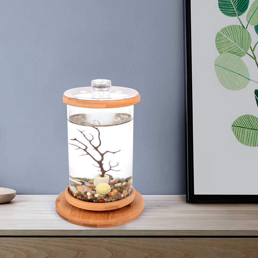 Aquarium Fish Tank 1.2L Small Betta Tank Starter Kit with LED Light Modern Description This high-quality eco fish tank has a beautiful appearance and an active landscape inside, making it a charming tabletop decoration. 360° rotation and LED lights allow you to view them in all directions and at night. The glass has a good light transmission and beautiful curvature to enhance your visual enjoyment. It is ideal for home use or as a gift for a friend! Key Features Sturdy and Durable: The high-quality bamboo, glass, natural sandstones, and resin make it resistant to break, corrosion, and fading, ensuring a long service life. Clear View : The 360° rotatable design allows you to view your fish more conveniently by gently spinning the tank. The clear glass tank ensures a clear view of the inside fish and the water status, thus putting you in a good mood while timely replacing water. LED Light Design : The LED light with high brightness and low electricity consumption brings you visual enjoyment. It also provides energy for your water plants(you can prepare real plants yourself) so photosynthesis can provide oxygen to your fish. Beautiful Appearance : The clear glass, bamboo with natural texture and lifelike view inside blend very well with each other, like a small natural pond. The light shines into the water's surface, making it appear sparkling, vivid, and active. Beneficial to Your Body & Mind : Observing fish swimming not only makes you feel relaxed for relieving stress and improving nighttime sleep but also enhances your attention and creativity, helping you become more focused and efficient in your work and study. High-efficiency Filtration: Wide and deep design can accommodate more filter materials(not included), helping increase the filter area and achieve efficient filtration. Small Footprint : It's compact(5.7*5.7*7.08in) and can accommodate 0.3Gal water, you can place it on any small tabletop without taking up much space. Easy to Clean : The smooth glass tank and lid design allow you to clean this product easily with wet wipes. Exquisite Gift : The delicate fish tank adds a sense of sophistication and happiness to life. You can send it to your kids, classmates, friends, colleagues, and family for festival days or birthday parties, giving their home a natural touch. Customer Service: We aim to provide quality products and services. If you have any problems, please feel free to contact us. We will reply and solve the problem for you as soon as possible. Details Solid Base: The thickened and enlarged base (5.7" in diameter) can increase the stability of the product and protect the tank from sliding. Lid with Holes : It facilitates oxygen circulation and feeding the fish, allowing you to better care for your fish and providing it with a healthier environment. Rounded Corners: The rounded and burr-free edges provide a comfortable and safer touch for you. Application This eco fish tank can be placed as decoration in the living room, corridor, entrance hall, study, dining room, bookstore, study room, bedroom, conference room, office, an d other places. Specification Material: Glass, Resin , Sandstone, Bamboo Color: Clear, Wood Color Shape: Cylindrical Light Source: LED Target Species: Fish Style: Compact, Modern Specific Uses For Product: Indoor Power Supply: 2*3V CR2032 Cell Batteries(Included) Capacity: 1.17L/0.3Gal Gross Weight: 0.5kg/1.1lbs Tank Size(D*H): 10*15cm/3.94*5.9in Product Size: 14.5*14.5*18cm/5.7*5.7*7.08in Package Size: 15*15*26cm/5.9*5.9*10in Package Included 1 * Eco Fish Tank Notes Bamboo frames are spliced together and will inevitably have wood knots and spliced textures. Please make sure that you do not mind before ordering. This item does not include fish. Fighting fish cannot live in groups, they will fight and only one should be kept in a container. When keeping fish, please keep the water level at 1 inch from the mouth of the bottle so that they have enough space to breathe from the water's surface. We recommend waiting until you receive the product and install it, add water, and keep it for about 3 days before buying the fish. Please pass the fish through the water before placing them in the bathtub. Lights can be turned on for a short time when viewing and feeding fish. It is recommended to turn on 8 hours to replenish the light to the aquatic plants usually about every 3-5 days. Please avoid long-time sunlight as too long a time is easy to breed algae. Please allow the slight color difference caused by the shooting light and 1-3 cm error due to manual measurement, and make sure you do not mind before ordering. Payment Delivery details Terms of sales About us Contact us Payment We accept ebay payment 。 Fees such as import duties, taxes are not included in the item price or shipping costs. These charges are the buyer's responsibility. Delivery details Shipping: 2-9 working days to: USA Terms of sales We maintain high standards of excellence and strive for hundred percent customer satisfaction. Feedback is very important to us. We hope that you contact us immediately before you give neutral or negative feedback, so that we can address your concerns. It is impossible to address issues if we do not know about them! About us Your satis faction is our ultimate goal. We work hard to earn your trust and future business. Our certified technicians have tested each item before shipping. The unit comes with 1 year limited warranty on all manufacturing defects. a) If you receive a defective item, you may return it or ask for a discount. Please contact us within 14 days after you receive the package. b) What you returned must be intact and in its original packaging as re? u. Customer is responsible for shipping costs of the returned item. c) We will cover the cost of shipping back t with the shipping rate indicated in the registration page. We will send you a new unit or refund the full payment you paid. Thank you. Contact us Business Hour Business Hour: Monday To Friday: 8