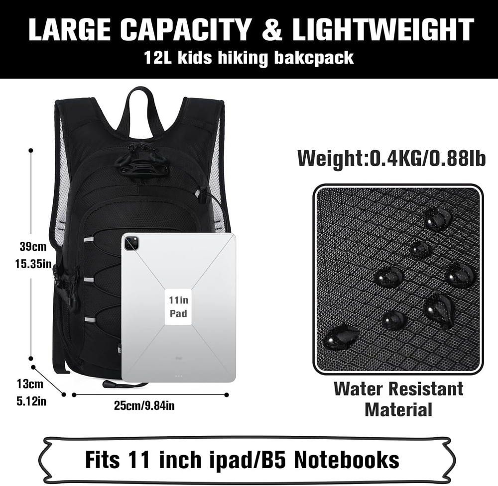 Store New Arrivals Add to Favorite View Feedback Contact 12L Kids Hiking Backpack, Small Hydration Backpack, Waterproof Kids Camping Backpack 8-12, No Water Bladder… Description Age Range Description Kid or Big Capacity Total 18 Liters Number Of Items 1 Color Black Product Dimensions 5.9 x 9.84 x 17.7 inches Item Weight 12.3 ounces Department mens Units 1 Count 【Lightweight and Durable】: This 12-liter hiking backpack for children is made of high-quality materials and is lightweight and durable. Small hiking backpacks are great for hiking, biking, day trips or other outdoor adventures and are a long-term companion for kids. Backpack size :15.35 x 9.84 x 5.12 inches /39*25*13CM. Suitable for children over 8 years old and adults. 【Spacious & Large Capacity】: The kids travel backpack has a spacious main compartment for clothes, lunch boxes or other everyday items. The main compartment has a special water bag compartment for holding the water bladder. In addition, the camping backpack for kids has a zipper front pocket for storing blankets or snacks. Mesh pockets on both sides can be used to access additional water bottles or umbrellas. Please Note: Water bladder is not included. 【Safety Features】: The webbing in the front pocket of the backpack and the shoulder straps on both sides of the back have reflective strips designed to ensure safety at night. The chest strap features a safety whistle for easy use. 【Comfortable & Breathable】: The kids outdoor backpack has an adjustable shoulder strap, chest strap and waist belt. The pressure can evenly distributed to the chest of the shoulder. This kids sports backpack has a honeycomb sponge panel, which is more breathable and cool. 【Ideal Travel Companion】: A suitable kids camping backpack helps develop children's storage habits, enough space can provide children with their favorite toys and blankets storage space. This kids hydration backpack is easy to carry and is a great choice. Kids will love to explore the wonders of the world with this sports backpack. Ideal for excursions, outings, visits to zoos/museums and other outdoor activities. Product Description 1 Kids Hiking Backpack 2 Kid Camping Backpack 3 Kids Skiing Backpack 4 Kid Cycling Backpack Multi-Compartment Design, 12L Kids Backpack, Enough for Kids Outdoor Activities! The kids hiking backpack has 1X main compartment, 1X front pocket, 2X side water pockets. Main compartment is designed with a compartment for water bladder. Versatile Kids Pack for Hiking & Cycling, External System for Carrying More! Children's Hiking Backpack with Focus on Every Details! Durable Material Kids hiking backpack is made of scratch-resistant fabric. This durable material helps protect bag from wear & tear, extending its lifespan. Emergency Whistle This practical addition enhances the backpack's overall safety, giving both children and parents peace of mind during hikes or outdoor activities. Water-Resistant Material This feature helps keep the contents of the bag dry, making it perfect for outdoor adventures in varying weather conditions. Breathable Sponge Liner Breathable foam pad is designed for comfort, reducing pressure, evenly distributing weight, and preventing overheating during long hikes. Kids Hiking Backpack for Boys & Girls 8-10 10-12 Years Old! The Perfect Gift for Kids — Create Unforgettable Adventures Together! ABOUT US We offer the best prices around on high quality products. Our E-store includes media such as books, movies, music and games while offering electronics, toys, sporting apparel, clothing, tools, general home, garden items and more. SHIPPING We are always working hard to ensure your package arrives as soon as possible. Please understand that some factors like weather, high postal traffic, and the performance of shipping companies are outside of our control. We offer free shipping to the lower 48 states and ship within 2 business days of payment, usually sooner. We do not accept P.O. Boxes. Please provide a physical address. For shipping outside of the continental USA, we only use eBay's Global Shipping Program.The item is shipped to KY and then sent to the rest of the world. International customers are responsible for all duties and taxes. Continue to check out in order to calculate costs for shipping the item to your country. Messages regarding eBay's Global Shipping Program MUST be directed at eBay EXCLUSIVELY. RETURNS We offer a 30-Day Return Policy on items which you are not completely satisfied with. You have the option for a full-refund or an exchange of the item. No returns are available on items shipped outside of the USA. PAYMENT We accept PayPal. CONTACT US This page content is yet to come Please ad us to your favorite seller and visit again later Thank You CUSTOMER SATISFACTION We try our very best to make sure every customer is completely satisfied. If there's a problem, message us! We're happy to help. WE ACCEPT Copyright © 2021 AutoDS. | All Rights Reserved