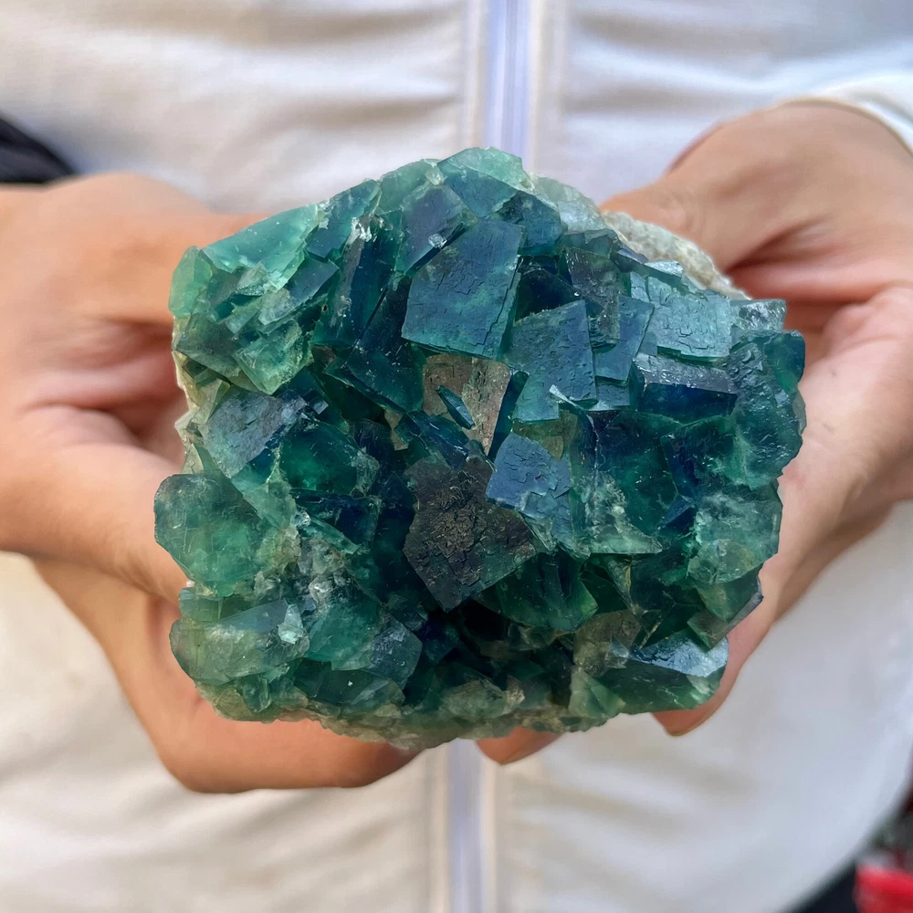 2.9LB NATURAL Green Cube FLUORITE Quartz Crystal Cluster Mineral Specimen
