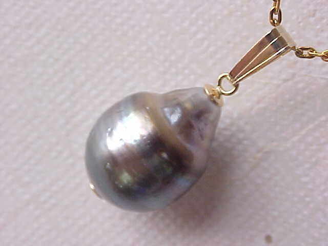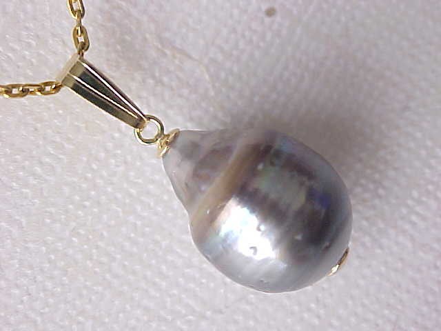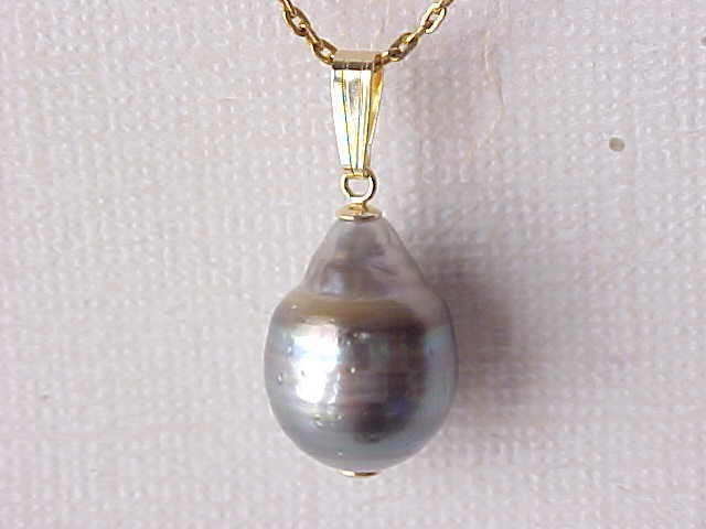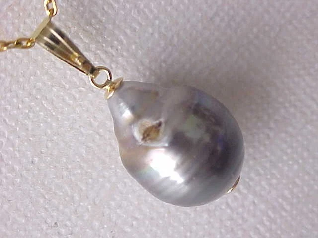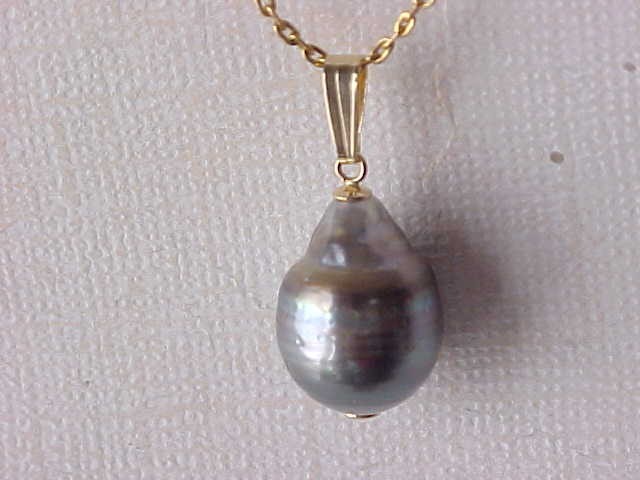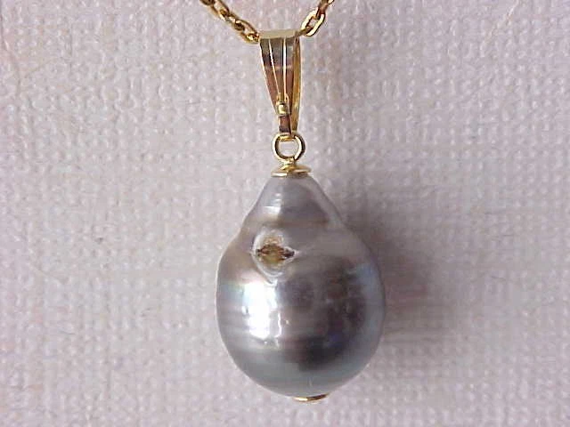 You are bidding on a beautiful Tahitian South sea saltwater pearl pendant solid 14kt yellow gold (the chain not included). The pearl measures 12mm x 16mm, genuine Tahitian pearl, natural in color, thick nacre, smooth surface and very luster AAA. The pearl has a blemish on the back as the pictures show. The pearl is set on solid 14kt gold. We accept Paypal. Payment should be made within 7 days after auction ending. S&H: $6.99 in USA in USPS first class mail. Please feel free to contact us if you have any questions. Please also to view our store for may beautiful items.