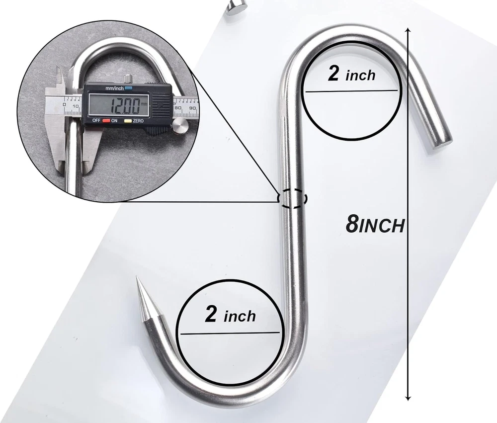 12Mm Heavy Duty Meat Hooks,8 Inch Stainless Steel S-Hooks Meat Processing Butche