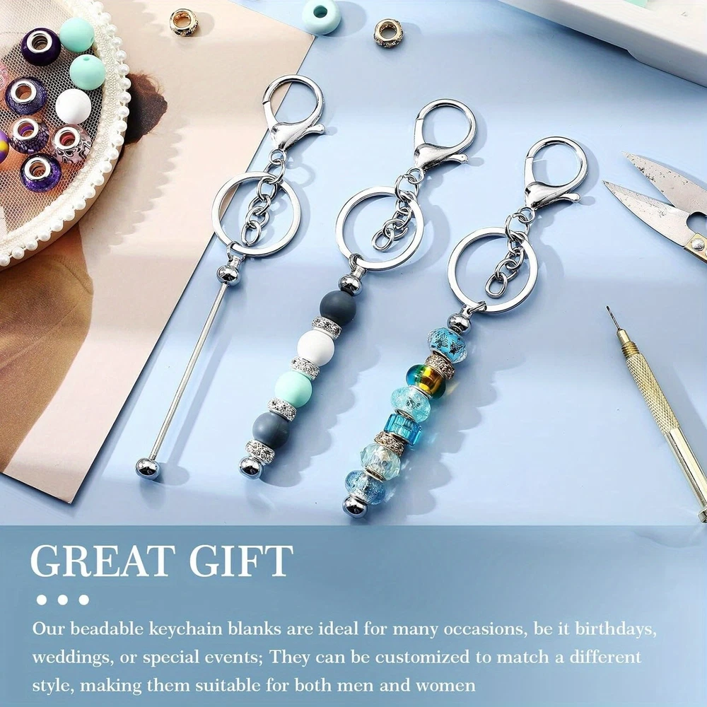 12P Bead Decoration Keychain Suitable for Bead Keychain Excluding Beads 12pcs Shiny Beadable Keychain For DIY Jewelry Making Excluding Beads Specification: Product Name: Beadable Keychain Bars Color(Optional):silvery Beads: Excluding Beads Size: about 150mm in length Parts List: 12 x Keychain Note: 1. There may be slight differences between the picture and the actual color of the commodity. We will try our best to show you the exact color. 2. Please allow slight dimension difference due to manual measurement.