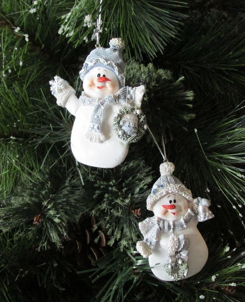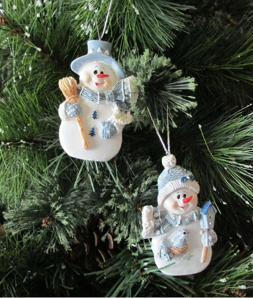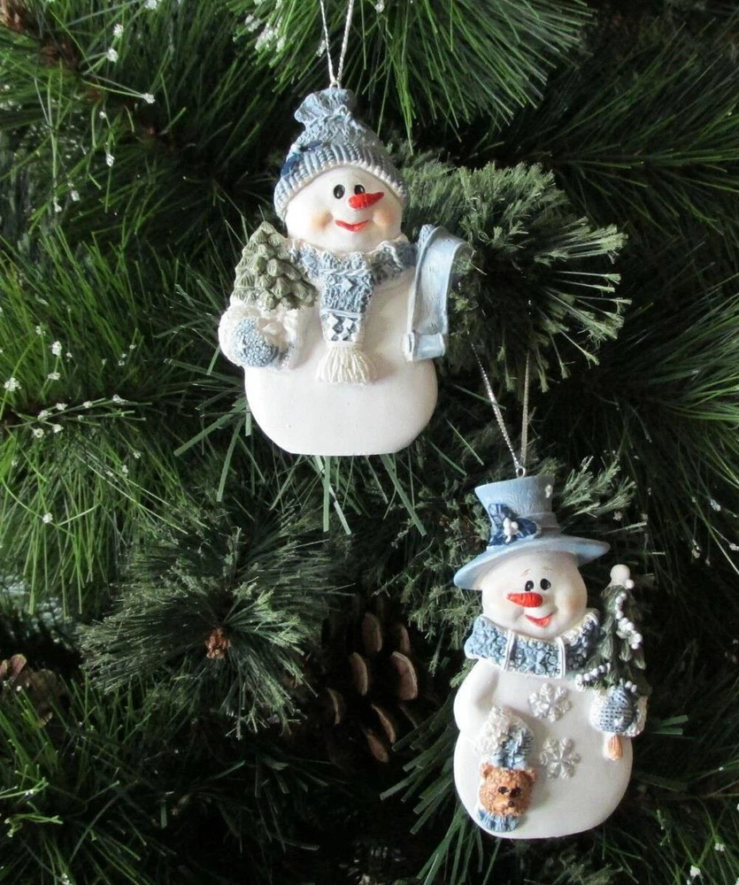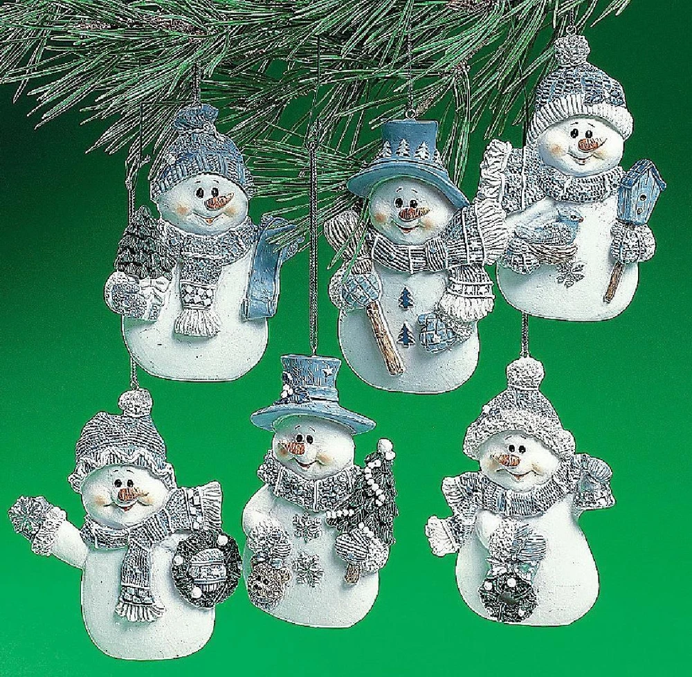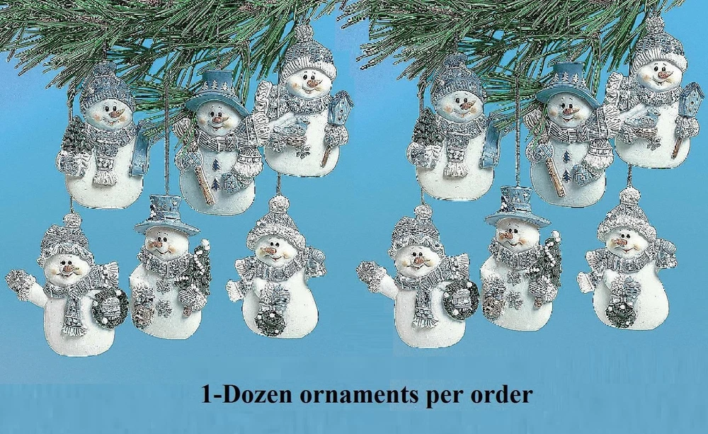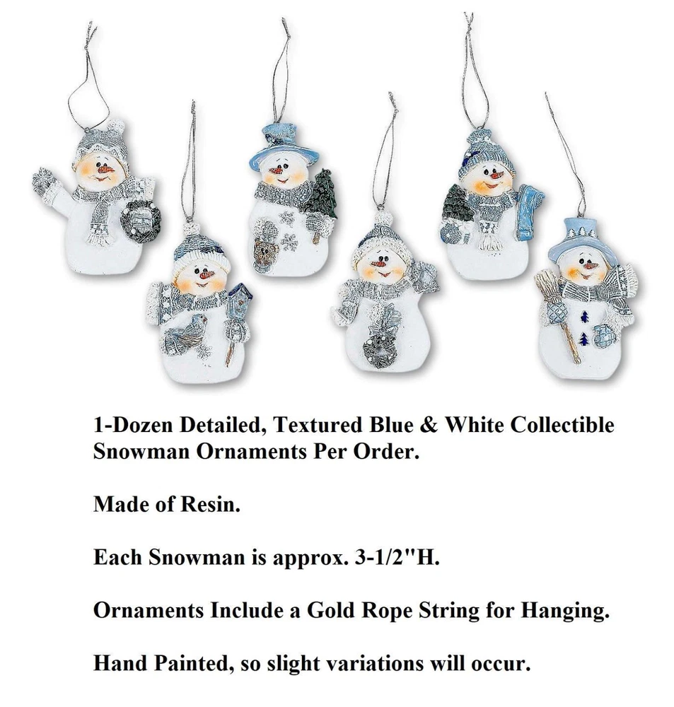 12-PC Blue & White Winter Snowman Textured Hanging Resin Ornaments 3.5"H #551