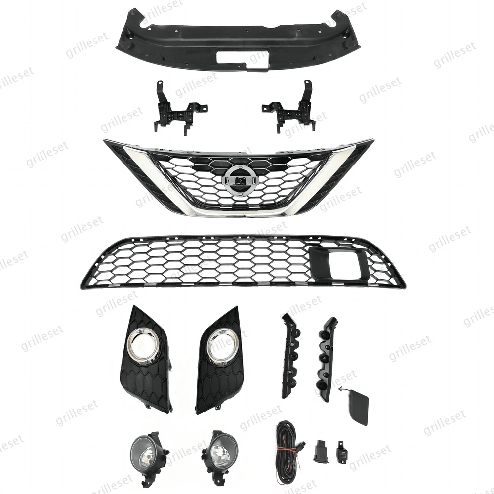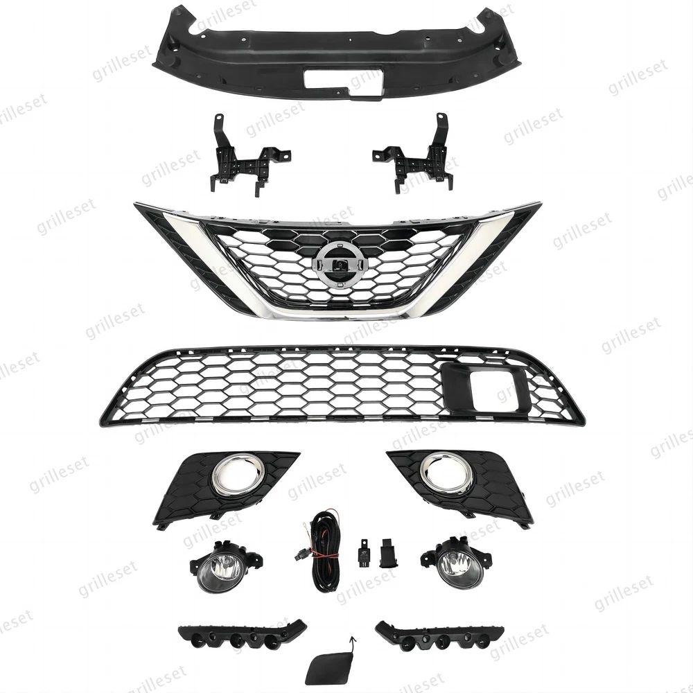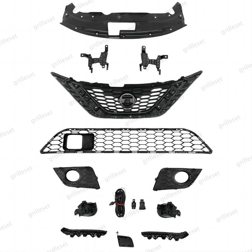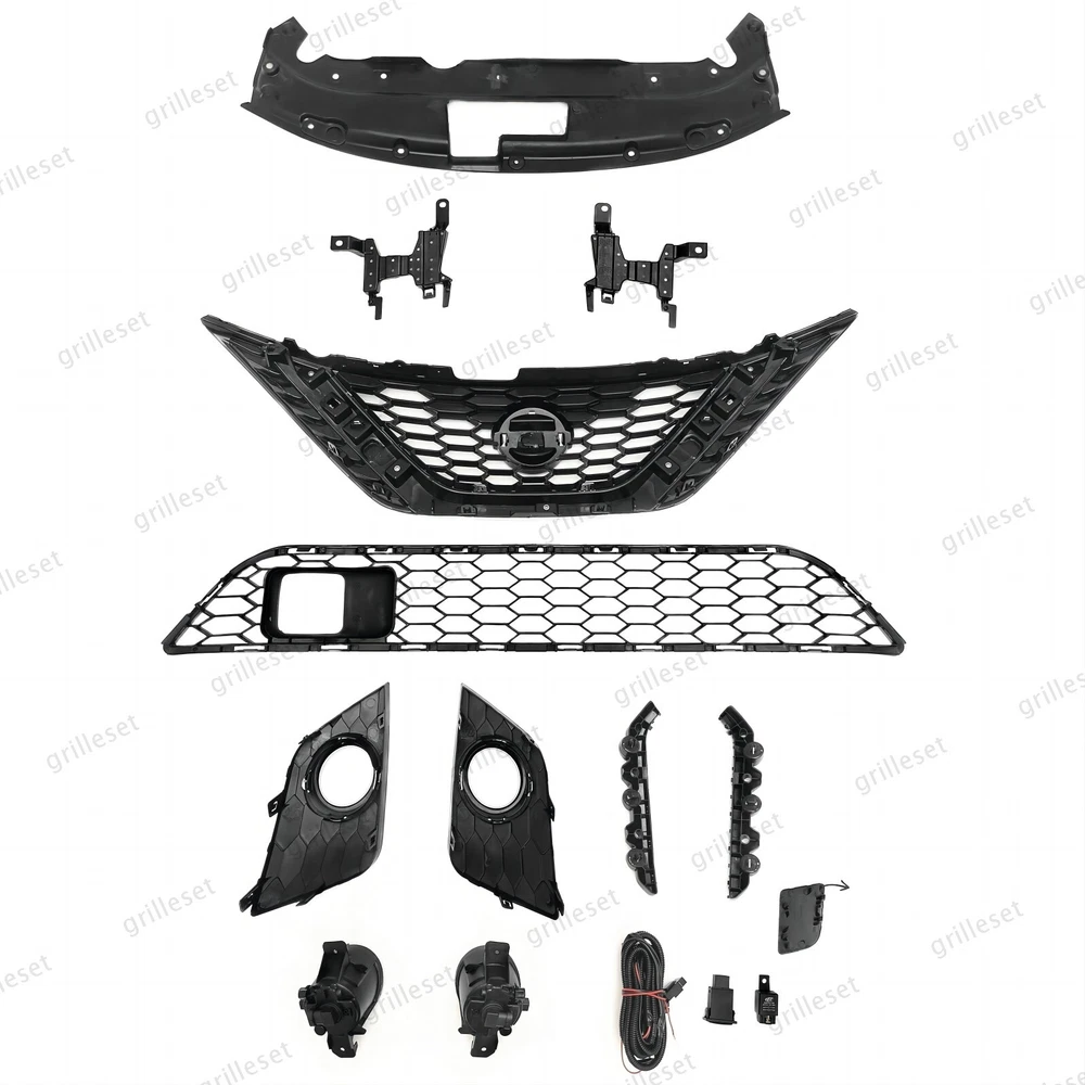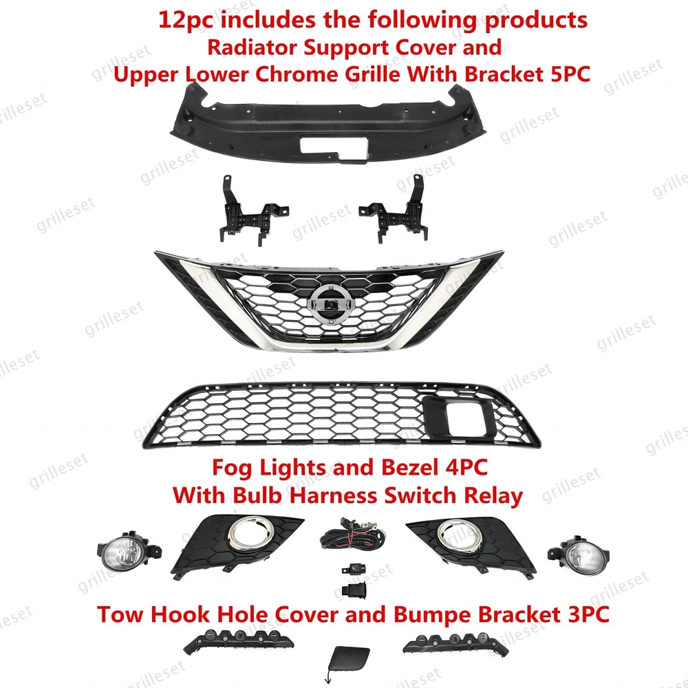 Fit for : 1 Set (12 PCS) Includes:(See more pictures for details) 1 Pc front radiator support cover 2 Pcs front upper grille retainer brackets 1 Pc front upper black grille with chrome trim 1 Pc front lower black grille mesh with adaptive cruise 2 Pcs fog lights with bulb,switch,relay and harness 2 Pcs fog light bezels(black+chrome) 2 Pcs front bumper brackets 1 Pc front Tow hook hole cover Item OE number : 62322-3YU0A; 62310-3YU0D;62254-4FY0A;62257-4AF0A;62256-4AF0A;26155-9B91D;26150-9B91D ;62225-3YU1A;62224-3YU1A;622A0-3YU0H Installation : Perfect fit direct replacement, no modifications required. Installation manual not provided; we recommend professional installation. Item's-Features : Superior quality kit 100% brand new Made from high-quality materials Excellent replacement part, no modifications needed Other parts fit for