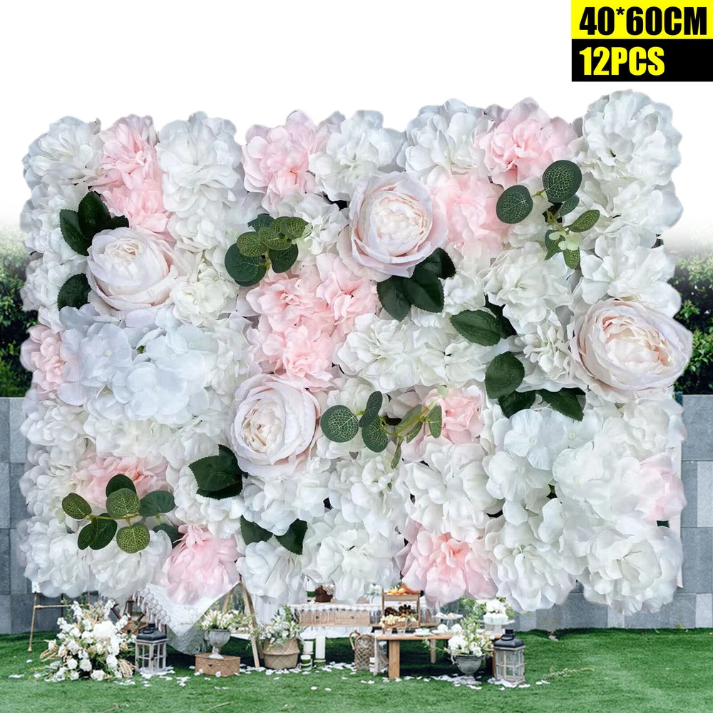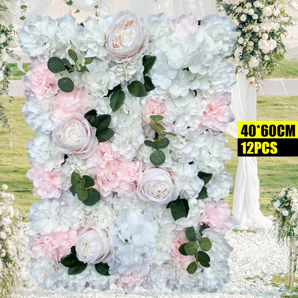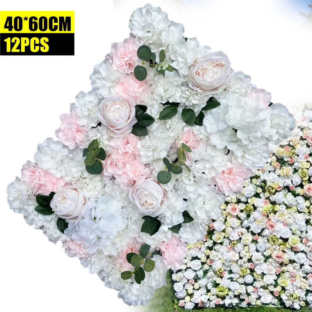 12PCS Artificial Silk Flower Wall Panels Background Bouquet Wedding Party Decor