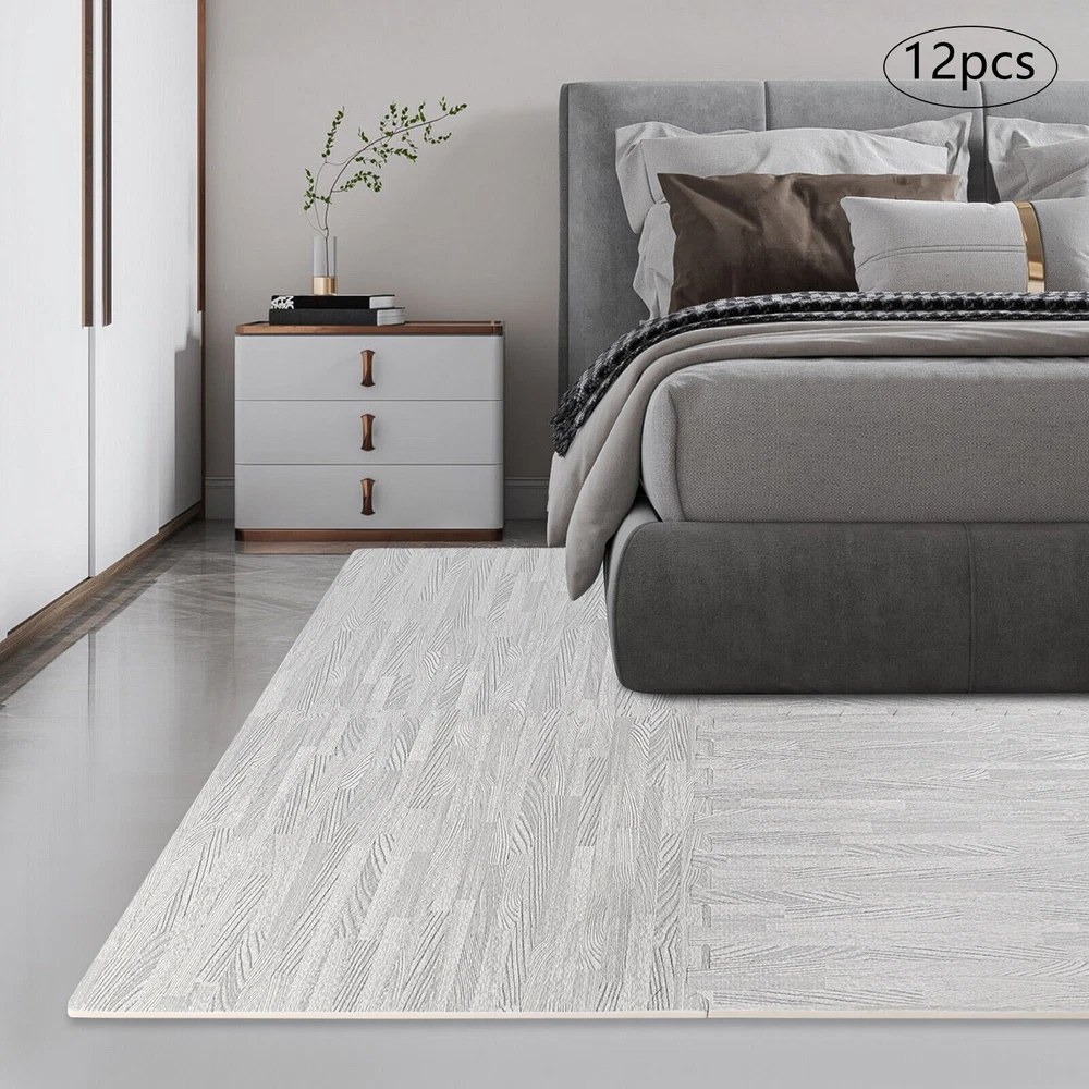 πππ Welcome to Freetrade-shop πππ Welcome~ Desc ription Beautiful mats can not only bring a different atmosphere to your home/office but also protect the safety of your family. Made of high-quality EVA foam, it is beautiful and comfortable and can bring you a different experience. It is not only a floor mat but also a quiet and simple way of life. Key Features Safe and Comfortable: The premium EVA foam has good thermal insulation, shock absorption and cushioning, cold-proof , anti-aging , low water absorption, and other properties. It can be used in all seasons, providing safe and comfortable play areas for children and infants, and reducing the possibility of injury. Reusable Design: The product can be reused in different places many times, which can save your use cost to a certain extent. Cushioned Support & Noise Reduction: The 10mm thick EVA foam can effectively absorb footsteps to create a quieter space for your home or office. It also provides a certain of cushioning effect to reduce strain on your feet, knees, and back, which is ideal for personal fitness activities such as yoga, stretching, and bodyweight exercises. Splicing Flexibility: It adopts a unique splicing design, which can be freely combined according to the actual space size, and can easily adapt to both regular and irregular floors. Moreover, its installation and disassembly are simple, making it easy to adjust and relocate. Decorate Your Room: The grey wood-grain appearance and simple square shape present a minimalist and natural style, which can decorate your living room or office well. A Set of 12Pcs: 12 mats of the same color can cover an area of 46.56ftΒ² and promote the unity of style, meeting your room area and decorating the floor well. Easy to Install: The neat interlocking gear design makes it easy for you to disassemble and assemble, as well as ensure more tight and sturdy splicing. Labor-saving Cleaning: The smooth surface with a PE film allows you to easily wipe the dust off with a damp towel, which makes you unworried even if there are milk stains and urine. Ideal Gift: It is a practical and exquisite gift to your friends, families, and colleagues on housewarming days or during regular visits. Buy with Confidence: We stand behind all our guests and look forward to assisting you with your purchase. It is our pleasure to answer your confusion and questions. The end of the story between us is not "we sell and you buy". Details Guard Edgings: They can protect the edge serrations from wear for a longer service life of the floor mat, as well as promote the uniform beauty. Smooth Edges: The smooth and round edges can better care for your and your baby's skin when using and cleaning it. Application It's suitable for living rooms, bedrooms, dining rooms, attics, balconies, studies, office buildings, hotels, warehouses, walkways, gyms, basements, game rooms, exhibition halls, educational and medical institutions, and more. It applies to clean, dustproof , hard, and flat floors such as wood and ceramic floors. Specifications Color: Grey Material: EVA Foam Surface Treatment: PE Film Covering Shape: Square Style: Modern Pattern: Wood Grain Installation Type: Joint, Floor Product Care Instructions: Wipe with a Damp Cloth Laying Area for Each Mat: 0.36m Β² /3.88ft Β² Number of Pieces: 12 Thickness: 10mm/0.4in Product Size: 60*60cm/23.62*23.62in Package Size: 63*63*16cm/24.8*24.8*6.3in Gross Weight: 5kg/11.02lbs Net Weight: 4.5kg/9.92lbs Package Included 12* Foam Floor Mats 24* Edge Pieces Notes Please measure your space carefully before ordering. The number of pieces to be purchased=bedroom area Γ· the floor mat area of a single piece. Please note that floor mats should not be used in high-temperature areas such as sunlight rooms and outdoors! It is not recommended for use on carpet or underneath furniture. It is for indoor use only. Please note that the installation of these floor mats must meet the following requirements: the ground is hard, clean, dry, and flat (If the ground is uneven, the floor mats may be uneven.). Please allow the slight color difference caused by the shooting light and 1-3cm error due to manual measurement, and make sure you do not mind before ordering. Feature! Stable performance, durable Surface Treatment PE Film Covering Style Modern Pattern Wood Grain Installation Type Joint, Floor Product Care Instructions Wipe with a Damp Cloth Laying Area for Each Mat 0.36mΒ²/3.88ftΒ² Number of Pieces 12 Thickness 10mm/0.4in Brand Unbranded Material EVA Foam Size 60*60cm/23.62*23.62in Shape Square Color Grey