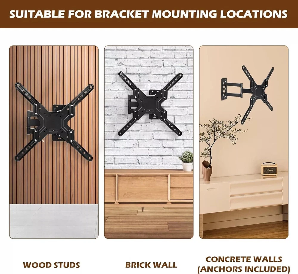 SAFE & SECURE SHOPPING 100% SATISFACTION GUARANTEED FAST SHIPPING Store Categories Store Categories You may also like Full Motion TV Wall Mount Bracket for 26-60" - Tilt & Swivel - Heavy Duty 77lbs 19.59 USD Free shipping Universal Full Motion TV Wall Mount Bracket for 26"-65" TVs Heavy Duty & Sturdy 17.99 USD Free shipping Full Motion HDTV TV Wall Mount Bracket 32 36 40 42 47 50 52 55 60 65 70 80 inch 43.99 USD Free shipping TV Wall Mount Bracket Tilt for 32-70 inch Screen LED LCD OLED Plasma Flat Screen 15.99 USD Free shipping 1/2PCS Full Motion HDTV TV Wall Mount Bracket 26 - 65" for Samsung Sharp LG TCL Product Description About this item 【UNIVERSAL TV BRACKET】Full motion TV wall mounts fit for most 26"-65" TVs including 65,60,58, 55,50,49, 48, 46, 43,42, 40, 39,32 inch TVs up to 121 lbs and VESA 100x100-600x400mm Compatible with most models of Sumsung LG SONY VIZIO SHARP HIsense SKYWORTH Toshiba PHILIPS KONKA TCL and more.Fits wood studs , brick and concrete walls(anchors included). Heavy Duty & Sturdy - The strong articulating 3-arm structure with cold-rolled steel ensures reliable strength and provides you sufficient swivel angle. We are so confident in the construction, strength and durability of this wall bracket. It will keep your new TV safe. 【FULL MOTION TV WALL MOUNT】 Wall mount TV bracket tilts down 15° and Tilt backward 0-3° to reduce glare and protect eyes. Swivel left or right 45° to get better viewing angle. Extends long to 16" to convenient operation back of TVs. Retract back to 2.3" from the wall to save space. 【EASY INSTALLATION】 Easy to install it in 3 step less than 15 min. +/-3° Level adjustment allows adjust TVs to keep level without dismantling and reinstalling.Television wall mount bracket safety screws lock TV in place. 【PRODUCT INCLUDES and CUSTOMER SUPPORT】Standard mounting hardware, 3-Axis magnetic bubble level.We are glad to answers your pre-purchase and installation questions. JUSTSTONE TV wall mount brackets includes an incredible 10 years friendly customer service! About Us Payment Shipping Returns Contact Us About Us We pursuit 100% transactions satisfaction,We attach importance to every customer from around the world,Please buy with confident!if you have any issue,you can just give us a message,and we give you full resolve. We guarantee 100% customer satisfaction. We will offer professional product support:Product Inquiry,Aftersale Service,Shipping solution and so on.If you got question or problem,please just contact us by ebay message. Payment We can accept PayPal payment ONLY.Because we can't accept any other payment method.Hope understand. Shipping Item will be shipped within 1-3 business day after full payment is received. Delivery time depends on destination and other factors, if you still not received it in normal days. Please don’t worry, I hope you can give me a message before you do any action. Returns If the item is defect when you receive it or you are not satisfied with it, please return it within 30 days for a replacement or money back. But the items must be back in factory condition. Please contact us and double check the return address before you return it. Original and return shipping fee will not be refunded or reimbursed under all circumstances. You must agree and acknowledge this term if you bid for this item. Therefore, please do not complain about having to ship back at your own expense. Contact Us Work Time: Monday to Saturday If you have any questions, please feel free to email our service , and we will reply you ASAP. If no response within 24 Hours, please check the spam of mail box or kindly re-send it to us. Copyright © 2022 Tongtool
