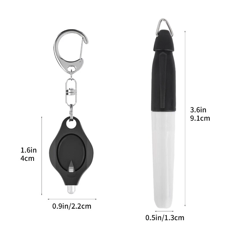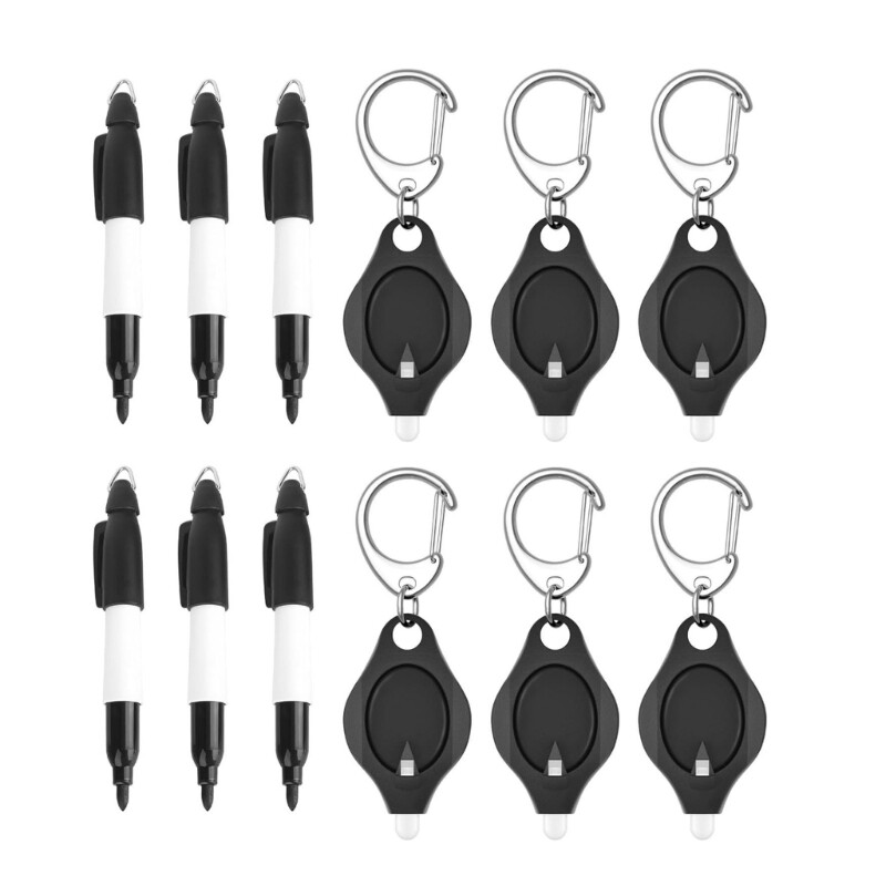 Features: Package includes: 6 pcs led keychain flashlight and 6 pcs portable permanent marker, these keyring torch for easy carrying. Each LED flashlight offer 12 of brightness, ultra-bright LED torch. 100,000 hours life-span. Perfectly light up areas of more than 10meter/33feet. Press the button briefly to it, while slide the backwards will activate continuous lighting to your hands. Excellent assistant tools for outdoor camping, hiking, fishing, night parties, dog walking, repairing or emergencies lighting. Handy to attach LED torch to your keychain with the jump rings and carry it around wherever you like. Widely used for office, hospital, outdoor activities. Specifications: Color: Black LED Keychain Flashlight Size: Approx. 4x2.2cm/1.6x0.9in Permanent Marker Size: Approx. 9.1x1.3cm/3.6x0.5in Weight: Approx. Package Includes: 6 Pieces LED Keychain Flashlights 6 Pieces Permanent Marker note: 1.Please allow 0-1cm error due to manual measurement. make sure you do not mind before you bid. 2.Due to the difference between different monitors, the picture may not reflect the actual color of the item. Thank you