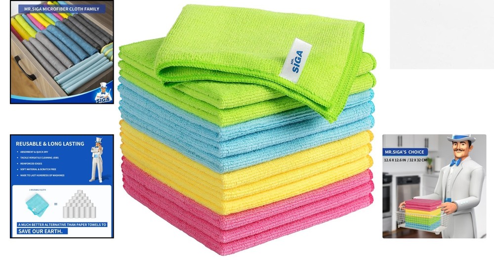 Ultra Soft 12-Pack Microfiber Cleaning Cloths 12.6x12.6 Lint-Free