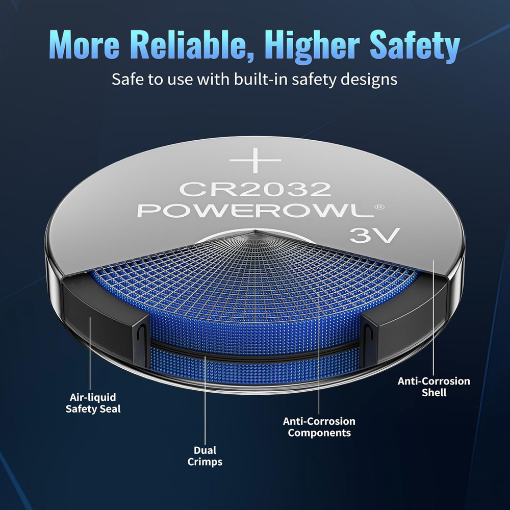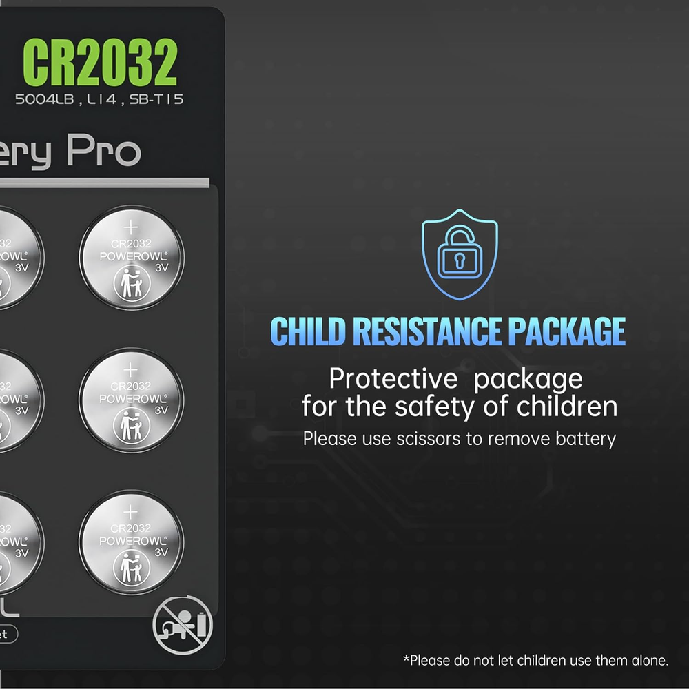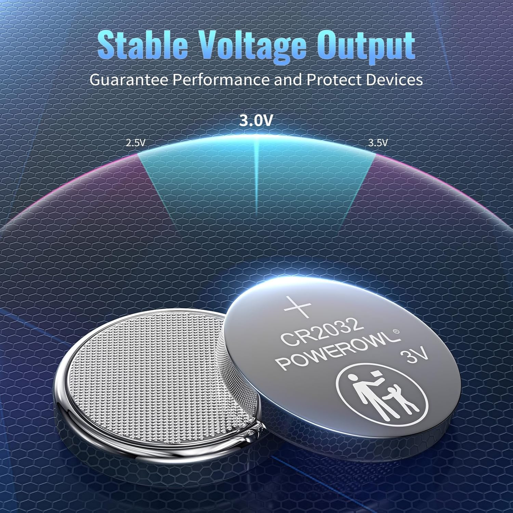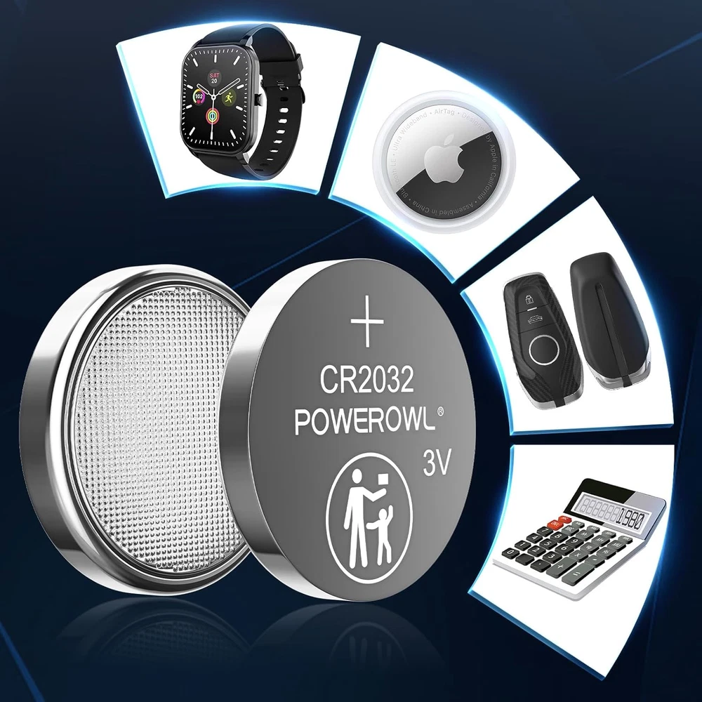 Chemical Composition: Lithium Type: Coin Cell/Button Voltage: 3 V Amp Hours: 0.24 Ah Brand: POWEROWL Battery Size: CR2032 gtin13: 711181022599 UPC: 711181022599 Application: Apple AirTag, Key Fobs, Remote Controllers, Watches, Small Remote MPN: CR2032