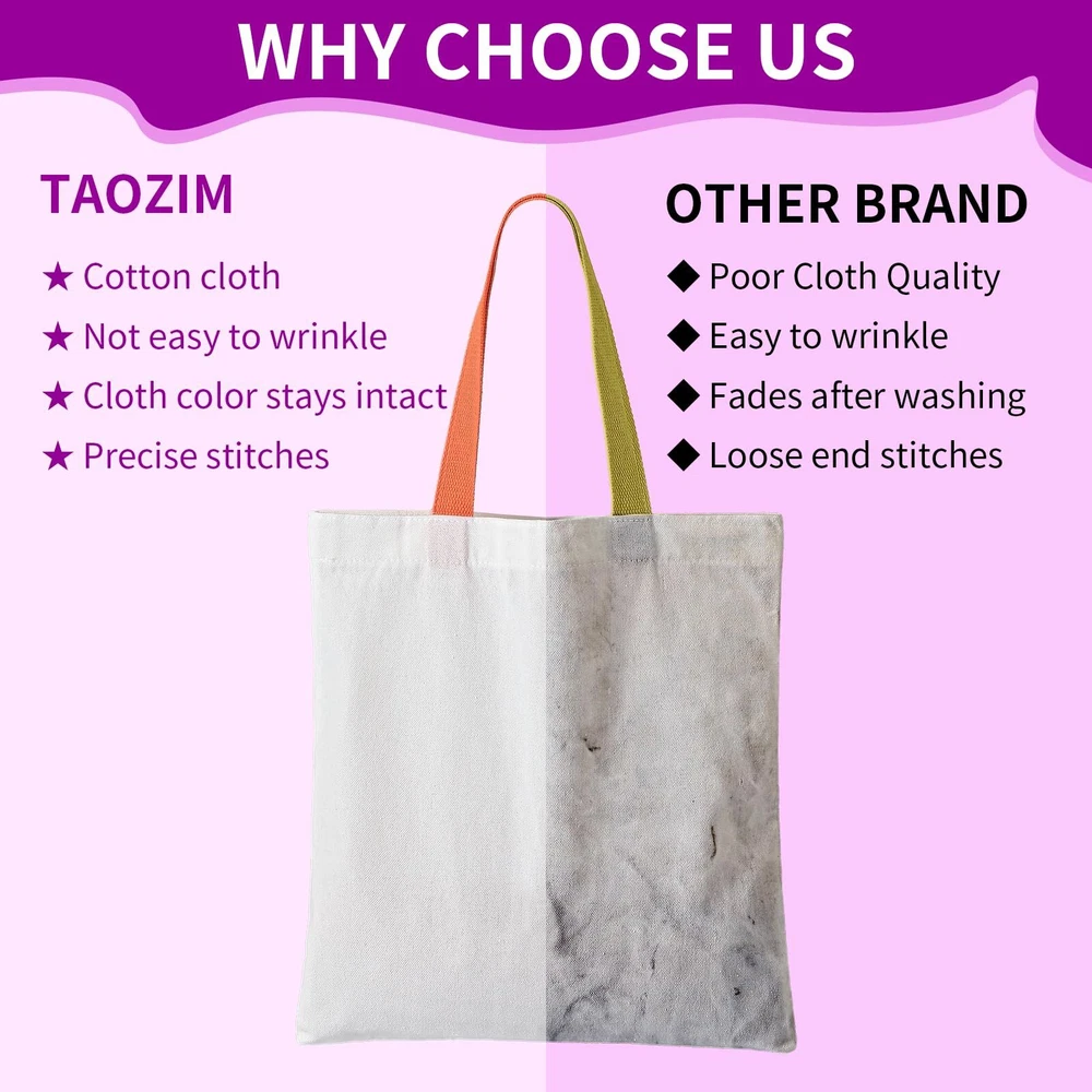 12Pack Economical Canvas Cotton Tote bags, 10Oz Cotton Canvas Tote Bags Reusable Grocery Bags Shopping Cloth Bags w/Colorful Handles Personalized Present Bags for Women, DIY, Decorating Craft, White SPECIFICATION 10oz Cotton. Perfect Size Tote Bags. Bulk in Quantity & DIY Available. Multi-Function & Durability. Eco-Friendly. PACKAGE LIST 12 x Blank Canvas Tote Bags with colorful Handles (15" W x 13"H) POTABLE SIZE: Included twelve pieces of canvas tote bags with colorful handles(15" W x 13"H), convenient to carry in hand or wear on your shoulder, sturdy enough for all kinds of daily use. Give these reusable bags to your friends and family to inspire them to stay away from plastic DURABILITY: Blank canvas tote bags made of 10oz cotton with dense thread and exquisite workmanship. All seams are reinforced and sewn to ensure their durability MULTI-FUNCTION: Perfect for HTV, silk screen printing, or painting on bag. It can be used as promotional bags, grocery bags, holiday bags, etc. Suitable for bridesmaids, bridal showers, beach, flower girls, holidays, Christmas and bachelor parties, it is a great present for women, mother, teacher, wife, sister and friends SUITABLE for DIY: You're free to create whatever look you like on these canvas bags, they support thermal transfer printing and you can paint or embroider on them, enjoying the fun of DIY and showing your own styles WASH TIPS: Cleaning cotton canvas bags is not recommended. The shrinkage rate after washing is about 8%-10%. And it is suggested to wash it partially if it's terribly dirty