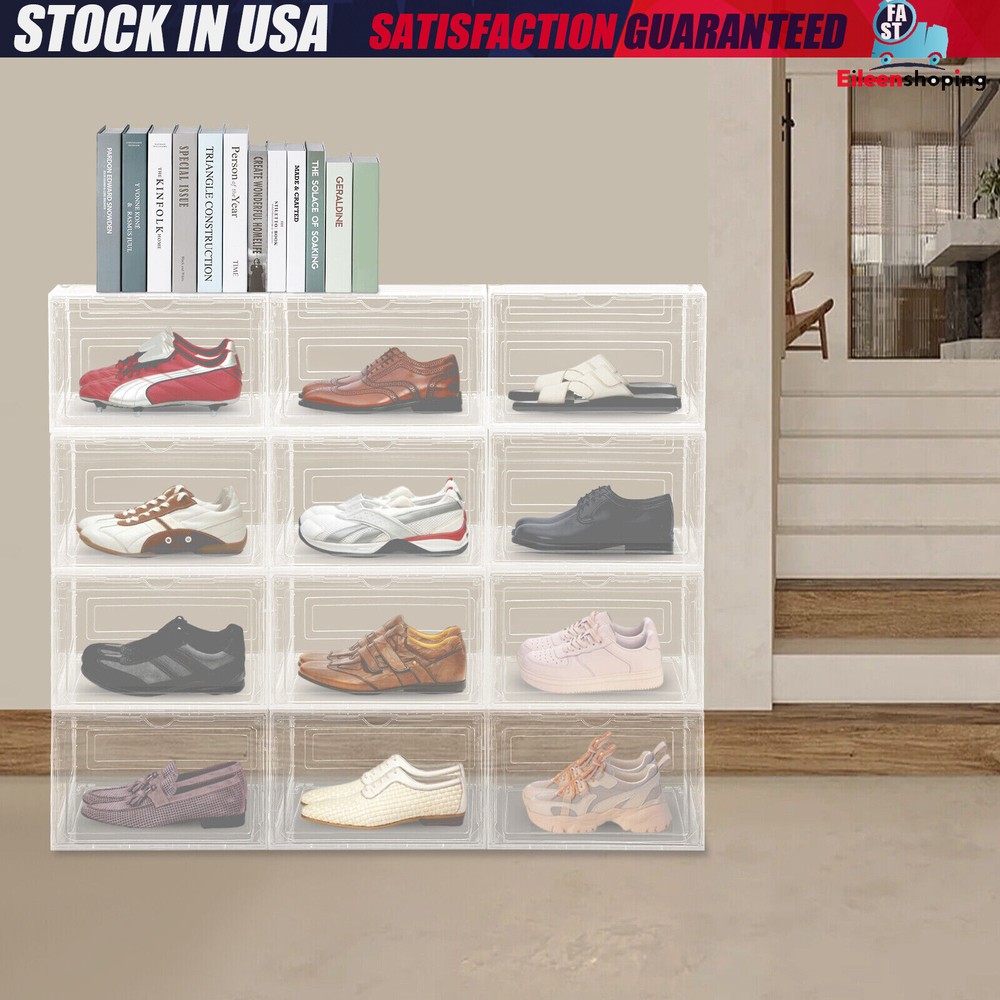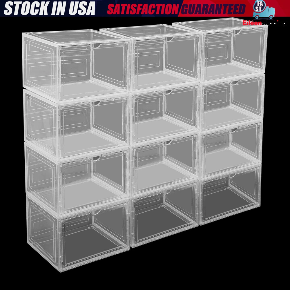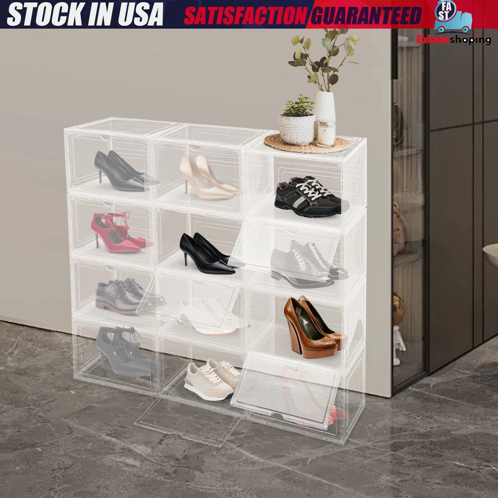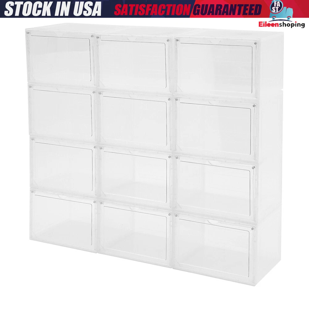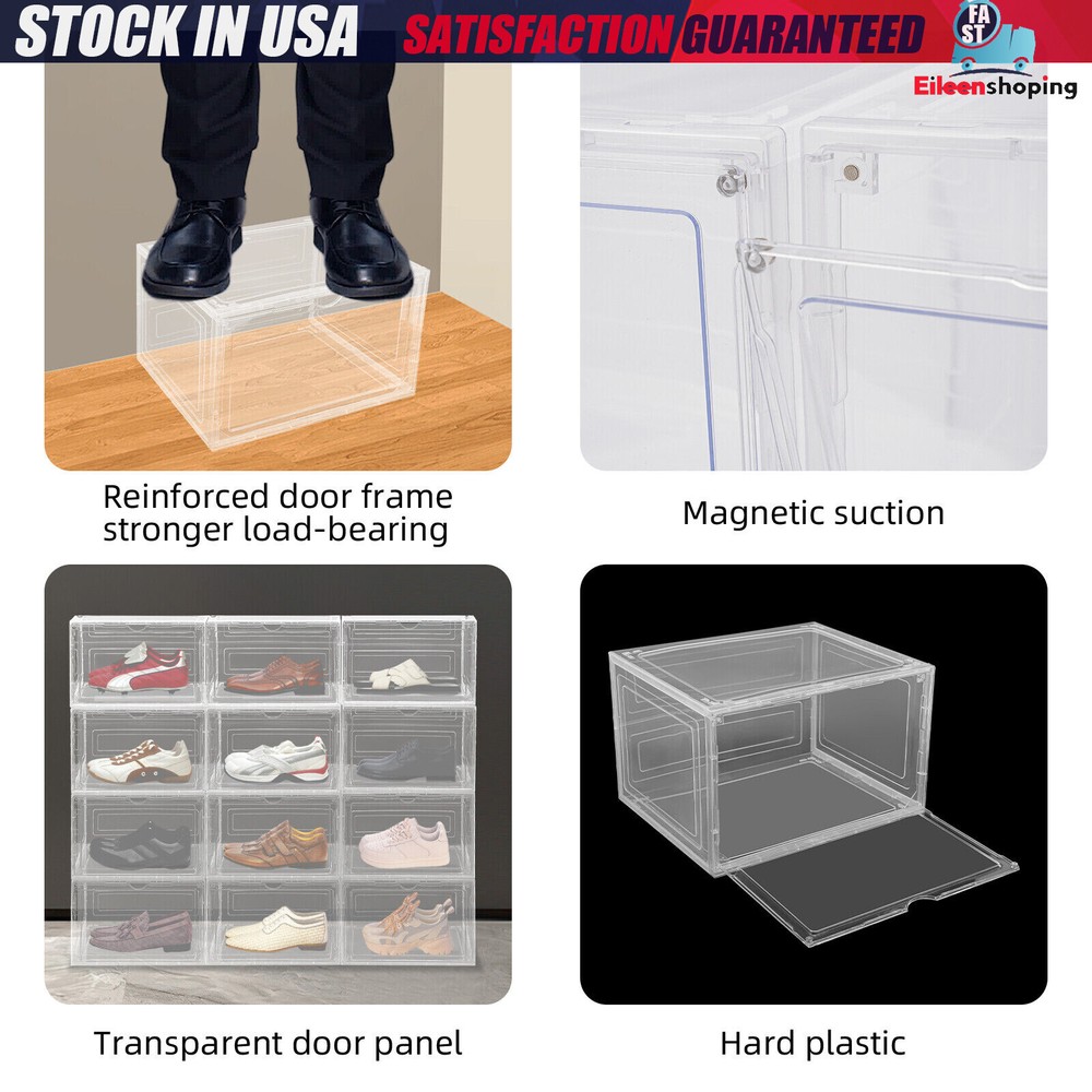 Specifications Color: Clear Material: PP, Acrylic Number of Items: 12 Door Opening Direction: Side Mount Type: Free Standing Assembly Required: Yes Each Product Size: 34*27*22cm/13.39*10.63*8.66in Packaging Size: 41.5*36.5*26cm/16.34*14.37*10.24in Weight of Each Shoe Box: 0.65kg/1.43lbs Gross Weight: About 8.7kg/19.18lbs Package Included 12*Stackable Shoe Boxes 1*English Manual Other Needed Accessories 12Pac Stackable Shoe Storage Boxes Clear Shoe Organizer Container Front Drop Lid Description This set of sturdy, transparent, and beautiful stackable shoe boxes will be your ideal choice for storing and displaying running shoes, sneakers, and other shoes. It is made of high-quality PP and acrylic, with a smooth and glossy surface while being sturdy and durable. The stackable design and strong structure allow the products to be easily stacked to form a shoe cabinet, saving you space and making it an excellent solution for shoe organization. Key Features Build to Last: The products are made of PP and acrylic which is resistant to corrosion, abrasion, and deformation, giving the products a clear and good appearance, and a long service life. Stackable Design: The buckles on the top and the flat surface allow the products to be stacked easily and quickly. You can stack them to form a large cabinet for your shoes, books, or other items. Easy to Use: These transparent shoe boxes with flap doors make it easy to reach or store your own shoes, even if the products are stacked. Proper Size: The 13.39*10.63*8.66 inches size allows the products to easily accommodate various sizes and types of shoes such as sneakers, sandals, casual shoes, slippers, and so on. You can also use it as a bookcase or to store other items. 12 Pieces in One Set: One set comes with 12 shoeboxes, allowing you to freely combine the combination shoe cabinet you need according to the actual room situation and the number of shoes. Lightweight: Each shoebox weighs only 1.43 lbs, allowing you to move, carry, and stack them easily. Easy to Clean: The smooth surface, flip cover, and simple structure allow you to easily clean these shoeboxes with a damp cloth. Details Sturdy Magnet: It comes with a strong magnetic attraction to allow the door to close tightly for a good seal, protecting shoes from dust, moisture, and other substances. In addition, you can use a screwdriver to adjust the magnetic force by turning the magnet screws yourself. Burr-free Edges: Exquisite workmanship gives the products a smooth edge to narrow the assembly gaps and improve the stability after being stacked. Application The products are suitable for closets, bedrooms, bathrooms, laundry rooms, craft rooms, utility rooms, offices, game rooms, and garages, etc. for organizing shoes, scarves, clothes, purses, crafts, toys, books, games, cosmetics, tools, boards, hats. Specifications Color: Clear Material: PP, Acrylic Number of Items: 12 Door Opening Direction: Side Mount Type: Free Standing Assembly Required: Yes Each Product Size: 34*27*22cm/13.39*10.63*8.66in Packaging Size: 41.5*36.5*26cm/ 16.34 * 14.37 * 10.24 in Weight of Each Shoe Box: 0.65kg/1.43lbs Gross Weight: About 8.7kg/19.18lbs Package Included 12*Stackable Shoe Boxes 1*English Manual Other Needed Accessories Notes Please check the size carefully before ordering. Please allow the slight color difference caused by the shooting light and 1-3cm error due to manual measurement, and make sure you do not mind before you order. Payment Delivery details Terms of sales About us Contact us Payment We accept ebay payment 。 Fees such as import duties, taxes are not included in the item price or shipping costs. These charges are the buyer's responsibility. Delivery details Shipping: 2-9 working days to: USA Terms of sales We maintain high standards of excellence and strive for hundred percent customer satisfaction. Feedback is very important to us. We hope that you contact us immediately before you give neutral or negative feedback, so that we can address your concerns. It is impossible to address issues if we do not know about them! About us Your satis faction is our ultimate goal. We work hard to earn your trust and future business. Our certified technicians have tested each item before shipping. The unit comes with 1 year limited warranty on all manufacturing defects. a) If you receive a defective item, you may return it or ask for a discount. Please contact us within 14 days after you receive the package. b) What you returned must be intact and in its original packaging as re? u. Customer is responsible for shipping costs of the returned item. c) We will cover the cost of shipping back t with the shipping rate indicated in the registration page. We will send you a new unit or refund the full payment you paid. Thank you. Contact us Business Hour Business Hour: Monday To Friday: 8:30 AM to 5:00 PM (Beijing China time) Due to time zones, our reply to your questions may not be immediately. But within above working time, we will reply your email within 24 hours. If it's non-workdays, please kindly be patient and wait till Monday. Please contact us with ebay message. Please feel free to contact us if you have any questions. Monday To Friday: 8:30 AM to 5:00 PM (Beijing China time) Due to time zones, our reply to your questions may not be immediately. But within above working time, we will reply your email within 24 hours. If it's non-workdays, please kindly be patient and wait till Monday. Please contact us with ebay message. Please feel free to contact us if you have any questions. Brand Unbranded Item Height 19cm/7.48in Material PP, Acrylic Type Shoe Box Item Width 27cm/10.63in Item Length 34.5cm/13.58in Mounting Free Standing MPN Does not apply Color Clear Item Weight About 8.7kg Number of Items in Set 12 Features Stackable UPC does not apply
