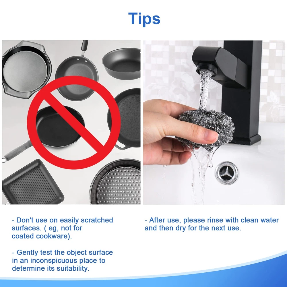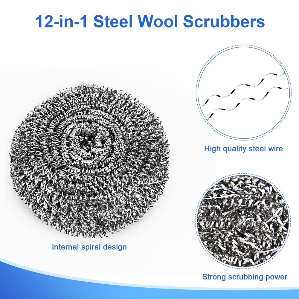 12Pack Upgraded Steel Wool Scrubbers - Premium Stainless Steel Scrubber, Metal Scouring Pads, Steel Wool Pads, Kitchen Cleaner, Heavy Duty Cleaning Supplies - Especially for Tough Cleaning HIGH QUALITY: Made of high quality 410 stainless steel, Internal spiral structure, tightly wound, soft and stretchy, preventing them from loosening, rusting, hurting hands HEAVY DUTY: Easily remove grease, stubborn burnt-on stain and grimy build-up, These stainless steel scouring pads can deal with the toughest household cleaning tasks effortlessly PACKAGE SIZE: 12Pack steel wool scrubbers included, individually wrapped to keep clean and avoid mutual entanglement between these scouring pads. The diameter of each one is approx 2.76 inches, and the weight is about 0.83 ounces MULTIPURPOSE: In addition to in the kitchen and bathroom, you can use them in the outdoor furniture and garage. Great for cleaning uncoated cookware, bakeware,ovens, grill racks, pots, pans, sinks, spatulas, etc. GOOD CLEANING HELPER: steel wool scrubbers is better at heavy cleaning such as grills; In contrast, microfiber cleaning cloth, ideal for kitchen cleaning, dusting and glass, scrubbing sponge focus on washing dishes Shipping We offer FREE shipping on all orders! We ship within Three business days of payment, usually sooner. We use a selection of shipping services such as UPS, FedEx, USPS etc. We only ship to the lower 48 states, no APO/FPO addresses or PO Boxes allowed. Local pickups and combined shipping options are not provided at this time. Return You can return a product for up to 30 days from the date you purchased it. Any product you return must be in the same condition you received it and in the original packaging. Please keep the receipt. Payment We accept payment by any of the following methods: PayPal Please pay as soon as possible after winning an auction, as that will allow us to post your item to you sooner! Feedback Customer satisfaction is very important to us. If you have any problem with your order, please contact us and we will do our best to make you satisfied. Contact Us If you have any queries, please contact us via ebay. We usually respond within 24 hours on weekdays. Please visit our eBay store to check out other items for sale! Thank you for shopping at our store.