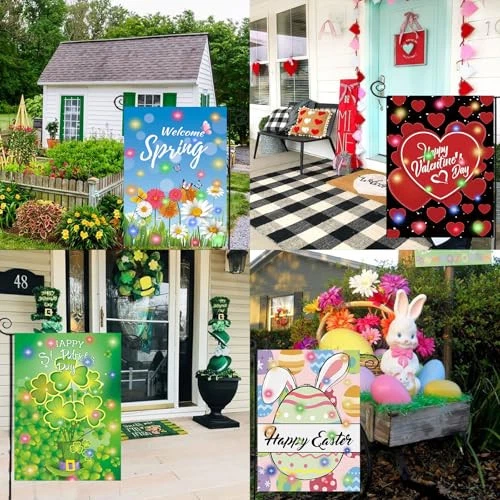 Return Policy Fast Delivery Trusted seller Lighted Seasonal Garden Flags Set of 12 Double Sided 12 x 18 Inch LED Yard Flags, Small Garden Flags for Outside, Fall Winter Halloween Christmas Outdoor Flags,Solar Holiday Garden Flags for All Seasons Product Description Lighted Seasonal Garden Flag Package Comes 12 Pack LED small garden flag set for every season, important holiday and family occasion: Spring garden Flag, Summer Garden Flag, Fall garden flag, Winter garden Flag, Valentine's Garden Flag, St. Patricks Garden Flag, Easter Garden Flag, Welcome Garden Flag, 4th of July Garden Flag, Halloween Garden Flag, Thanksgiving Garden Flag, Christmas Garden Flag. Our seasonal flags can meet your different needs to decorate your house and garden all the year! Double Sided: The Solar Garden Flag is a double side with a pattern, visible from both sides and the text reads correctly from both sides. This Seasonal flag with about 2.0-inch wide hanging sleeve, is easy to install and fits all standard garden flag poles, flag pole brackets, stands hangers, etc. (stand not included) Washable Fabric: Made of Tight Cotton Linen hemp material, UV and fade-resistant can keep for long time. And stitched all around to improve durability. Lovely gifts for the four seasons, and great gifts for your family and friends, so they can be kept for a long time and will always be brand new additions to your yards. Seasonal Yard Flag Size: This LED yard flag size is 12 x 18 Inches, available for any deck, patio, porch, or veranda Outdoor Yard house Decorations. With about 2.0 inch wide hanging sleeve, our garden flags 12x18 double-sided are easy to install and fit all standard garden flag poles, flag pole brackets stands and hangers, etc. (stand not included). Make stunning decorative statements for your backyard, lawn, or garden. The Solar garden flag set is equipped with solar lights and solar panels. Automatically turns on at dusk, and automatically off to charge during the daytime. Suitable for indoor & outdoor decor. Perfect decorations for garden, yard, lawn, patio, farmhouse, window, and wall, make charming decorations for your home. Welcome Garden Flag Design: Our holiday flags are designed with classical seasonal elements, vibrant, colorful, and adorable, which will make your house full of holiday atmosp when placed in the yard. Lovely gifts for all seasons! Great gifts for your family and friends! Dress up your home yard, lawn, or garden with these beautiful outdoor garden flags, celebrate with your loved ones, and be the envy of the neighborhood. Shipping Returns Payment Shipping Shipping is FREE to all addresses other than APO/PO boxes in the lower 48 states. All our stock ships from US-based warehouses. Shipped via USPS or UPS (depending on location and package weight) Unless stated otherwise, all orders will ship within 24-72 hours of your payment being processed. Check our feedback to see the great reviews of FAST shipping we offer. Returns Seller does not accept returns Payment We currently accept payment via eBay managed payments only. Once payment is cleared, we will dispatch your shipment within 1-3 business days. Please refer to the "Shipping" tab for more information regarding shipping speed to your destination.