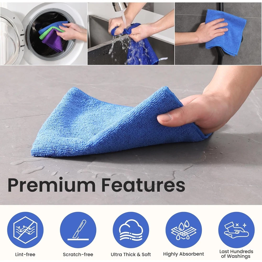 These microfiber cleaning cloths are amazing! Super soft and absorbent, they pick up dust and grime effortlessly without scratching surfaces. I love that they’re lint-free and leave no streaks—perfect for cars, glasses, and household cleaning. The multicolor set is handy for different tasks, and they wash well without losing effectiveness. A must-have for spotless cleaning!
