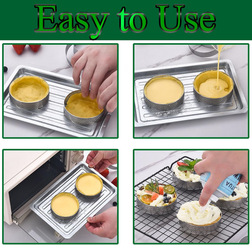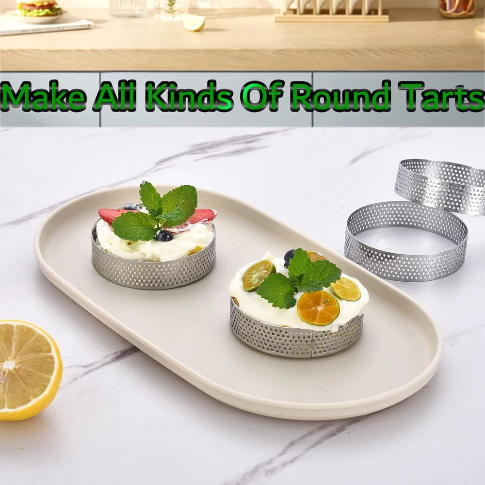 12Pack Tart Rings 3.15 Inch Perforated Tart Ring Stainless Steel, round Mousse C