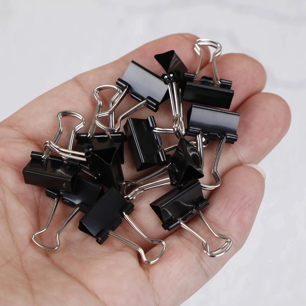 Features * 12pcs Metal Clip Binder for Album Memo Paper. * Tempered metal construction provides extra strong hold. * A great alternative to small or mini binder clips or jumbo paper clips. * Great organizer clips for office, home, school etc. Material: Metal. Size:15mm Package included: 12pcs * Clips. Preview: