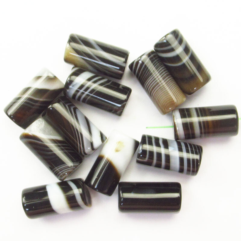 12Pcs Black White Onyx Agate Column Pendant Beads 16x8mm D95948 Jewelry Making Supplies