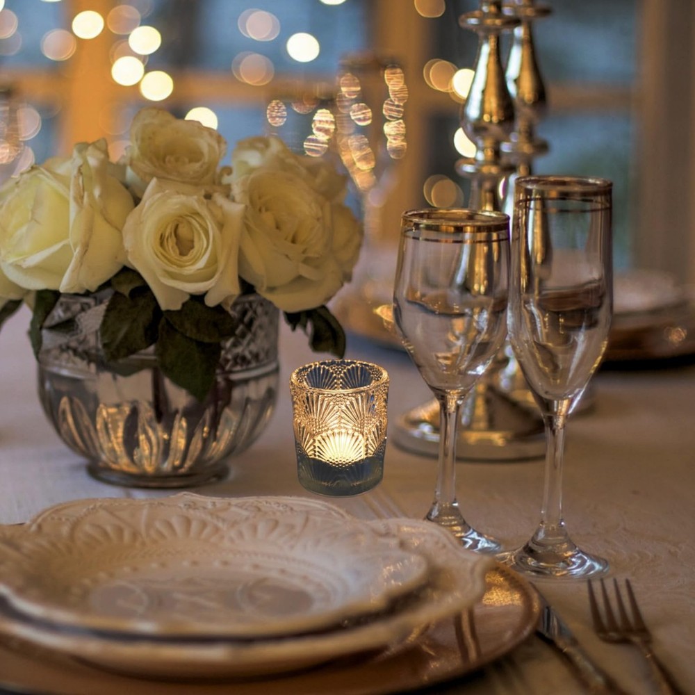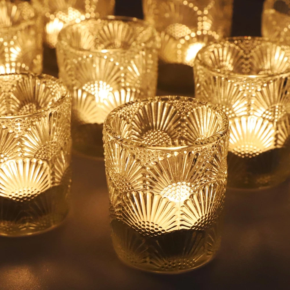 These glass votive holders are absolutely stunning! The embossed ginkgo leaf design adds such an elegant touch, especially when the candlelight shines through—it creates the warmest, most romantic glow. Perfect for weddings, parties, or just cozy nights at home. They’re sturdy, well-made, and look way more expensive than they are. A must-have for anyone who loves candlelit decor!