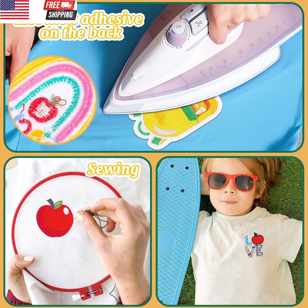 12Pcs Back to School Iron on Patches Pencil Apple School Bus Embroidered Sew Applique Repair Patch Teacher Students DIY Crafts for Clothing Jacket Jeans Dress Backpack Hat Decorations Gift Packaging: Package includes 12pcs back to school iron on patches of random styles, and various sizes can meet the diversified needs of your daily clothes or back to school dress up Back-to-School Theme: The embroidered patch is designed with pencils books, apples, globes, yellow school buses, schoolbags and more, with vivid colors and exquisite craftsmanship, the repair patch can well match the back-to-school atmosphere Exquisite Craftmanship: The sew applique is made of good-quality embroidered cotton material with hot melt adhesive on the back, which is easy to iron or sew. (The plastic on the back is glue, please don't tear off.) Widely Used: These back to school iron on patches are very suitable for DIY clothing repair accessories decoration, which can be applied to dresses, skirts, bags, jeans, hats, shoes, shirts, socks and so on. In addition, the embroidered patch is also suitable for art, craft project, scrapbooks and other DIY decoration or repair damage, and add a joyful atmosphere for back to school celebration Easy to Paste: The back of our repair patch is coated with special glue, which will melt when heated. You can sew or iron sew applique on clothes. Keep the cloth dry and control the preheating temperature when ironing. If you want to keep the back to school iron on patches from falling off, you can sew the back to school iron on patches up Product Description Back to School Iron on Patches 12 pieces back to school iron on patches with different styles, including pencils, books, apples, globes, yellow school buses, schoolbags and more, are vivid in color and exquisite in craftsmanship, and the embroidered patch is suitable for back-to-school days, celebrations, parties or daily decorations, so as to create a unique style and make you charming. Note: The back to school iron on patches are not suitable for water-repellent materials, plastic materials or any hard fabric or shell. Ironing instructions: 1.Keep the back of the back to school iron on patches dry before use (do not tear the plastic). 2. Preheat the iron to the cotton cloth setting. 3. Under this setting, the heatproof performance of the fabric was tested in advance. 4.Place the embroidered patch on the surface of the cloth or curtain, and cover the repair patch with cotton cloth ( must be cotton cloth, not faded cloth). Iron for 20-30 seconds and fix in place. 5.Turn the clothes over and apply pressure on the back of the sew applique for 10-15 seconds with a hot iron (the specific ironing time can be determined according to the situation). 6. If you want to make the back to school on patches stronger, you can sew repair patch along one side of the edge. 7. If you don't have an iron at home, you can sew the embroidered patch directly on the clothes with the same color thread. Item model number 89-6900 Style Back to School Number of Items 12 Mounting Type Sewing, Ironing Color Multicolor Material Cotton Country of Origin China Shape pencils, books, apples, globes, yellow school buses, schoolbags Item Weight 0.704 ounces Theme Back to School Age Range (Description) All Age Groups Number of Pieces 12 Product Dimensions 1.5 x 1.5 x 0.1 inches Shipping Fast shipping is very important for us. Our standard US shipping service is FREE. Your order will be shipped within 2-3 business days upon full payment received. Your order will be delivered within 2-3 business days after the handling time. We only ship to the confirmed PayPal address. We reserve the right to cancel any order for any reason at any time. We are not responsible for undeliverable addresses. Returns and payment We offer a 30 days return policy from checkout winning date. We allow only PayPal as payment method FeedBack Your feedback very important to us, after you get your package and you are satisfied with our service please leave us positive feedback If you have any problem with your order / any questions please before leave any type of feedback For any questions, using eBay contact system Please visit our eBay store to check out other items for sale! Thank you for shopping at our store.