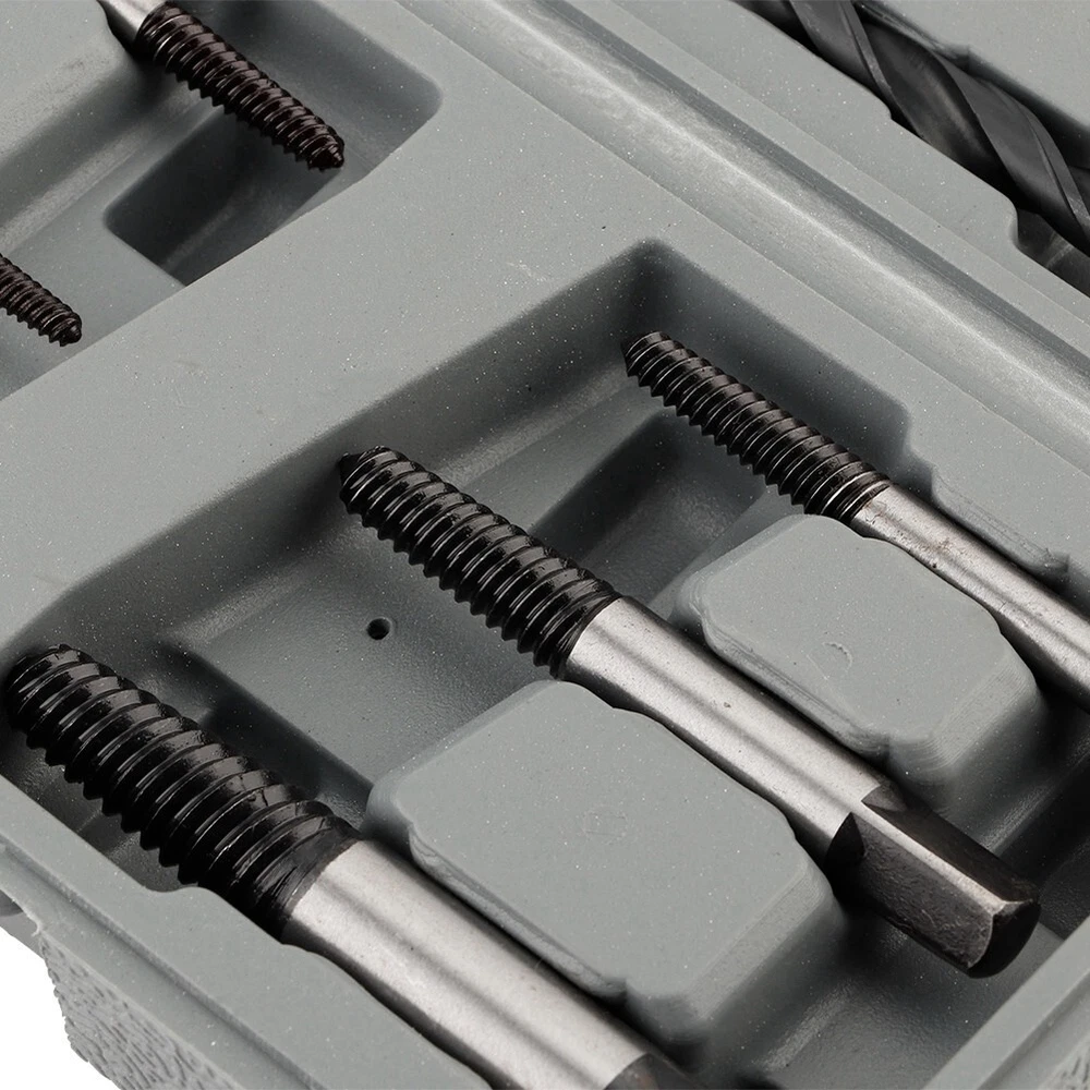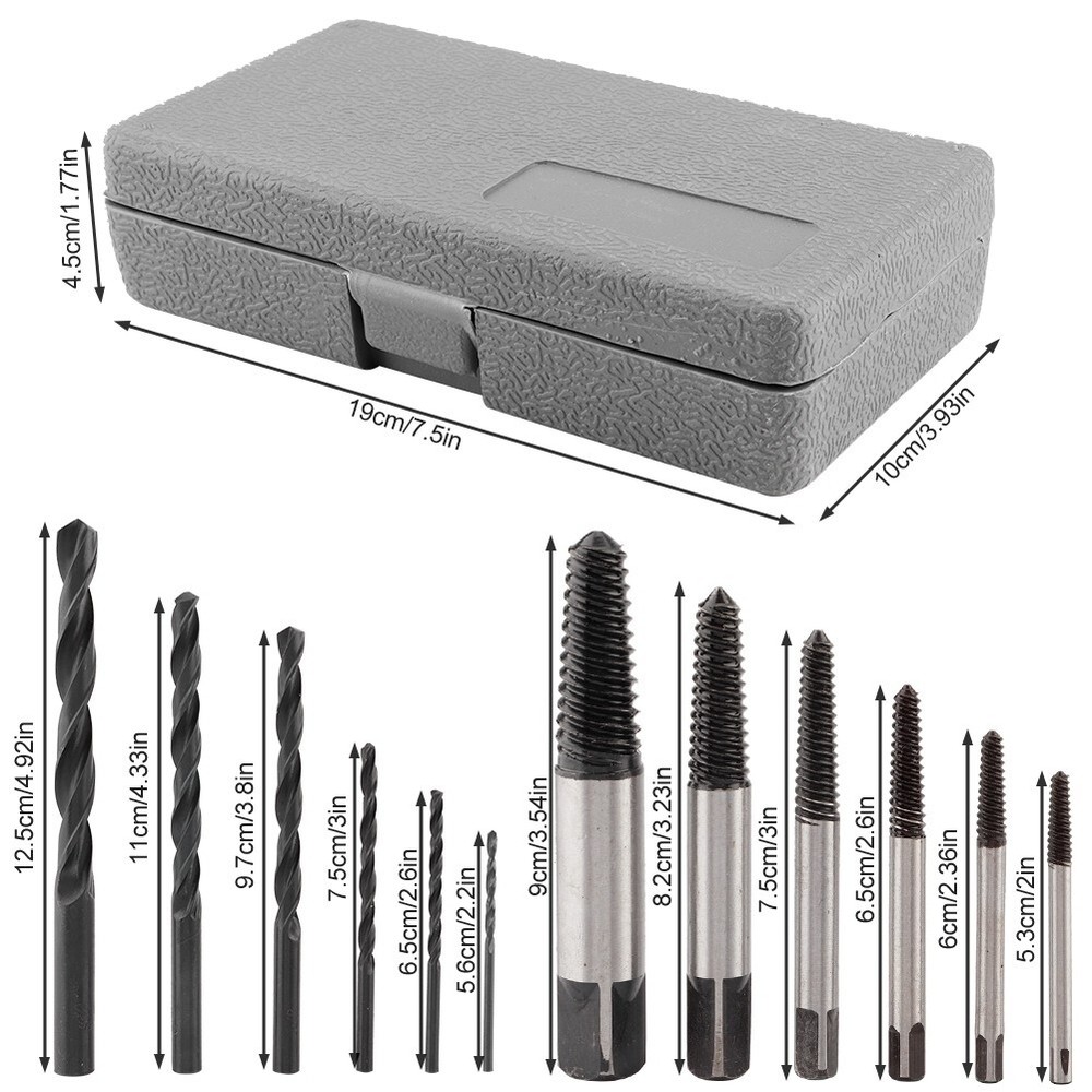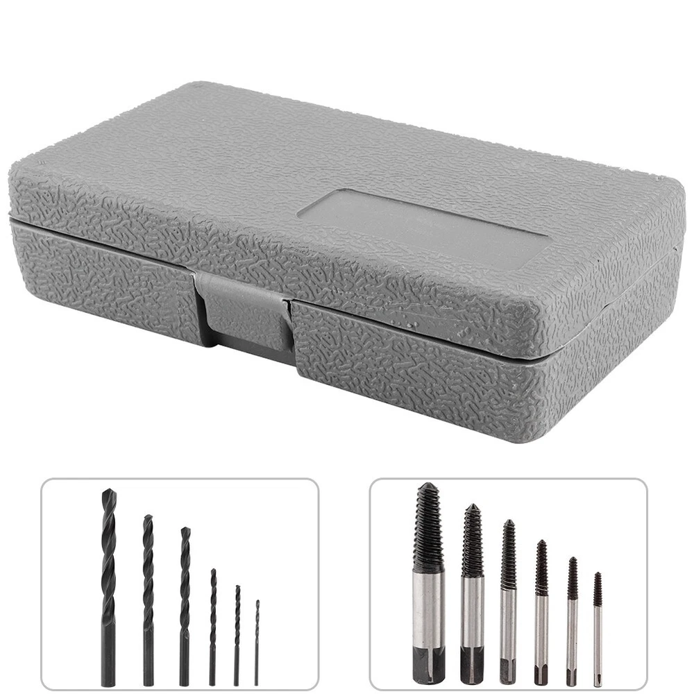 Feature: 1. These extractors will remove most kinds of damaged, rusted, broken or stuck screws from any wood or metal . 2. Made from HSS 4241 and black oxide coated for extra hardness and long durability. Produced from GCr15 bearing steel. 3. 6 pieces heavy duty screw extractor with different sizes to meet multiple needs. 6 pieces high hardness drill bits functions good for drilling. 4. Drill bits can also be used to bore holes on wood, metal, plastic, brick and wall, etc. 5. Easily remove damaged or broken screws, bolts, studs, threaded pipe fittings and so on. Specification: Features: These extractors will remove most kinds of damaged, rusted, broken or stuck screws from any wood or metal . Made from HSS 4241 and black oxide coated for extra hardness and long durability. Produced from GCr15 bearing steel. 6 pieces heavy duty screw extractor with different sizes to meet multiple needs. 6 pieces high hardness drill bits functions good for drilling. Drill bits can also be used to bore holes on wood, metal, plastic, brick and wall, etc. Easily remove damaged or broken screws, bolts, studs, threaded pipe fittings and so on. Specification: Condition: 100% Brand New Material: Secondary Construction, HSS drill bits Type of Thread: Reverse spiral, tapered, coarse thread Color: As Picture Shown Screw Extractor: 3-6, 6-8, 8-11, 11-14, 14-18 and 18-25 Drills: 3/32, 1/8, 3/16, 1/4, 5/16, 3/8inch Package list: 6 * Screw Extractors 6 * Drills Bits 1 * Plastic Case