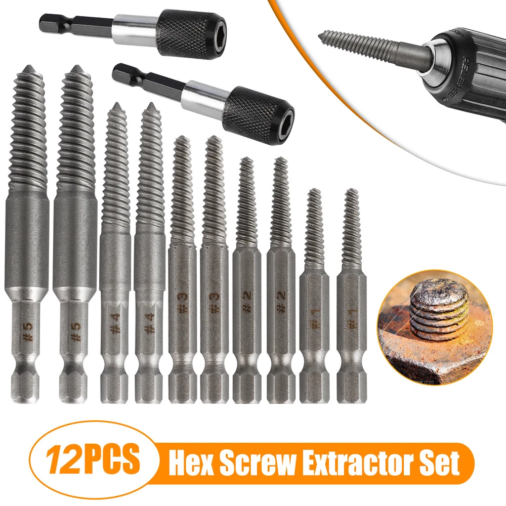 Product Feature ✨ Material: Our screw extractor set, crafted from high-quality alloy materials, ensures long-lasting reliability and durability. ✨ Size: Our 12-piece woodworking hex shank headless screw extractor kit includes 10 headless screws (50mm, 60mm, 61mm, 65mm, 74mm, 83mm, 2 pieces of each size) along with a 2pcs drill bit extension for added convenience. ✨ Hex Shank Design: Offers stable support, high-speed rotation, and even force distribution, compatible with various electric drills. ✨ Versatility: This screw extractor effectively handles broken head screws, stripped screws, stuck screws, and rusted screws, making it indispensable in various applications. ✨ Applications: Enhance your daily work, whether it's in car repair, home decoration, or craft production, with this versatile tool. Product Specification Type Screw Extractor Material Alloy Color Silver QTY 12PCS/Set Size #1 1/8”-1/4 ”(M3-M6) Size #2 1/4”-5/16” (M6-M8) Size #3 5/16”-7/16” (M8-M11) Size #4 7/16”-9/16” (M11-M14) Size #5 9/16”-3/4” (M14-M19) Package Included 🎁1 x Headless Screw Extractor Set Location Descriptions To improve your buying experience and ensure fast delivery, Your order will be shipped from the warehouse located in either new jersey or california that is closest to your address. If you have any questions, Please contact us. Thank you for your support !
