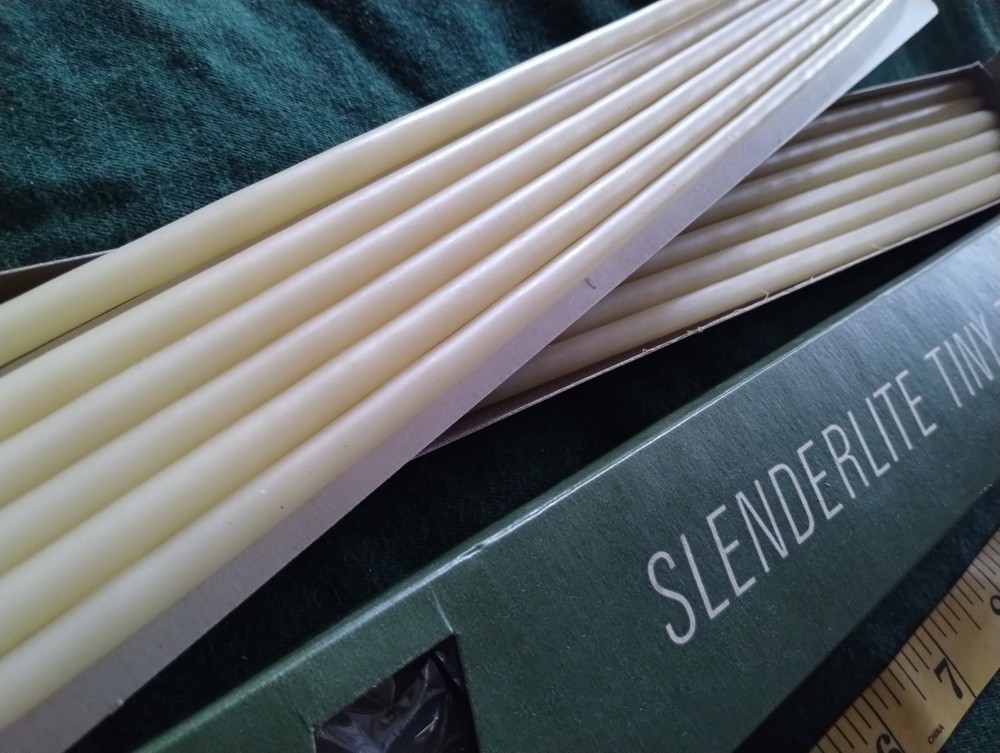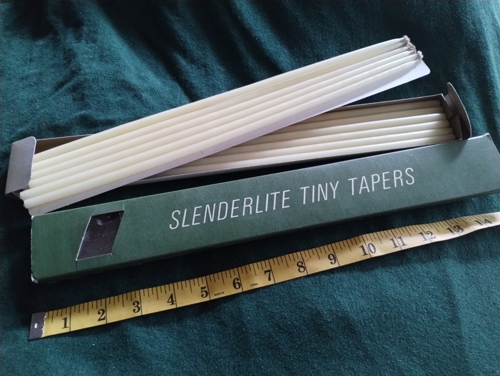 Illuminate your space with a touch of vintage charm using this full set of 12 Slenderlite taper candles. Each 15-inch ivory wax candle features a sleek, long skinny taper shape that's perfect for adding a warm, inviting ambiance to any room. With a decorative design that's reminiscent of Danish style, these candles are a sophisticated addition to your home decor. Crafted in the United States, these hand-dipped, single wick candles are made with care to ensure a clean, even burn and a beautiful glow. These taper/dinner candles are versatile enough for both casual and formal settings, making them a great choice for any space. Place them on your dining table for a candlelit dinner or on your mantle for a cozy evening in.